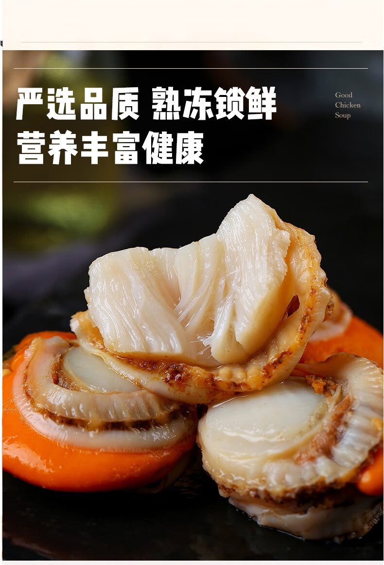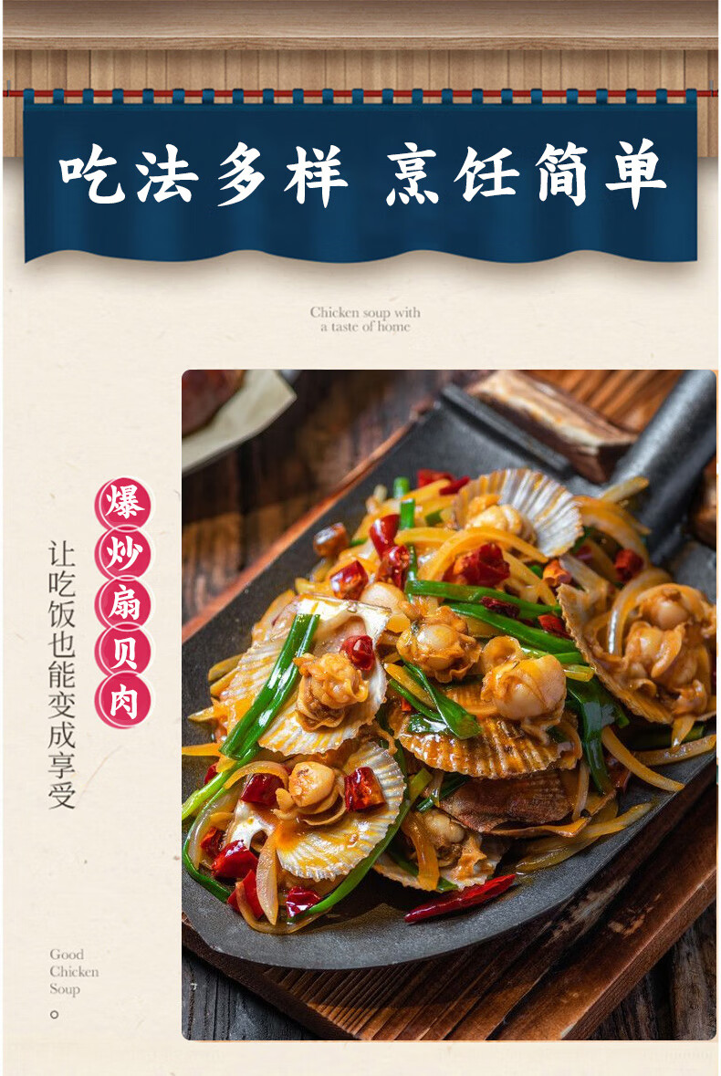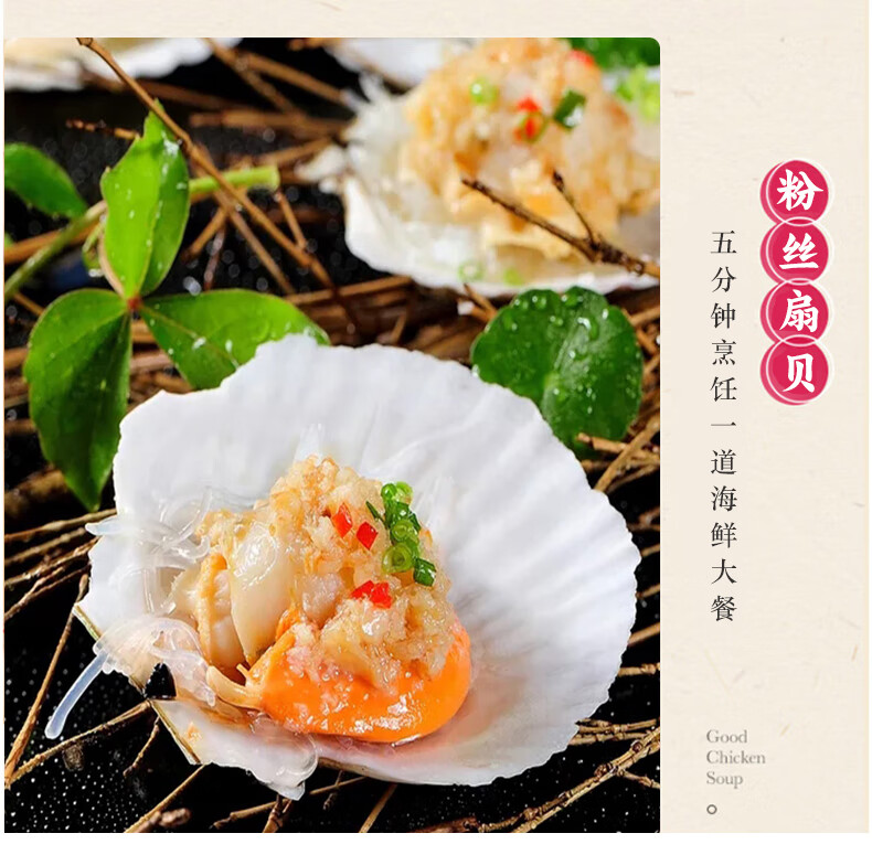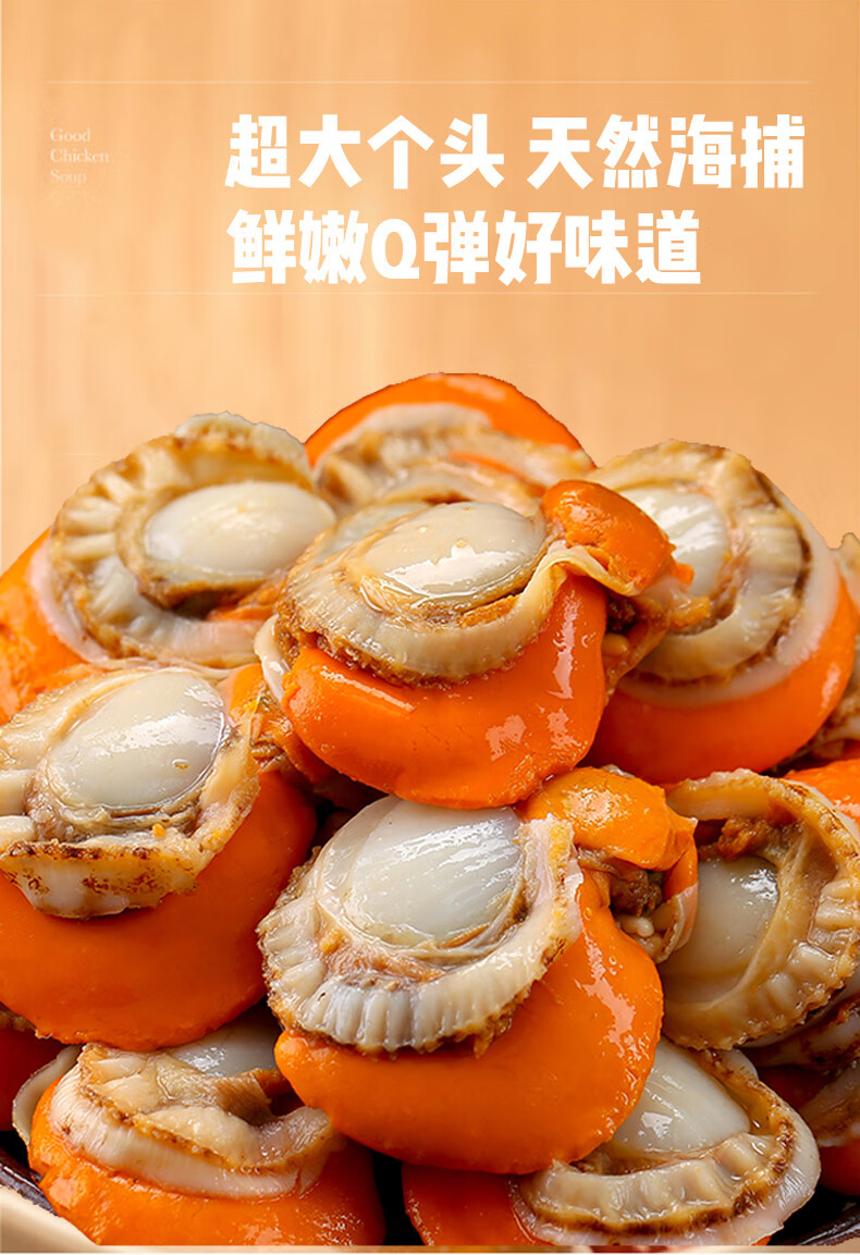 一虾一世界冷冻大号带黄扇贝肉 无沙蒜蓉粉丝扇贝去壳去沙 海鲜火锅烧烤食材 大号扇贝肉500g*3袋【40/60规格】