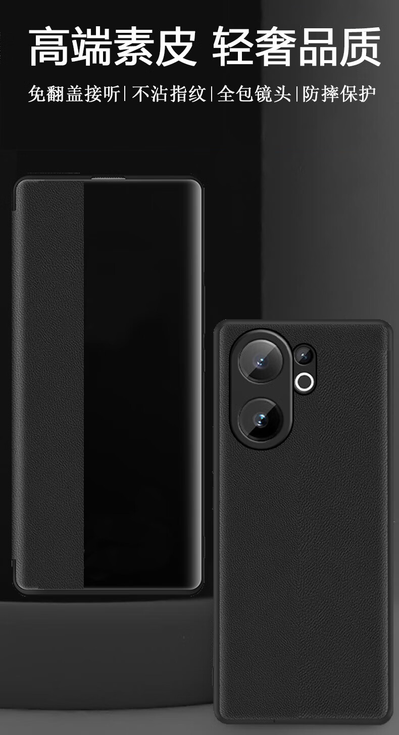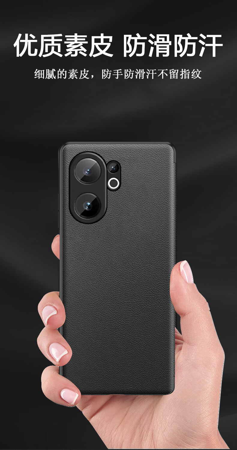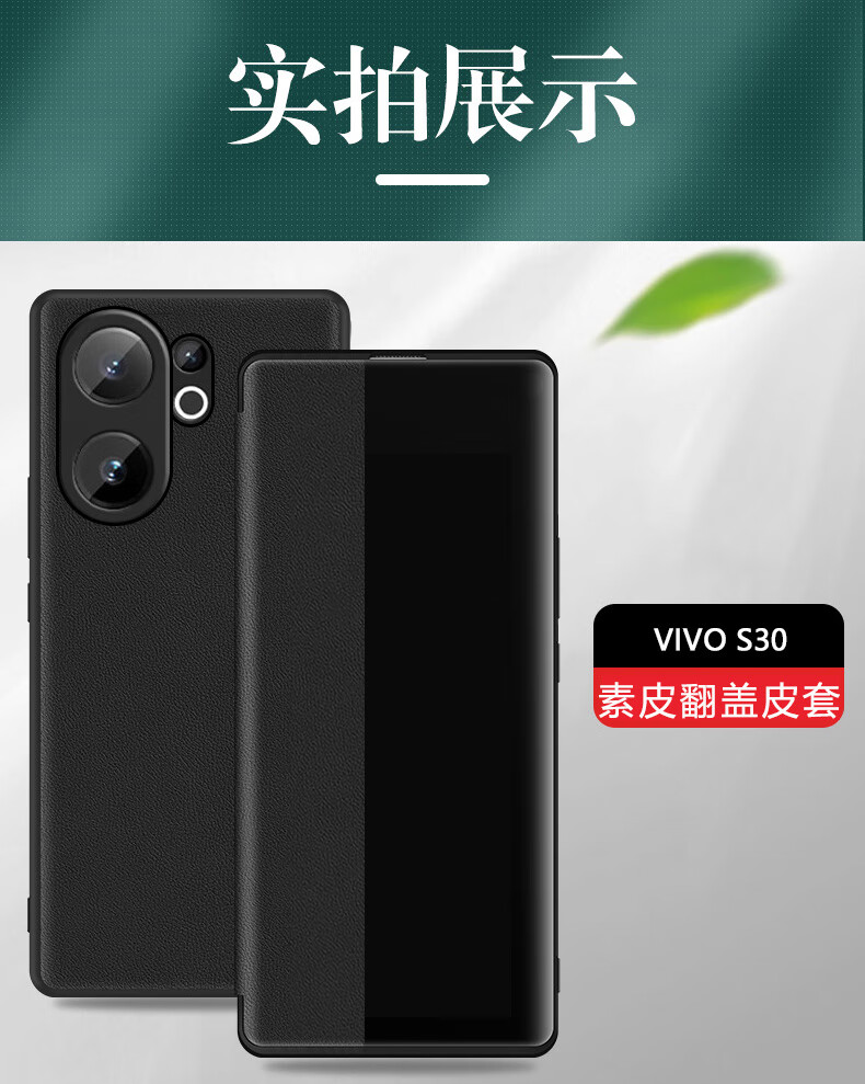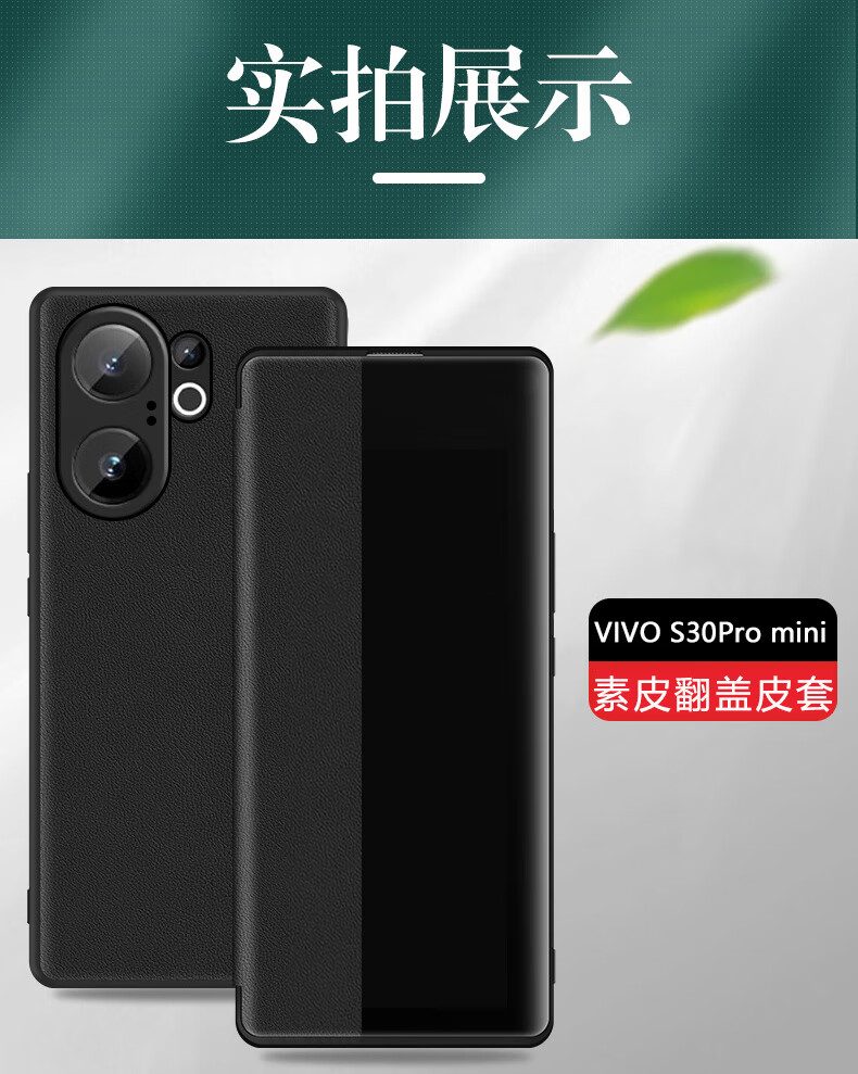 Amison vivo s30promini mobile phone case clamshell vivo s30 leather case protective cover all-inclusive lens anti-fall thin vegan leather simulated leather black-front and rear full cover丨genuine leather vivo s30