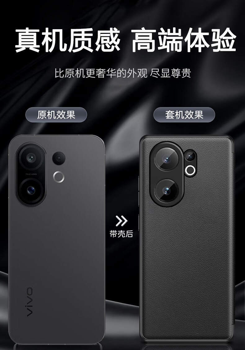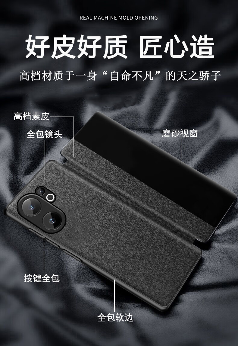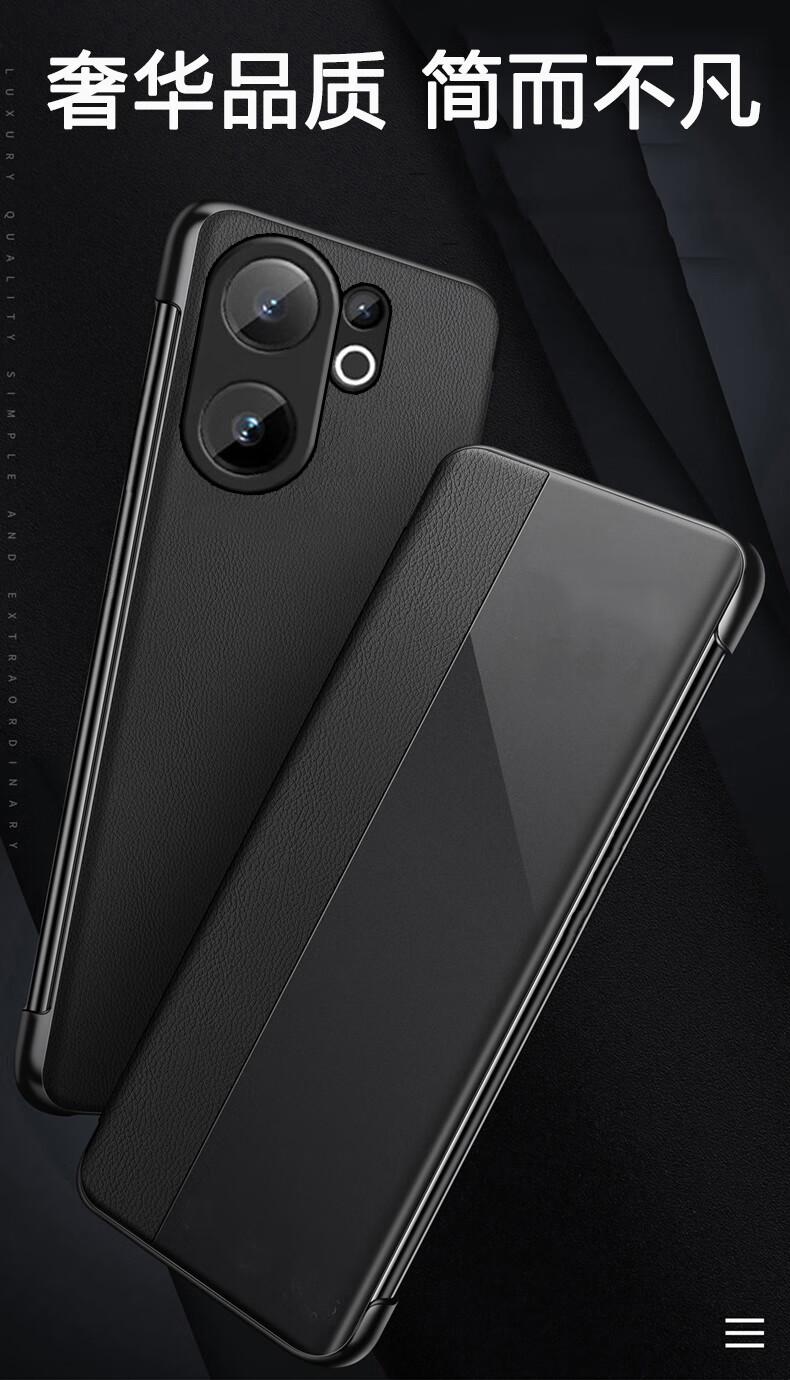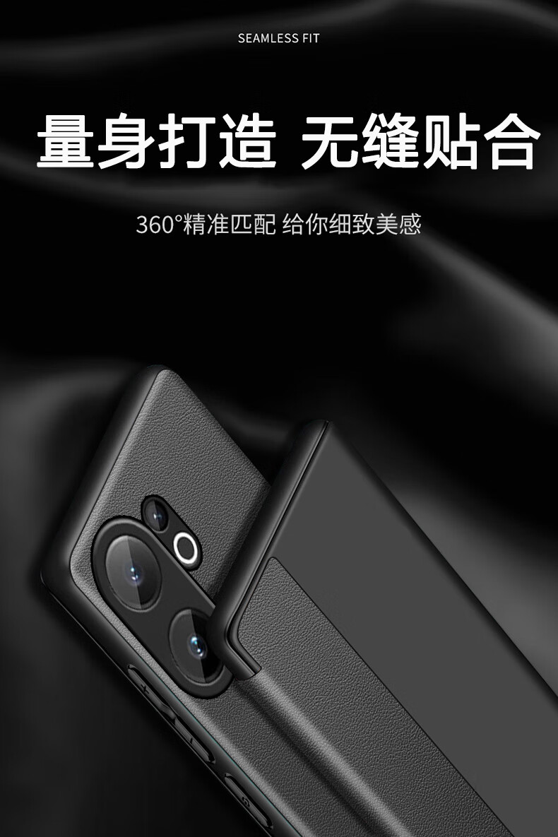 Amison vivo s30promini mobile phone case clamshell vivo s30 leather case protective cover all-inclusive lens anti-fall thin vegan leather simulated leather black-front and rear full cover丨genuine leather vivo s30