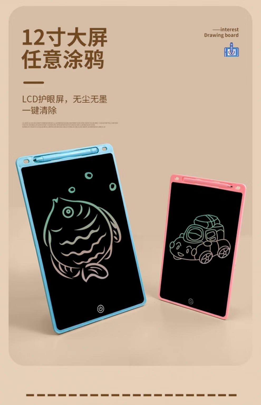 Disney (DISNEY) Children's Drawing Board LCD Writing Pad Drawing Toy Electronic Blackboard Home Writing Board Can Eliminate Color Drawing Screen 16-inch Blue Rechargeable + Magnetic Paint Brush