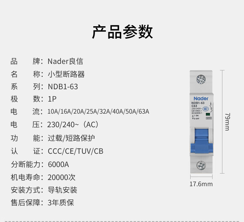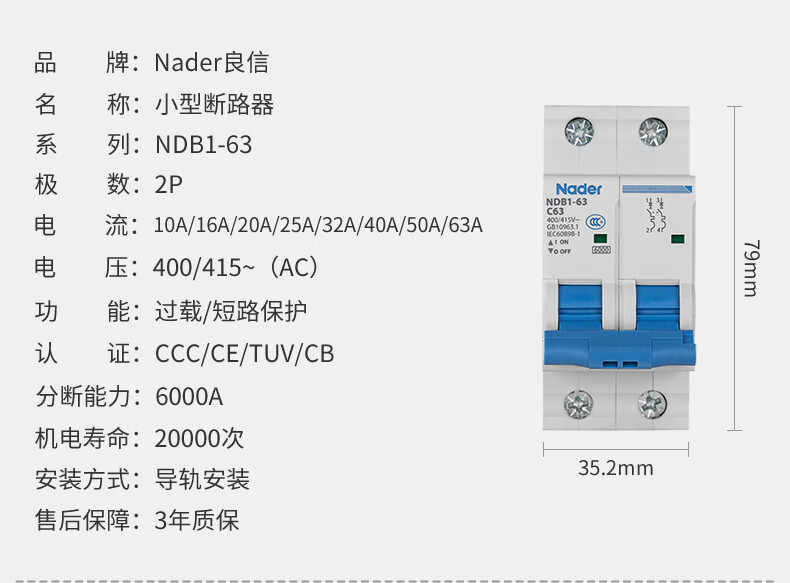 良信空气开关小型断路器上海良信NDB1-63C系列微断家用工业 NDB1-63 C10/1