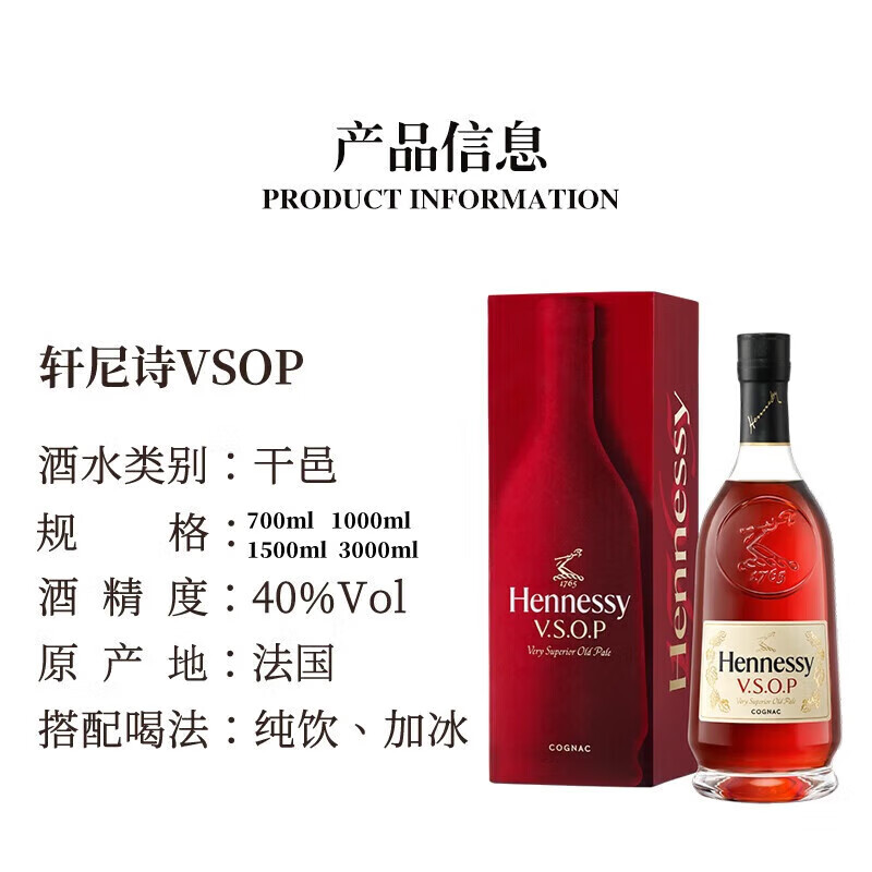 轩尼诗(Hennessy)VSOP 法国进口 干邑白兰地酒 洋酒烈酒 礼盒装 VSOP 700mL 1瓶