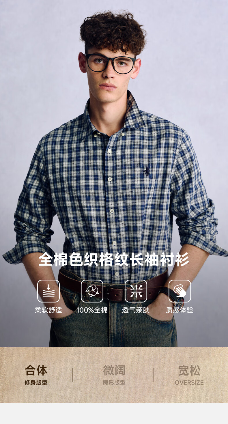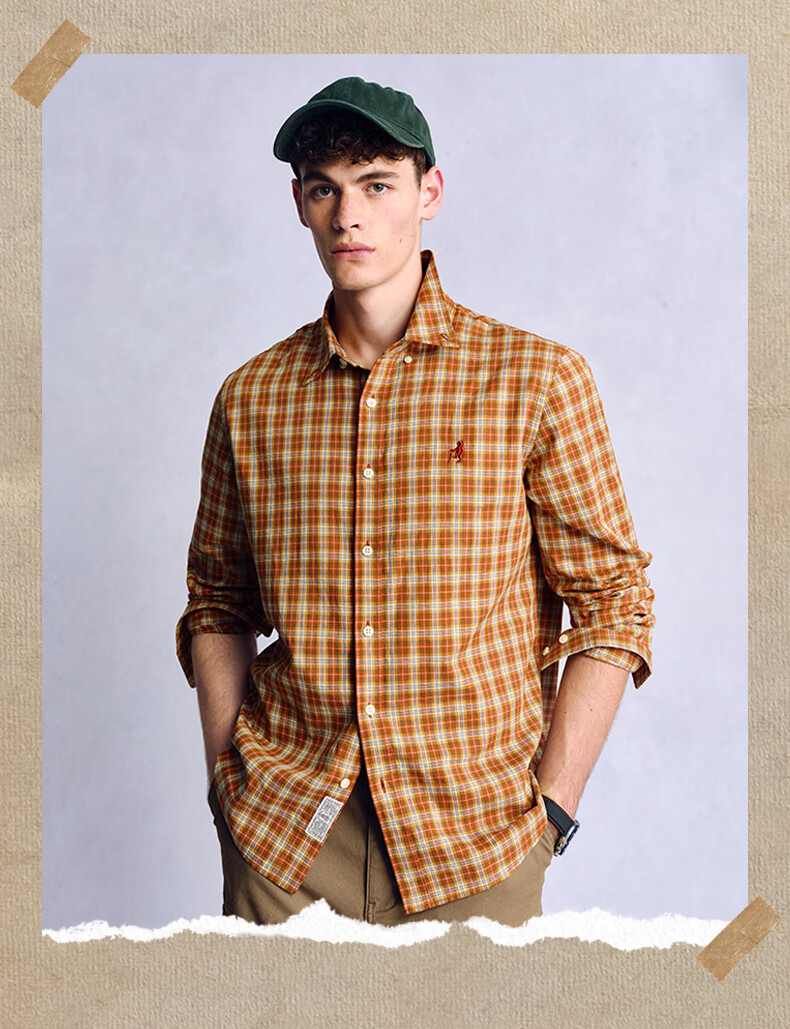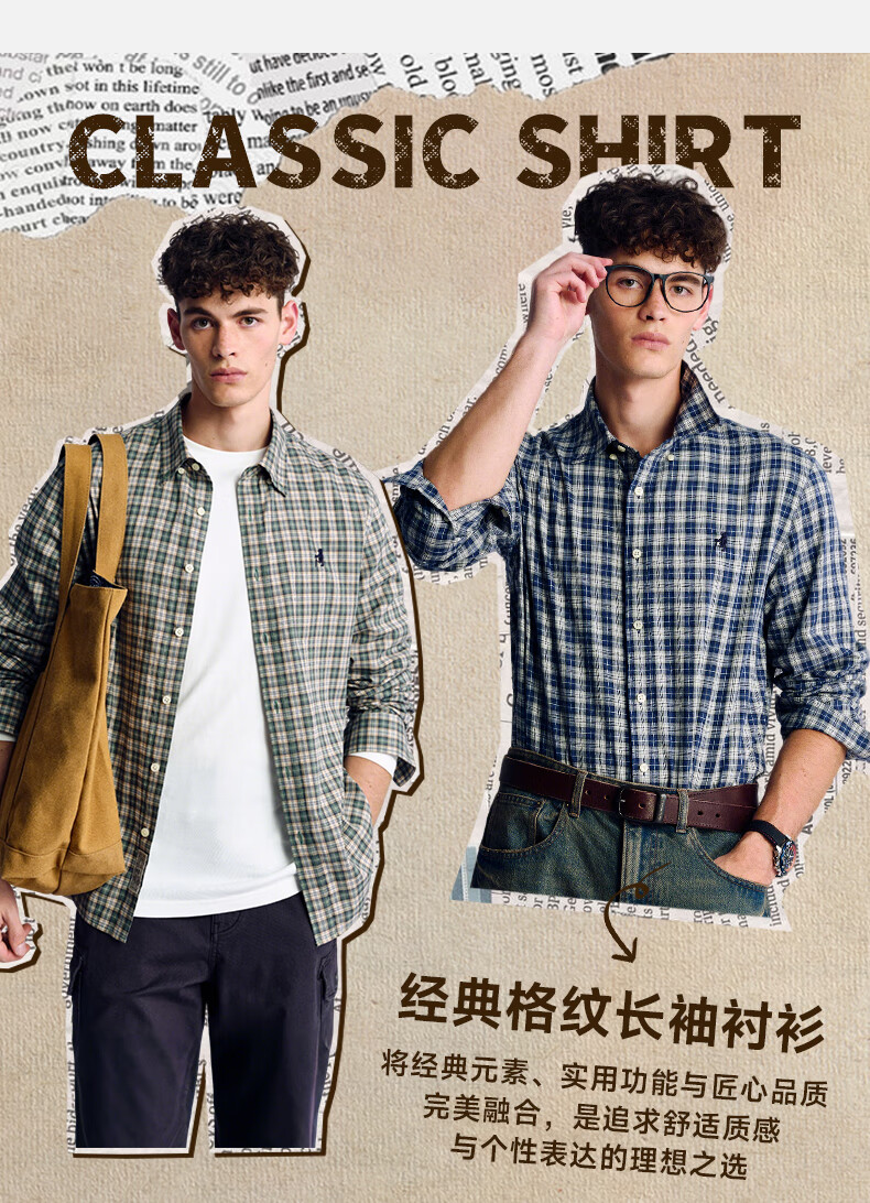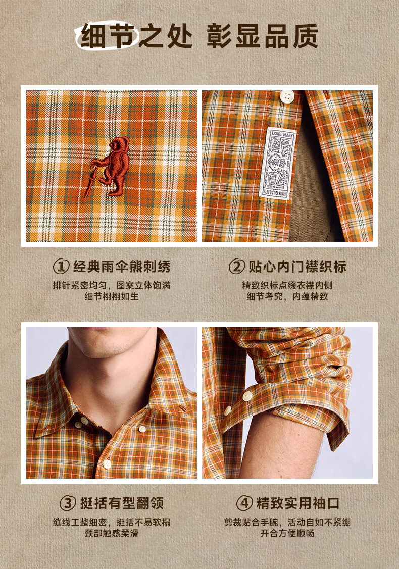Teenie Weenie小熊男装美式休闲舒适柔软格子长袖衬衫 军绿 L