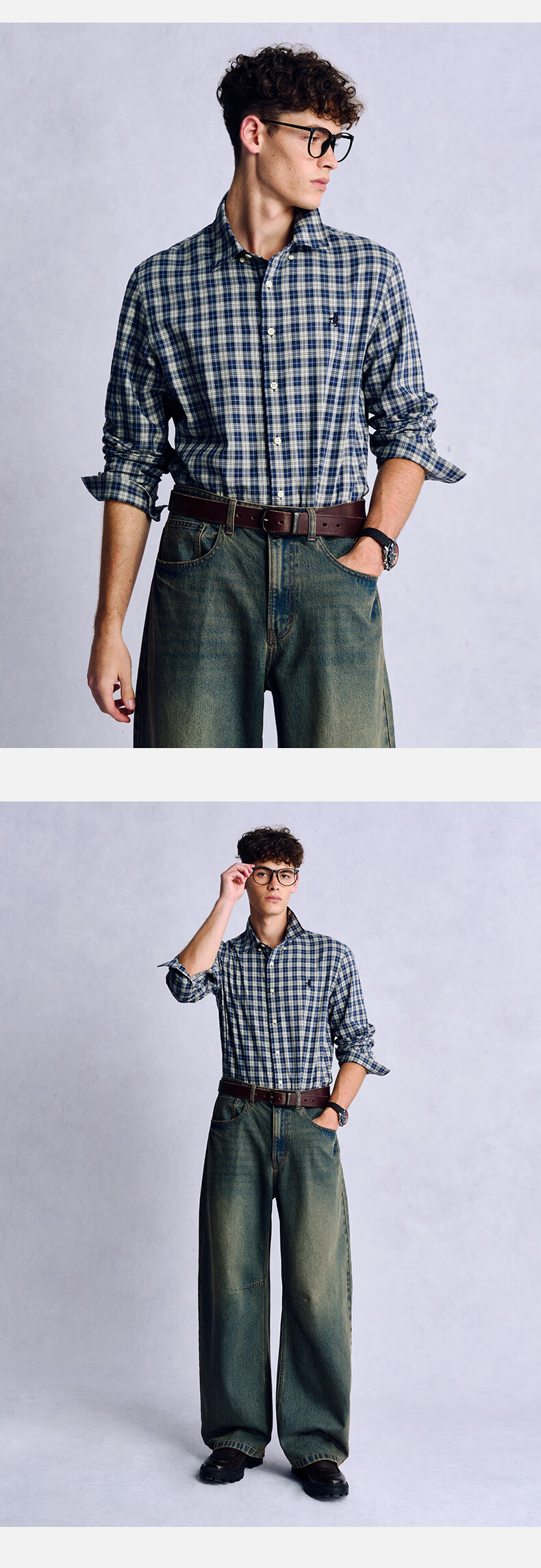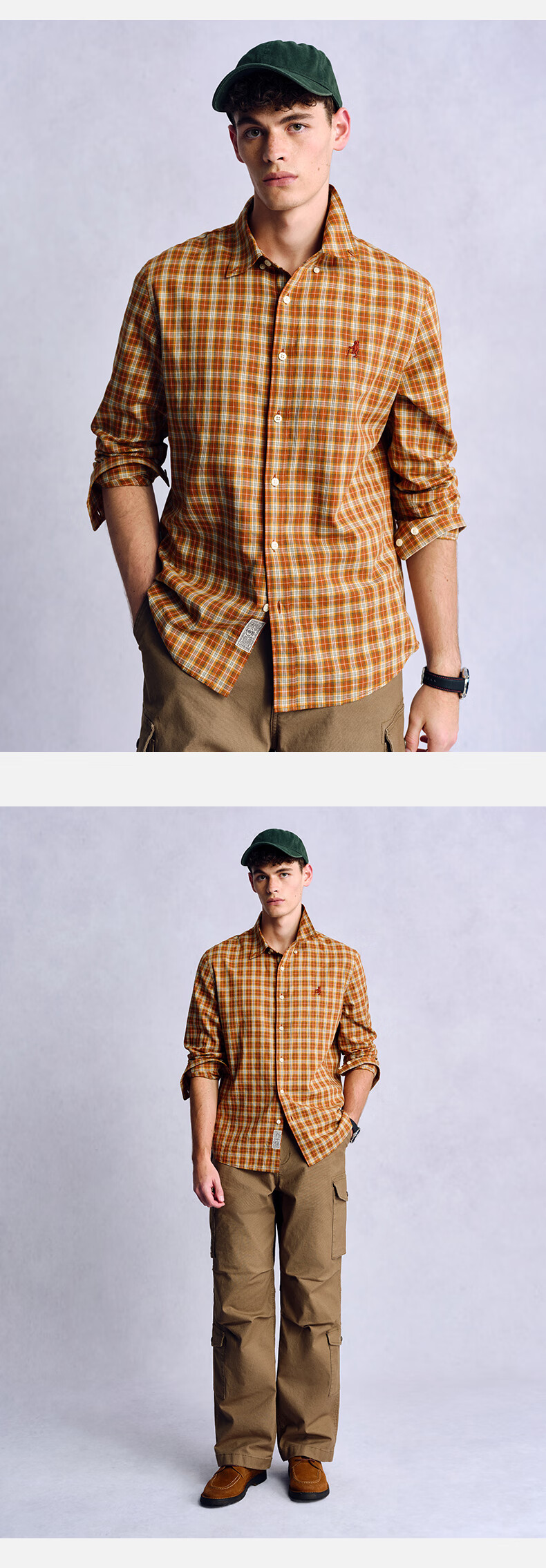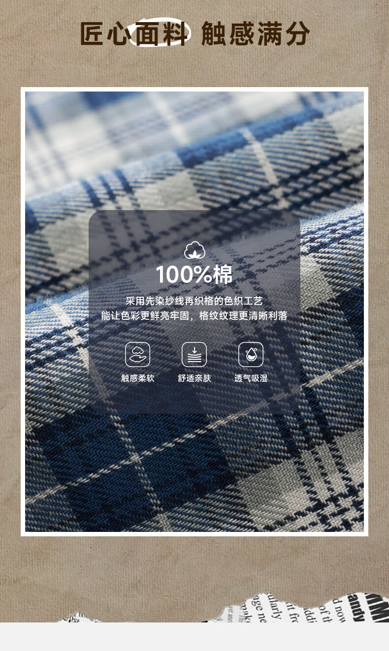 Teenie Weenie小熊男装美式休闲舒适柔软格子长袖衬衫 军绿 L