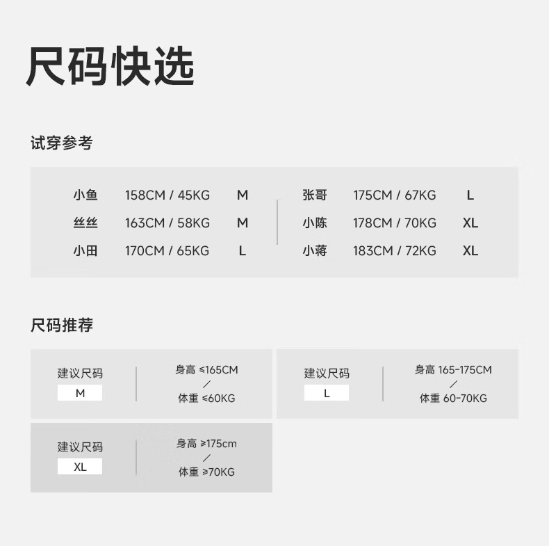 China (cm) 160-165/84-86 165-170 / 88-90 167-172 / 92-96 168-173 / 98-102 170-176 / 106-110