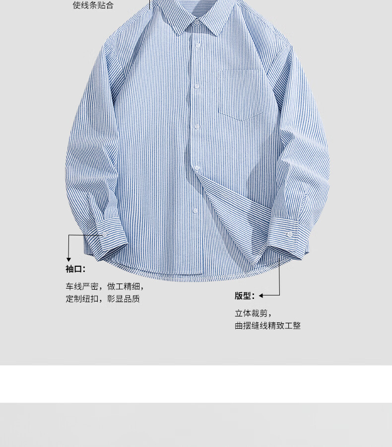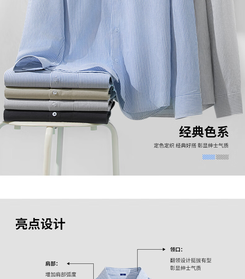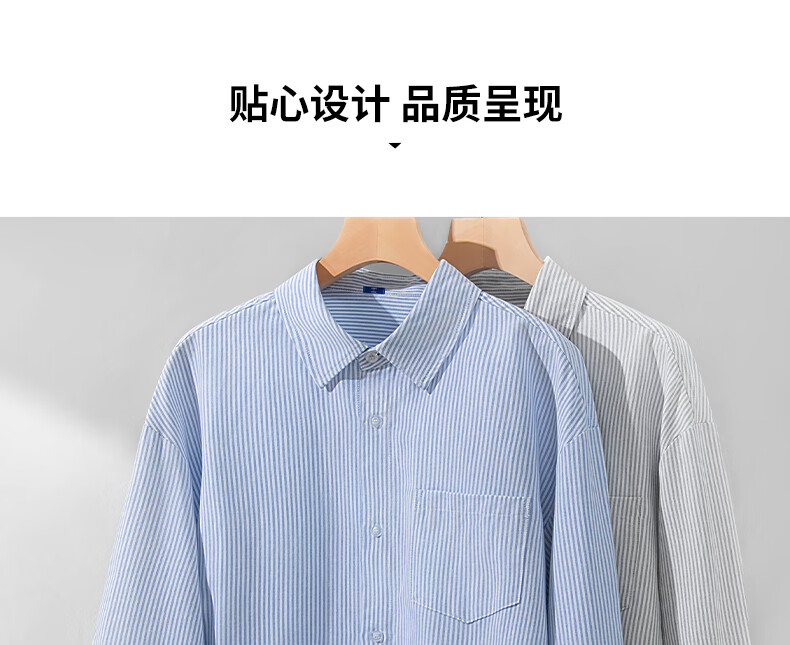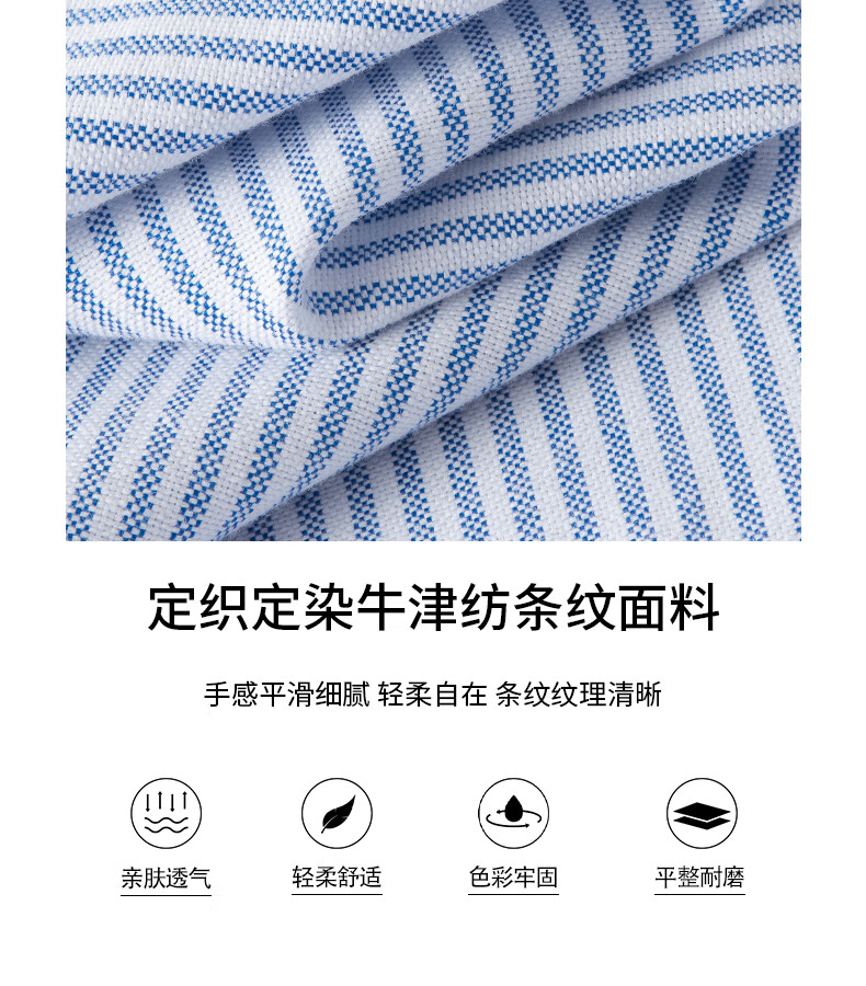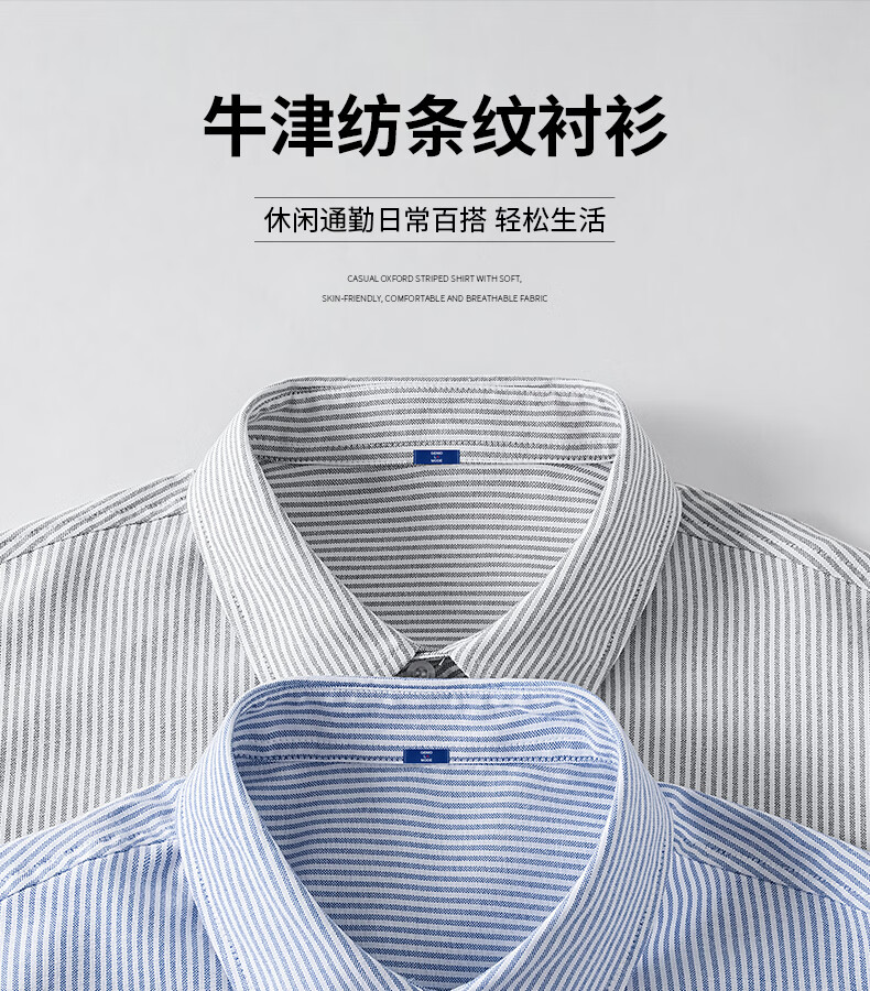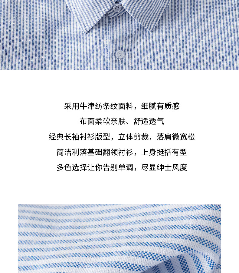 春秋季牛津纺衬衫长袖男士衬衣休闲抗皱免烫商务男装条纹寸衫外套 蓝色 【长袖款】 41 【145斤-160斤】