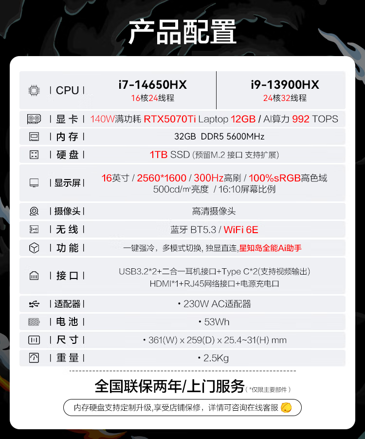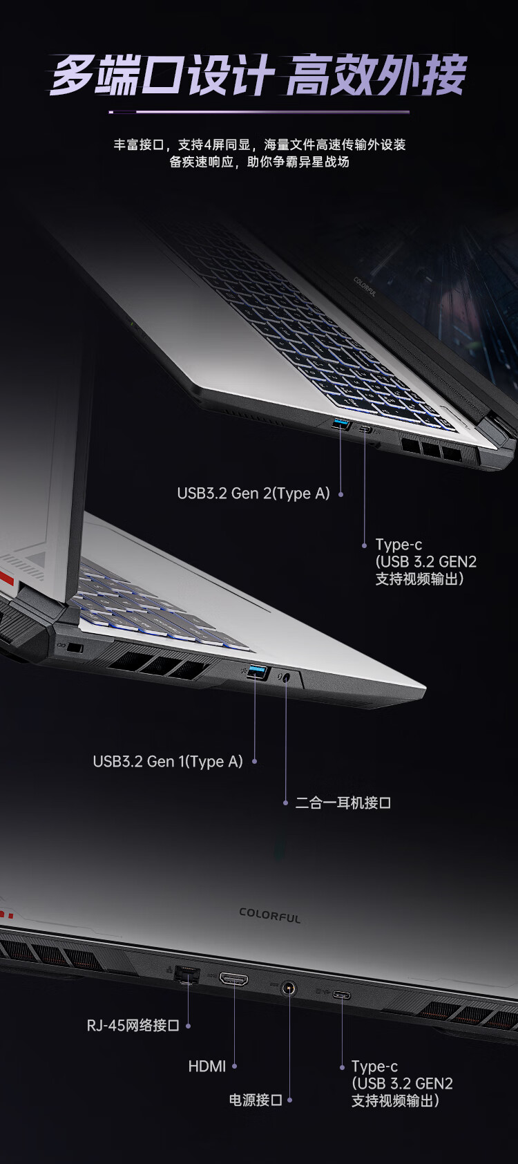 Colorful Hidden Star P16 Pro gaming laptop high refresh 2.5K e-sports screen G16 Core i7 student AI designer clip to play Black Myth Wukong 25 new product white I9-13900HX 64GB 1TB customized full blood RTX5070Ti e-sports independent display