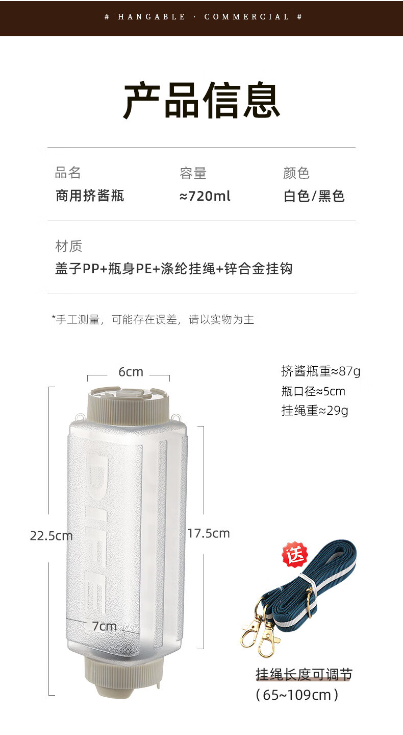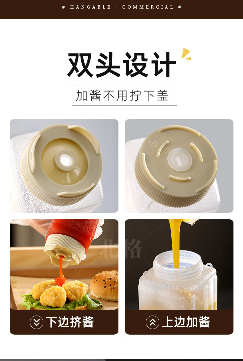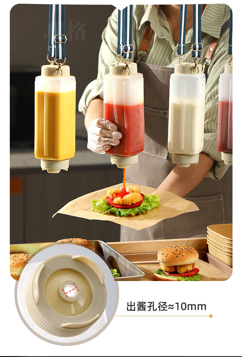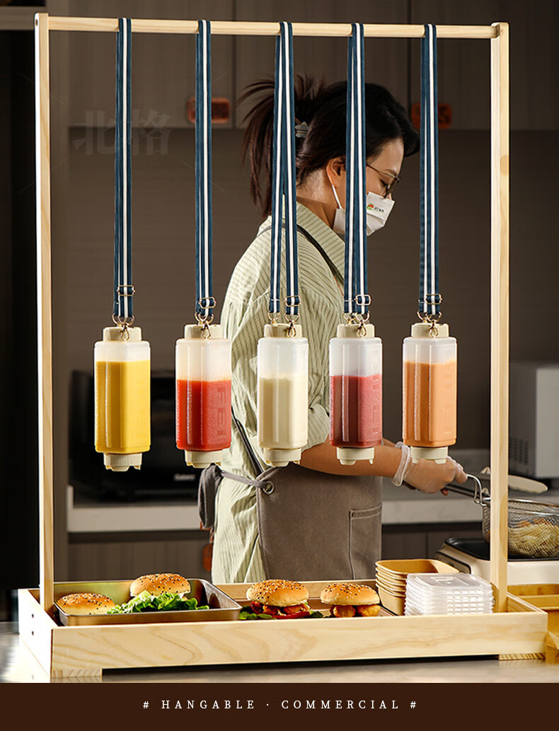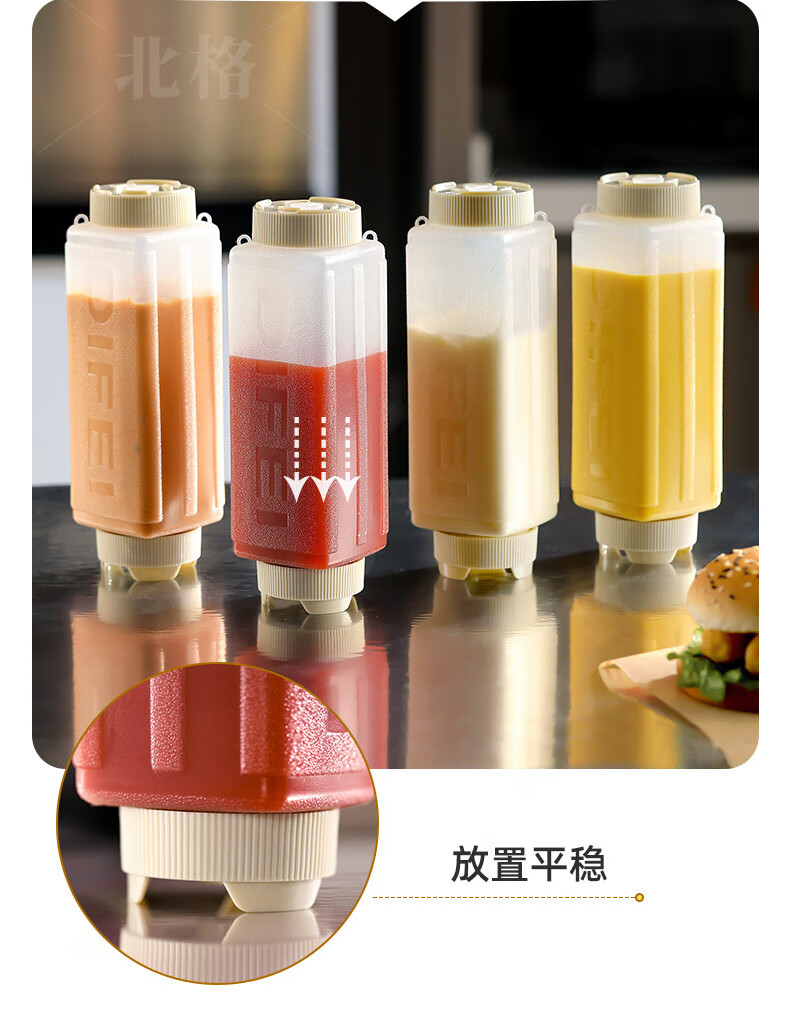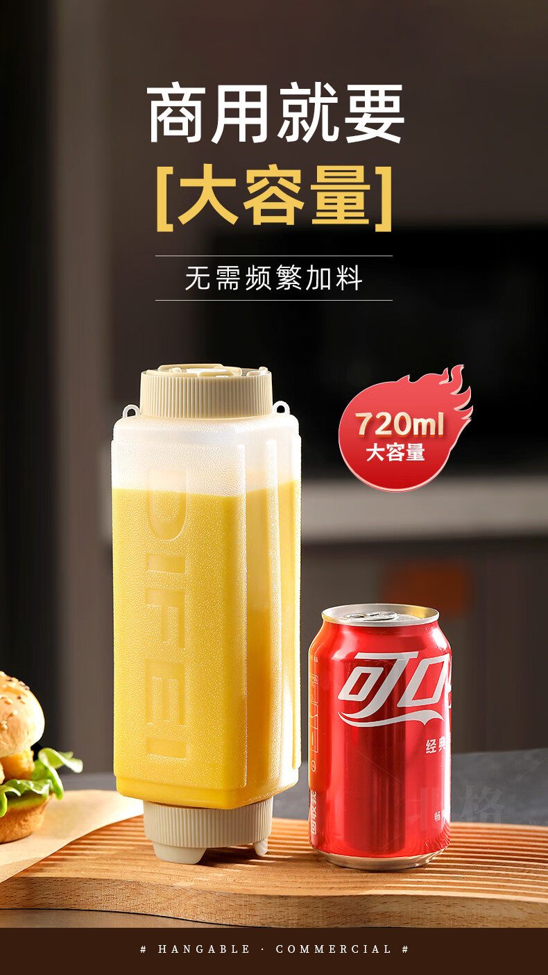 Beigefarbene Soßenflasche für kommerzielle Fast-Food-Restaurantstände, spezielle aufhängbare Tomaten-Thousand-Island-Salat-Senfsoßen-Quetschflasche, weiß, 4er-Pack, aufhängbar_kann umgedreht werden + 720 ml
