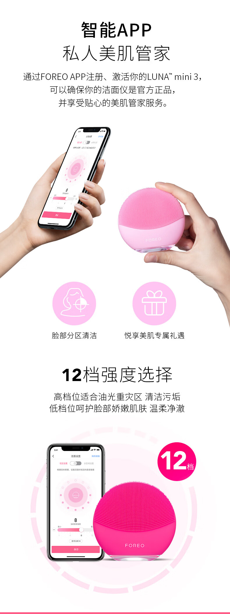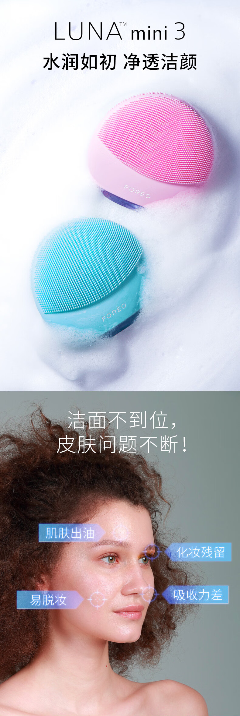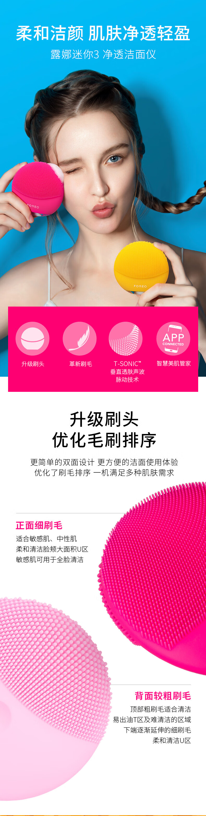 FOREO LUNA mini 3 silicone facial cleansing instrument pore cleaning brush makeup remover artifact electric facial cleansing instrument pink