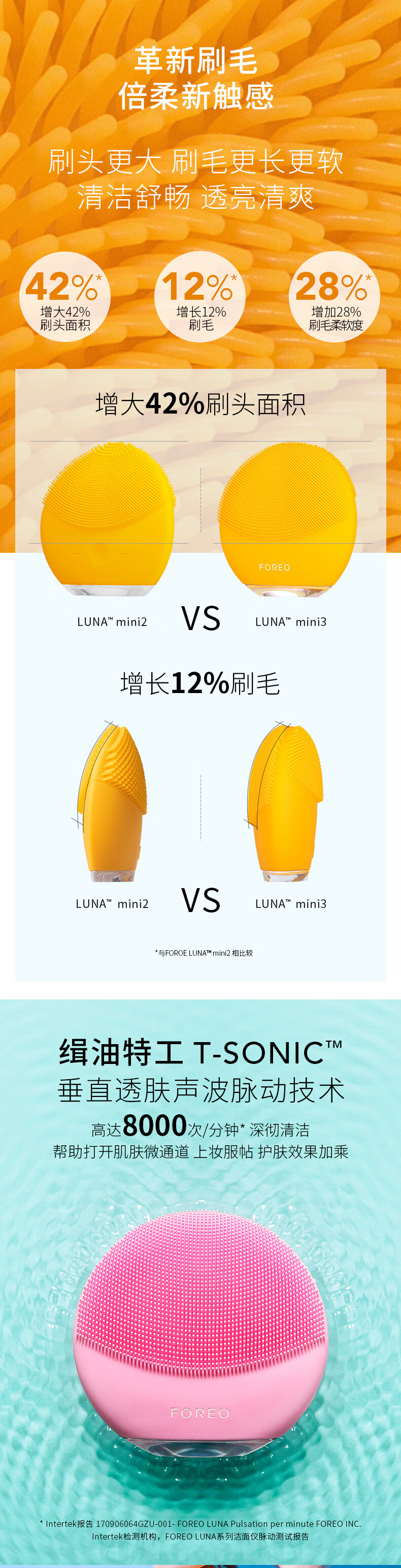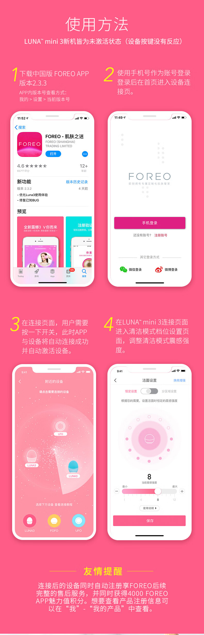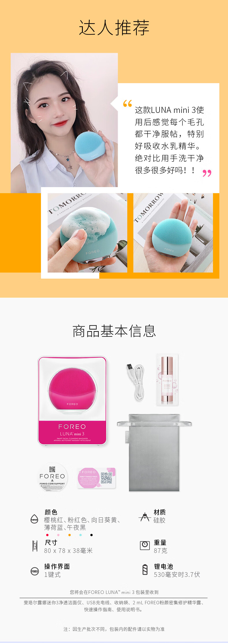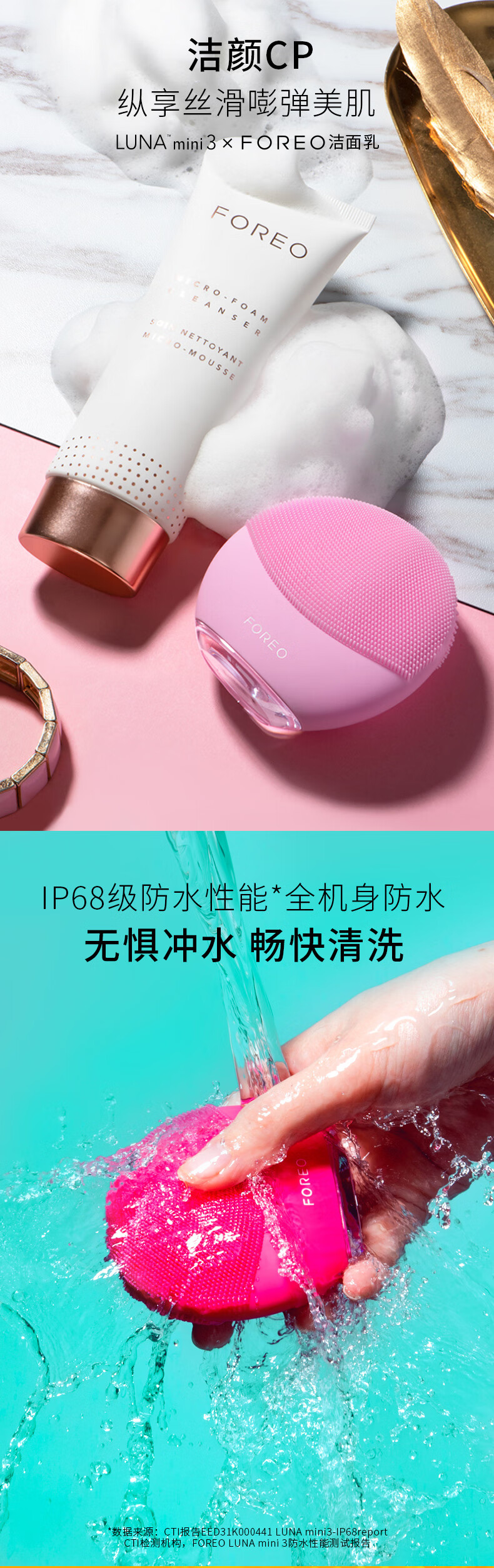FOREO LUNA mini 3 silicone facial cleansing instrument pore cleaning brush makeup remover artifact electric facial cleansing instrument pink