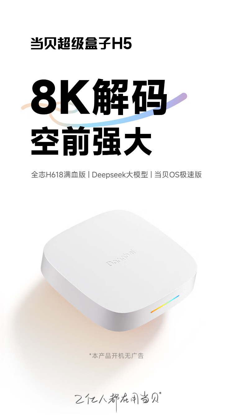 当贝电视盒子H5  8K智能电视网络机顶盒 2G+32G 双频WiFi5 高清HDR10+  【8K解码/2+32G/全志H618满血】H5