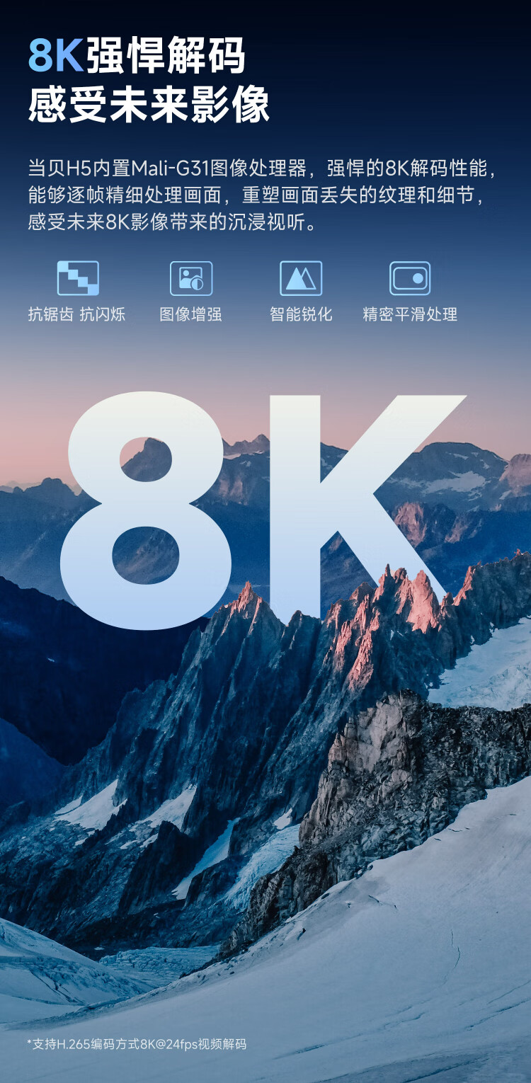 当贝电视盒子H5 8K智能电视网络机顶盒 2G+32G 双频WiFi5 高清HDR10+ 【8K解码/2+32G/全志H618满血】H5