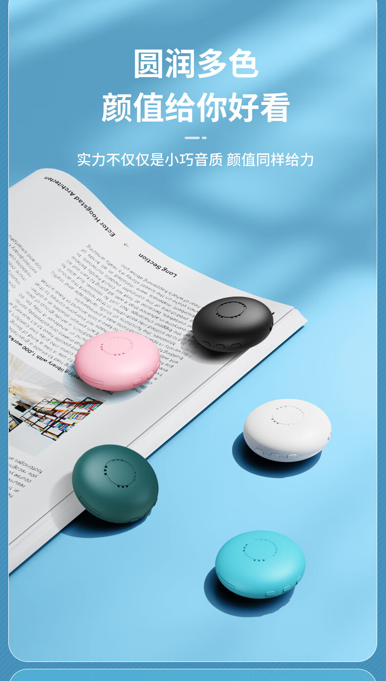 Mini kleiner Lautsprecher, rund, TWS, Tasche, Mini, niedlich, TF-Karte, kleiner Lautsprecher, großes Volumen, Uhr, Handy, Bluetooth, dünn, weiß, Paket 1