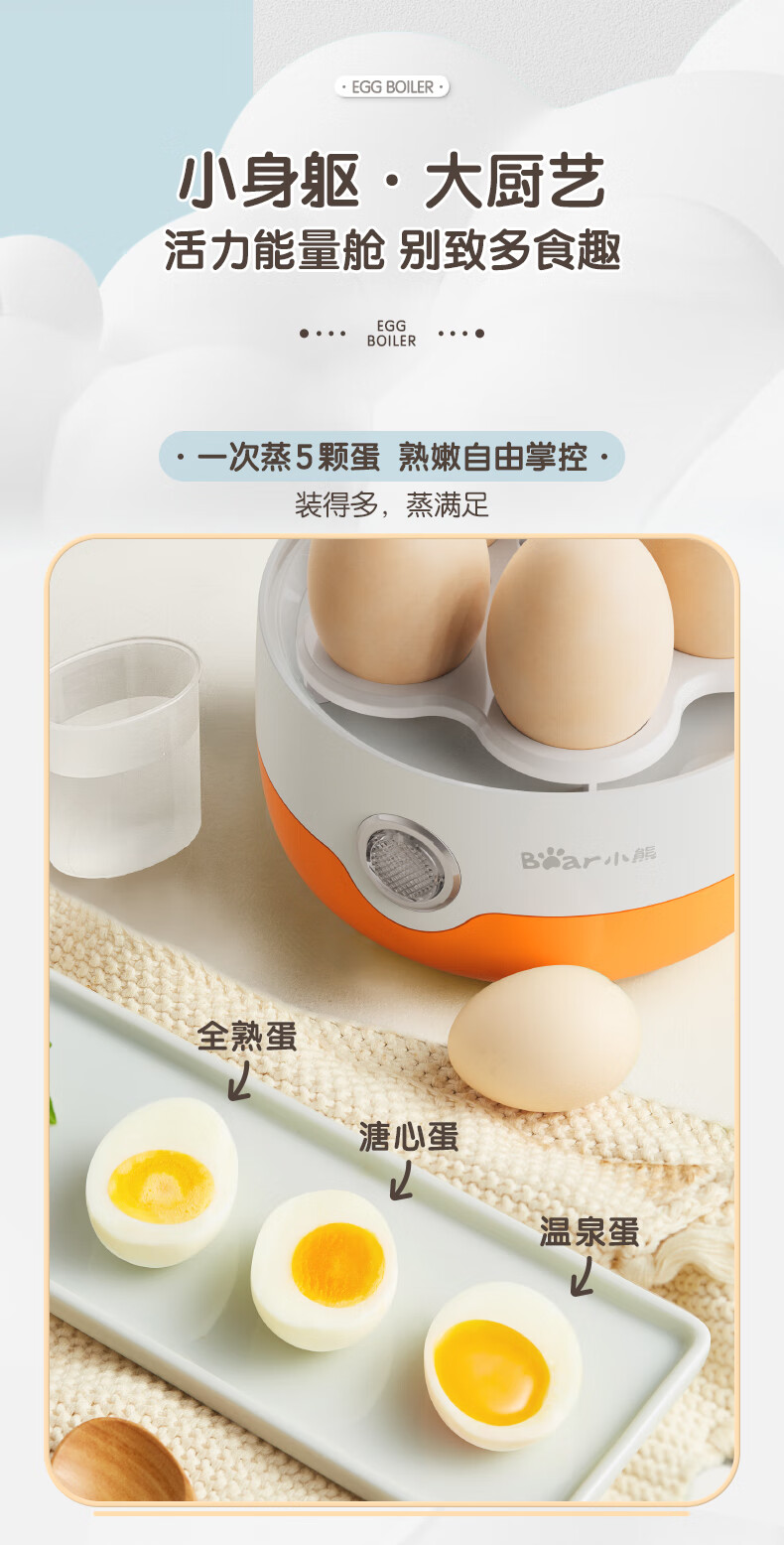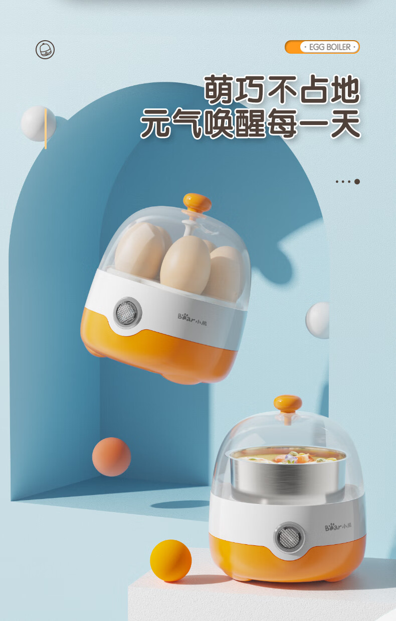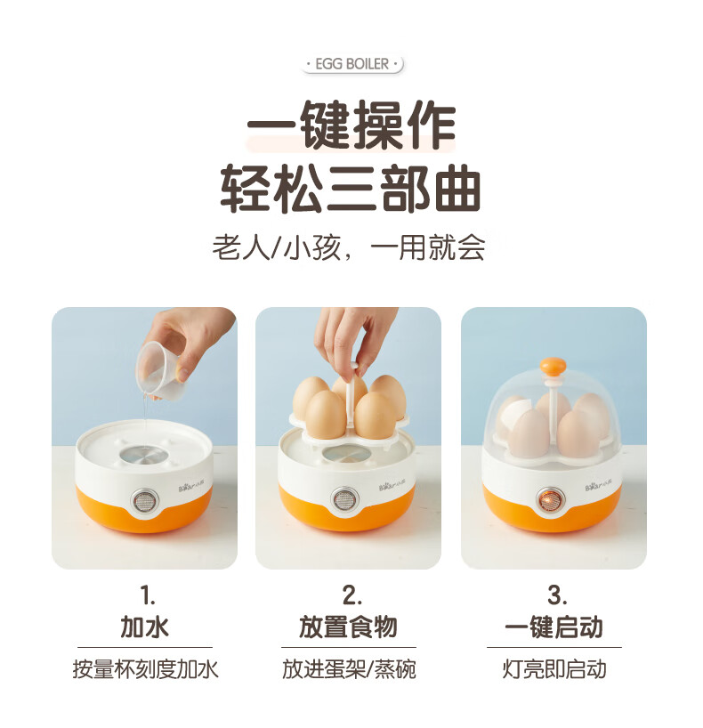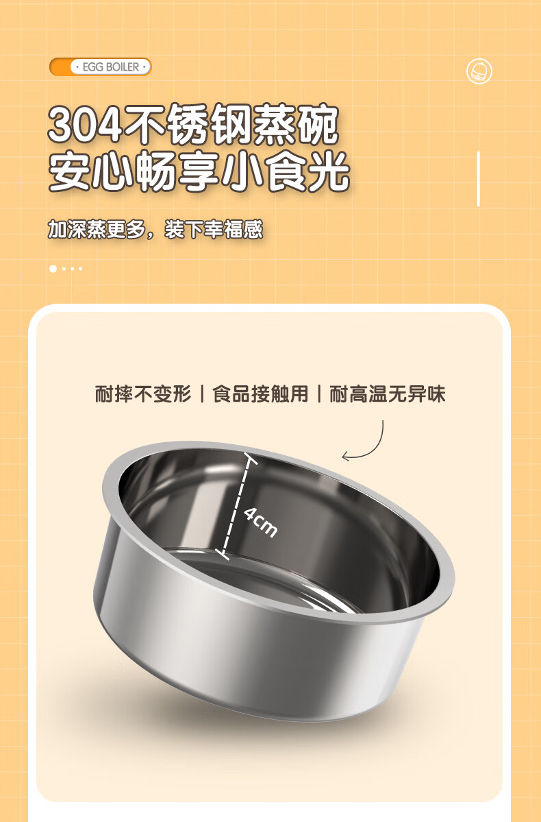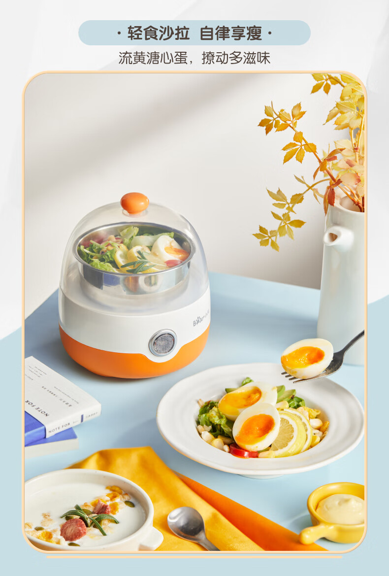 Little Bear Little Bear Egg Cooker Artifact, Automatic Power Off, Home Mini Egg Steamer, Breakfast Egg Custard Maker, Multifunctional Small, Single Layer, Orange - Automatic Power Off, With Steaming Bowl