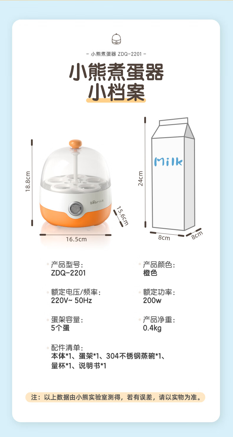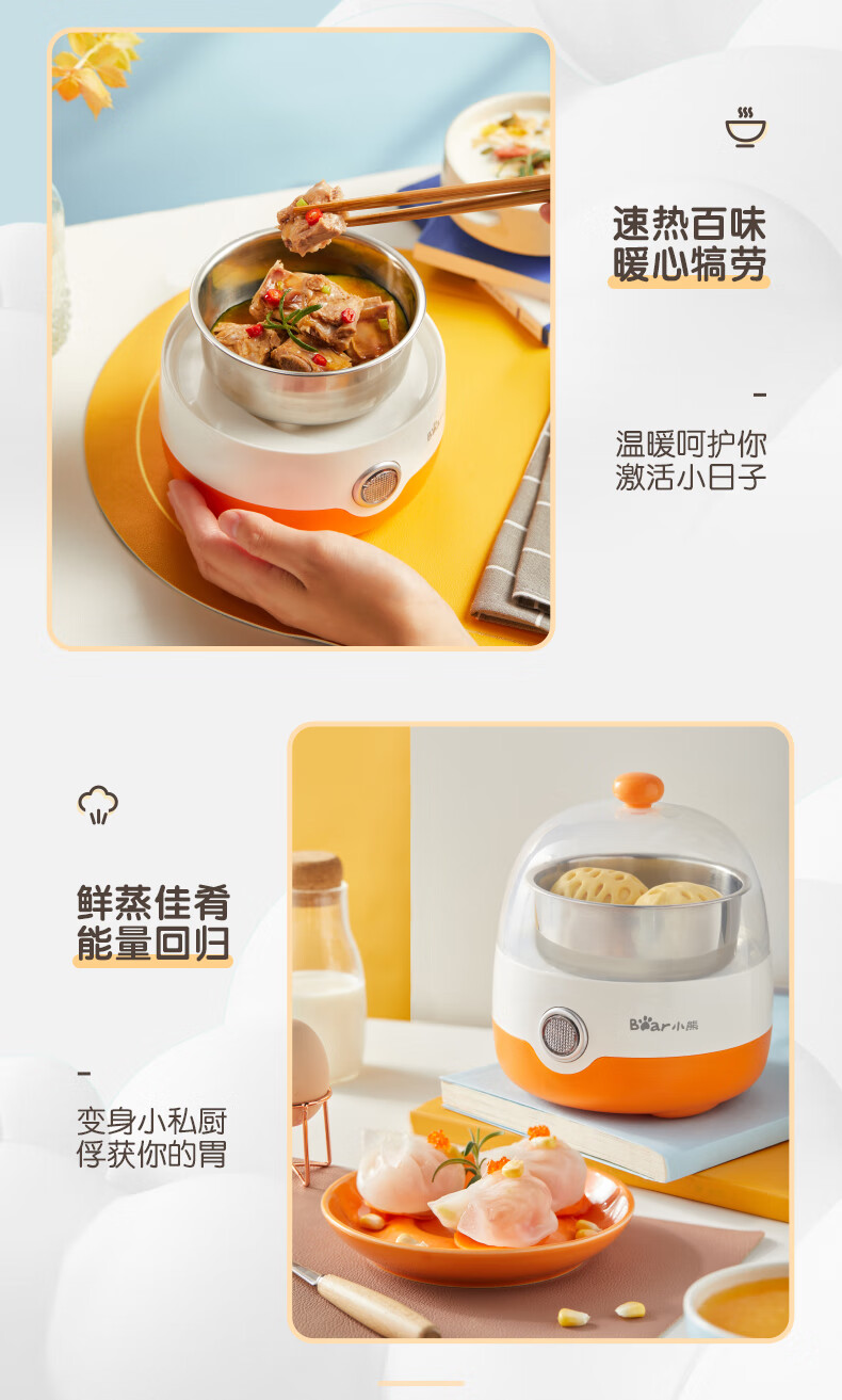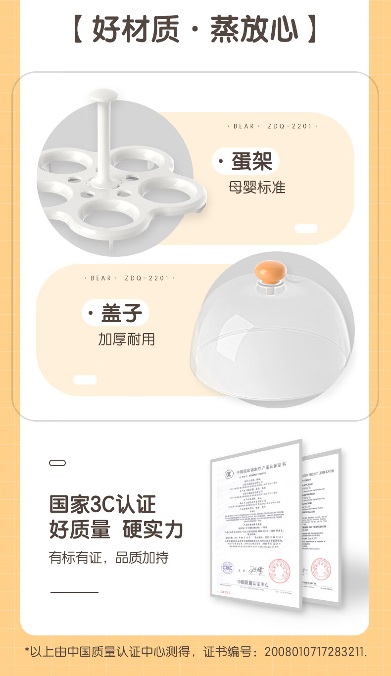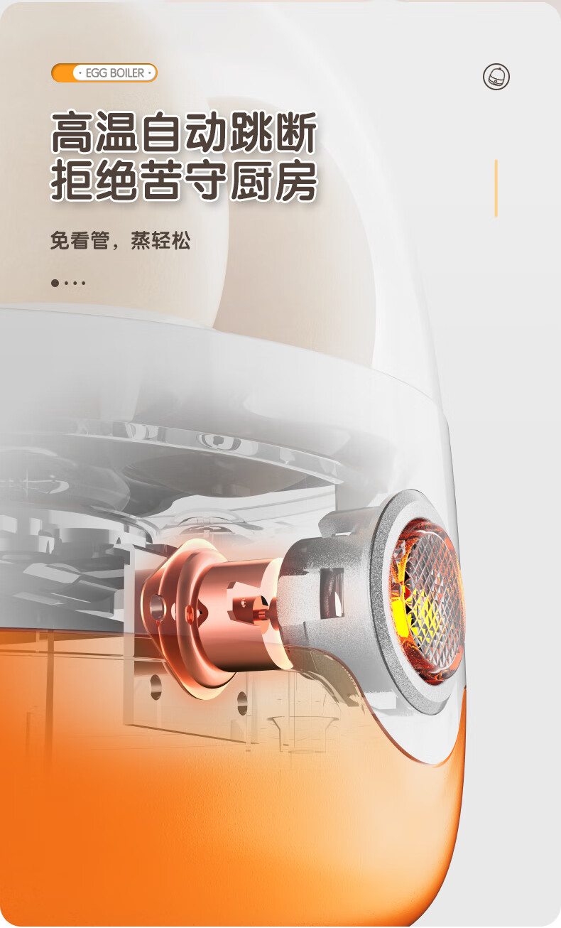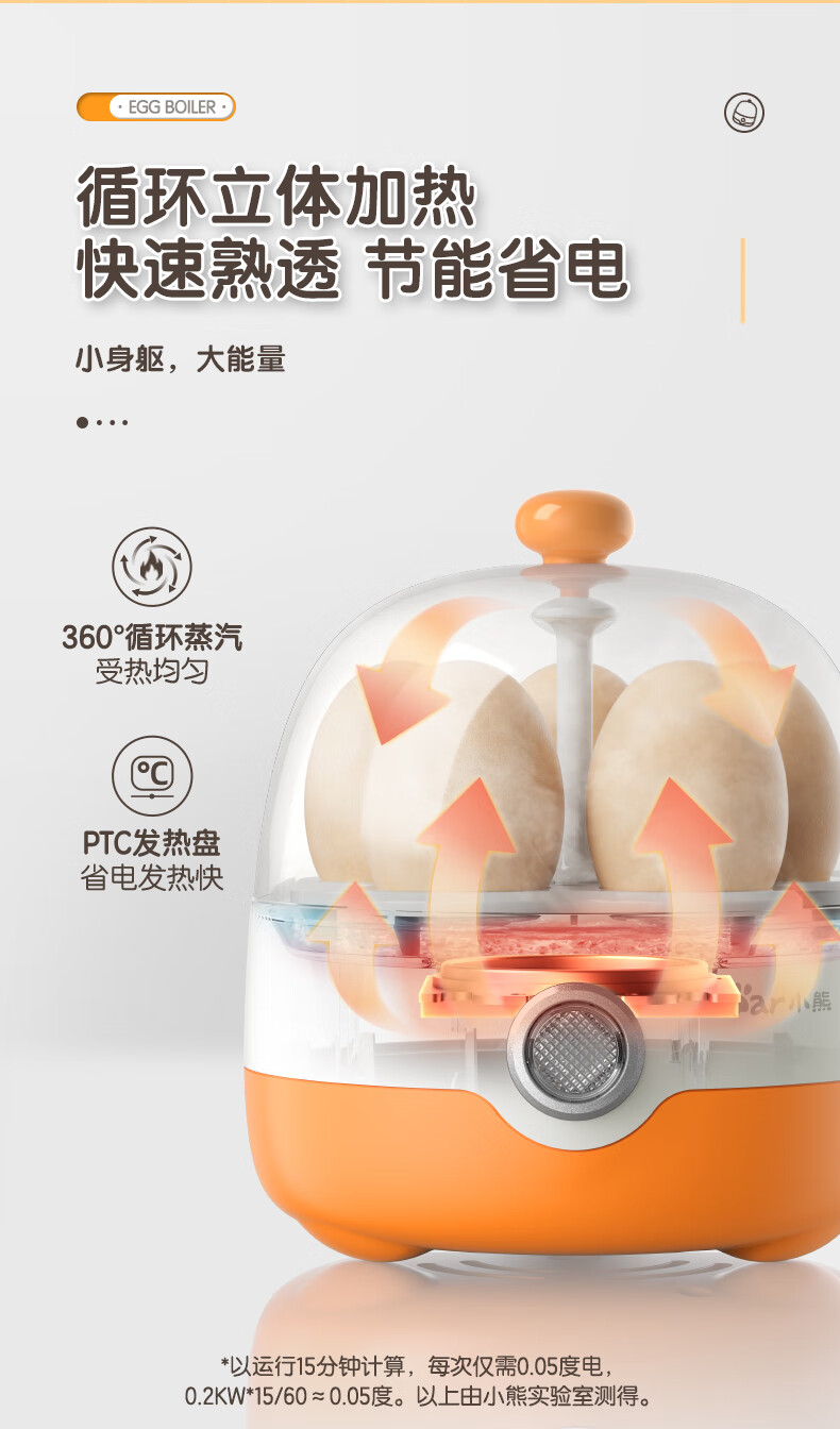 Little Bear Little Bear Egg Cooker Artifact, Automatic Power Off, Home Mini Egg Steamer, Breakfast Egg Custard Maker, Multifunctional Small, Single Layer, Orange - Automatic Power Off, With Steaming Bowl