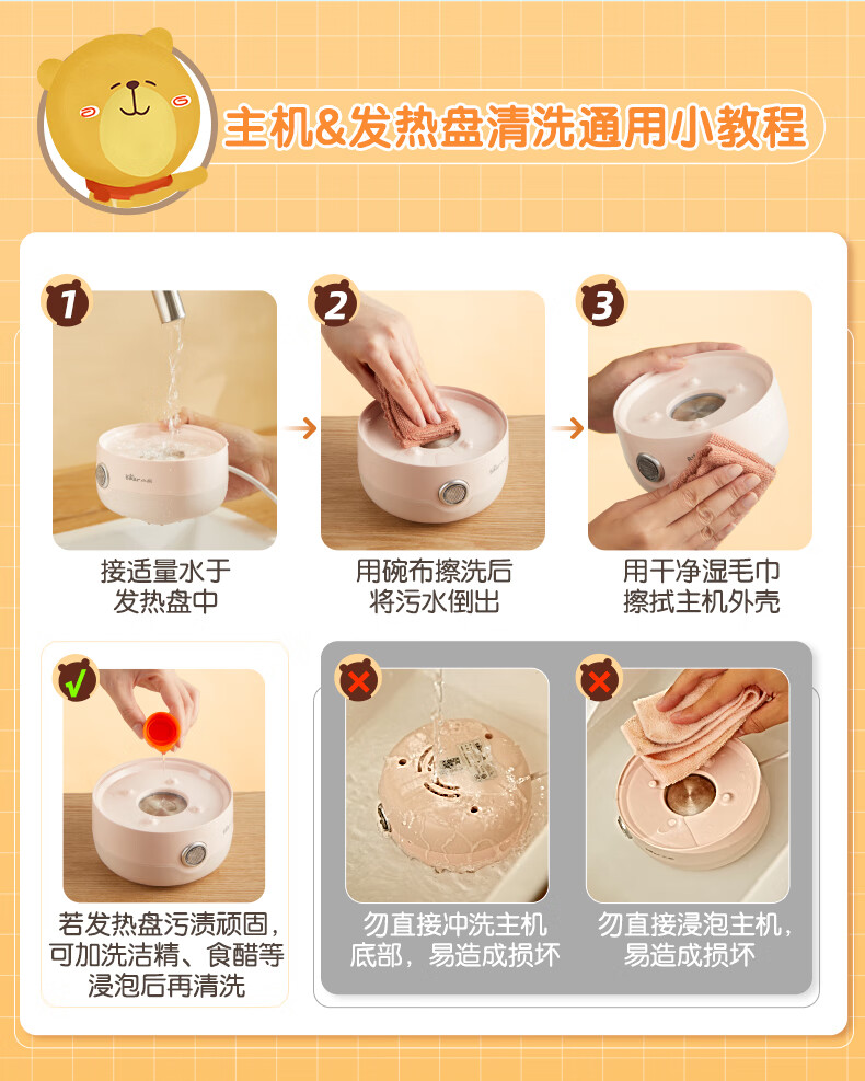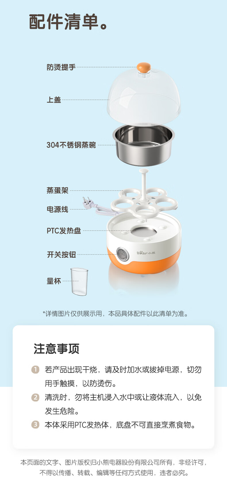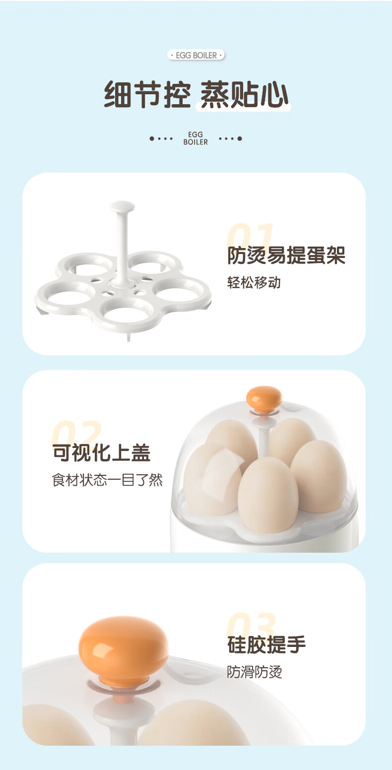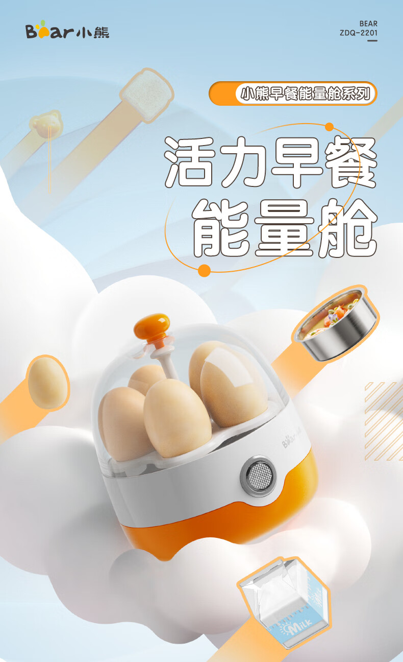 Little Bear Little Bear Egg Cooker Artifact, Automatic Power Off, Home Mini Egg Steamer, Breakfast Egg Custard Maker, Multifunctional Small, Single Layer, Orange - Automatic Power Off, With Steaming Bowl