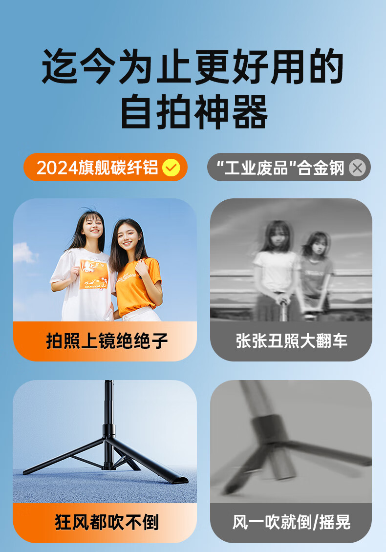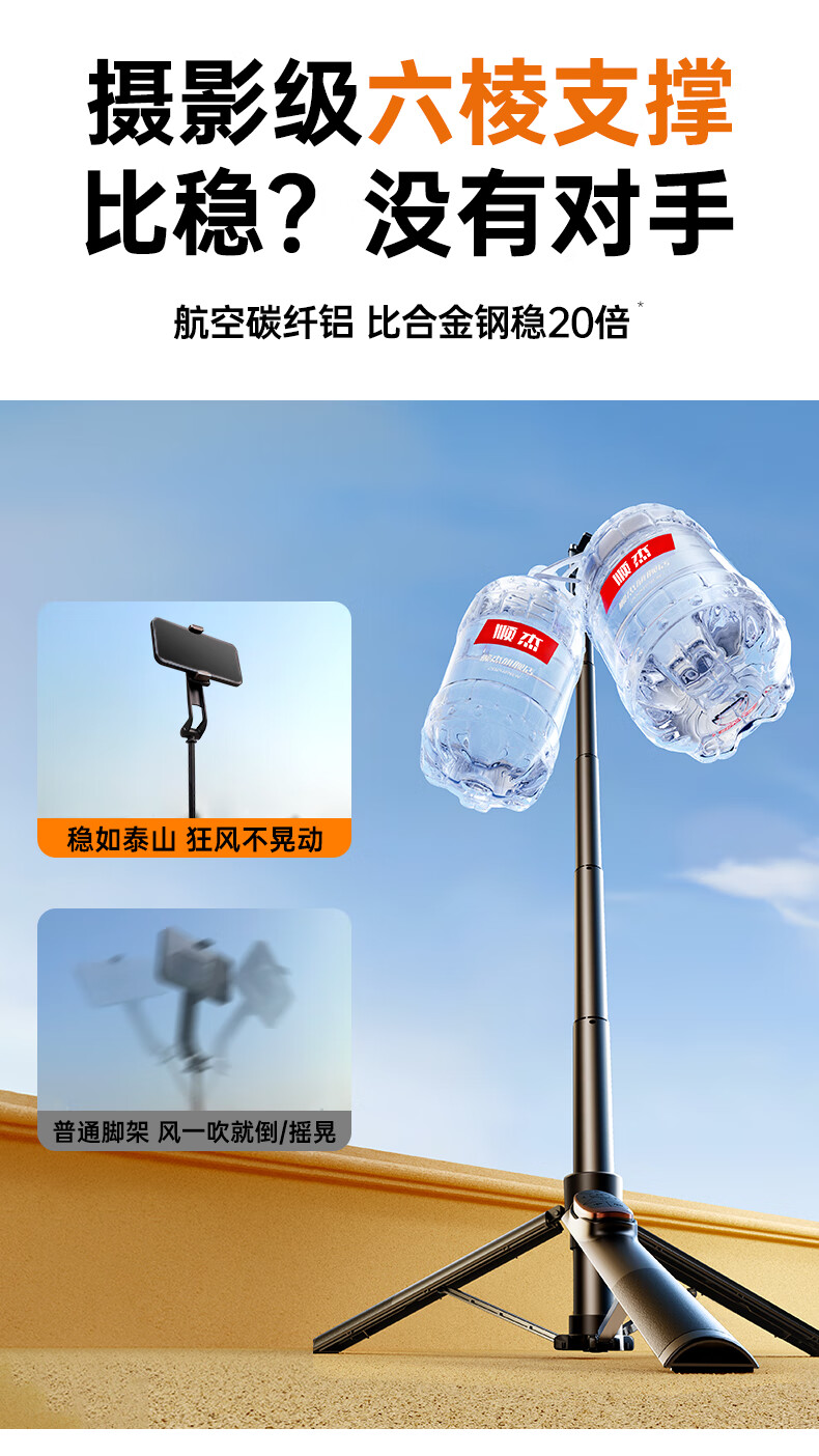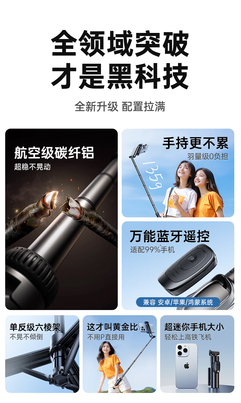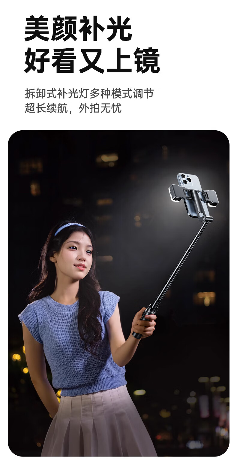 JCZS 2025 New Selfie Stick Bracket Tripod Travel Portable 360 Degree Rotating Photography Artifact Mobile Phone Anti-Shake Shooting Special Bluetooth Mini Handheld Concert Straight 1.3 Meters Advanced Model