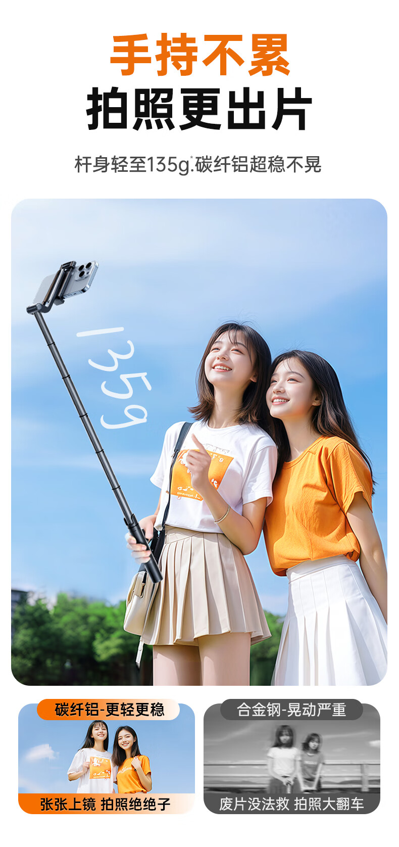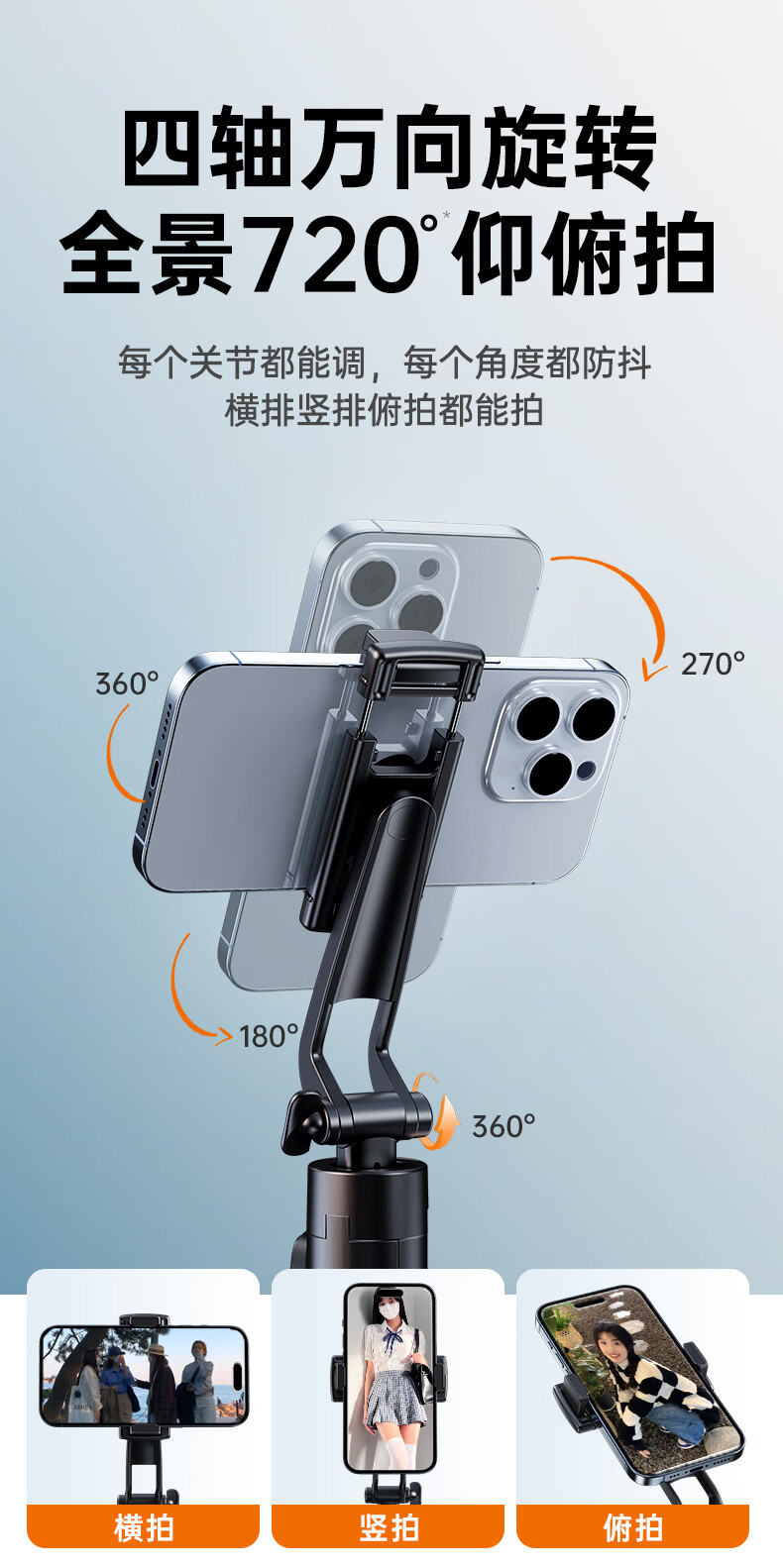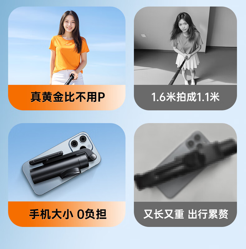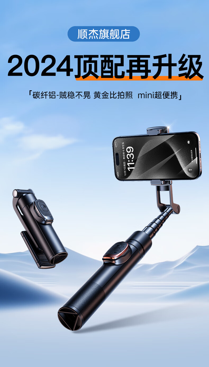 JCZS 2025 New Selfie Stick Bracket Tripod Travel Portable 360 Degree Rotating Photography Artifact Mobile Phone Anti-Shake Shooting Special Bluetooth Mini Handheld Concert Straight 1.3 Meters Advanced Model