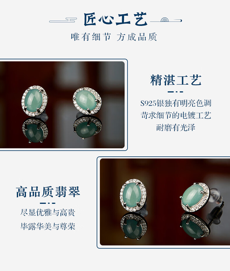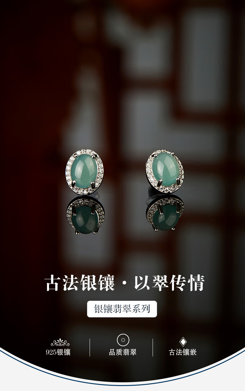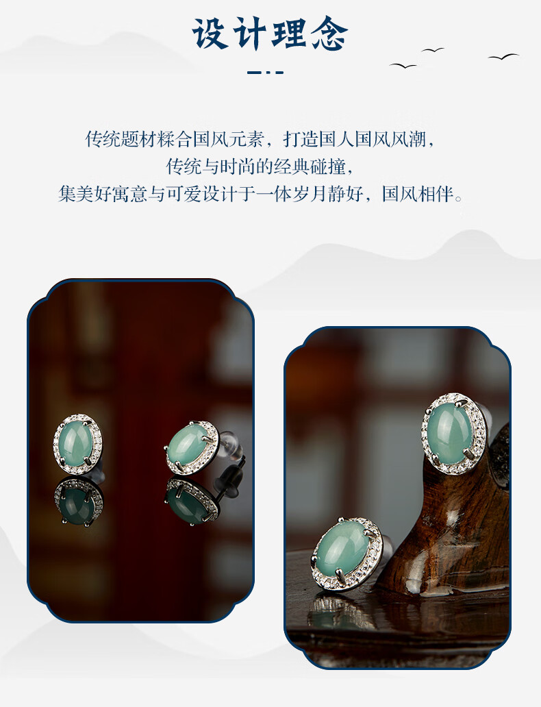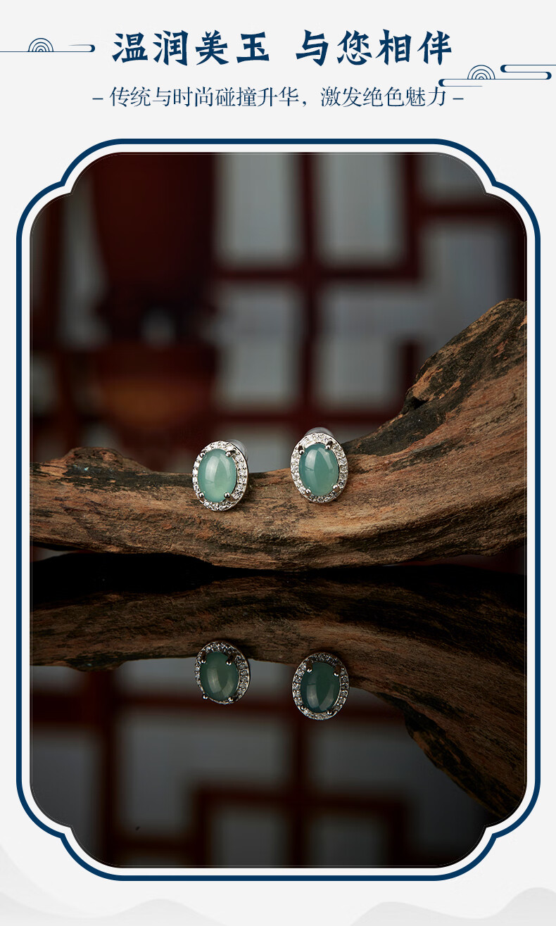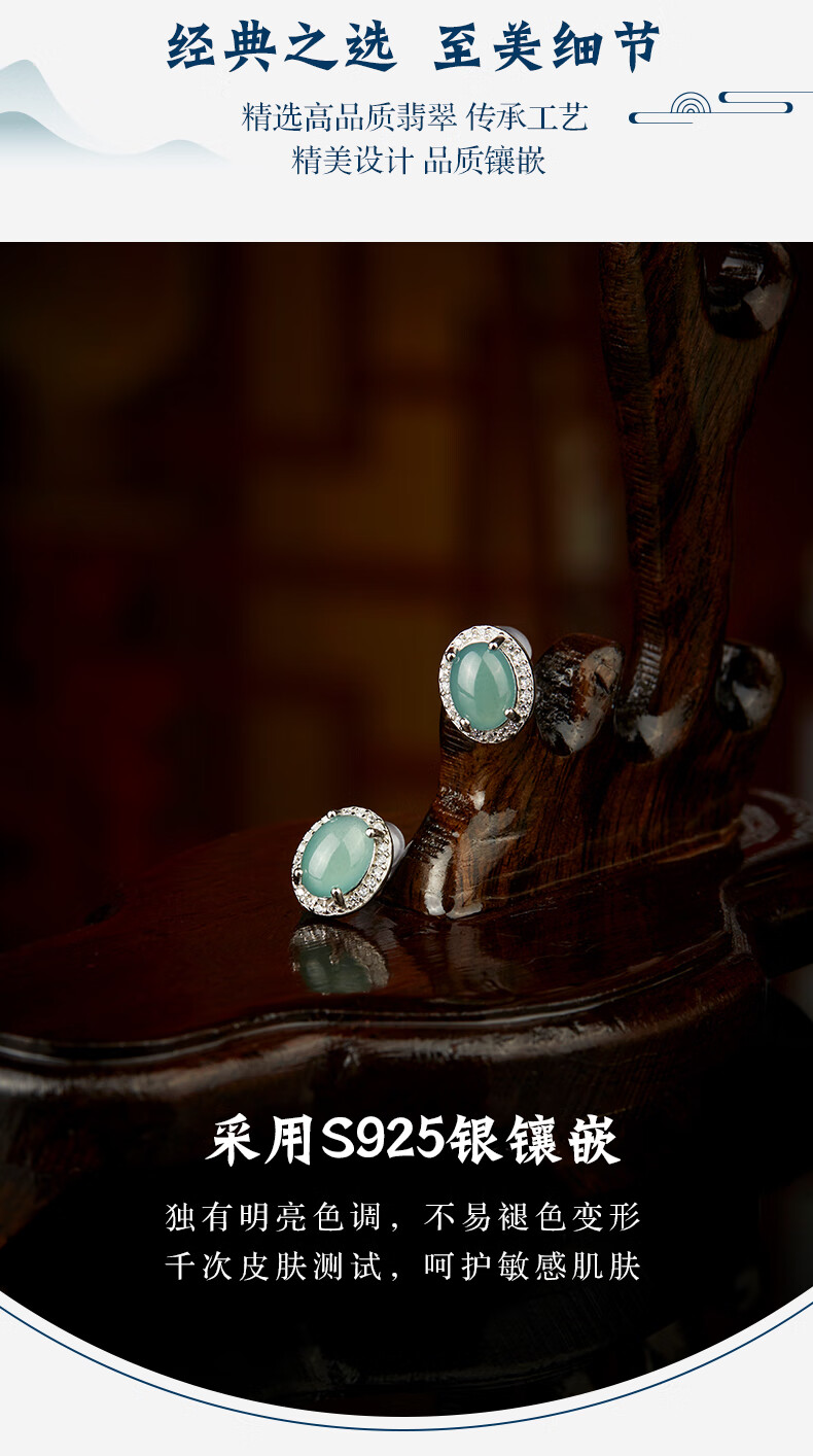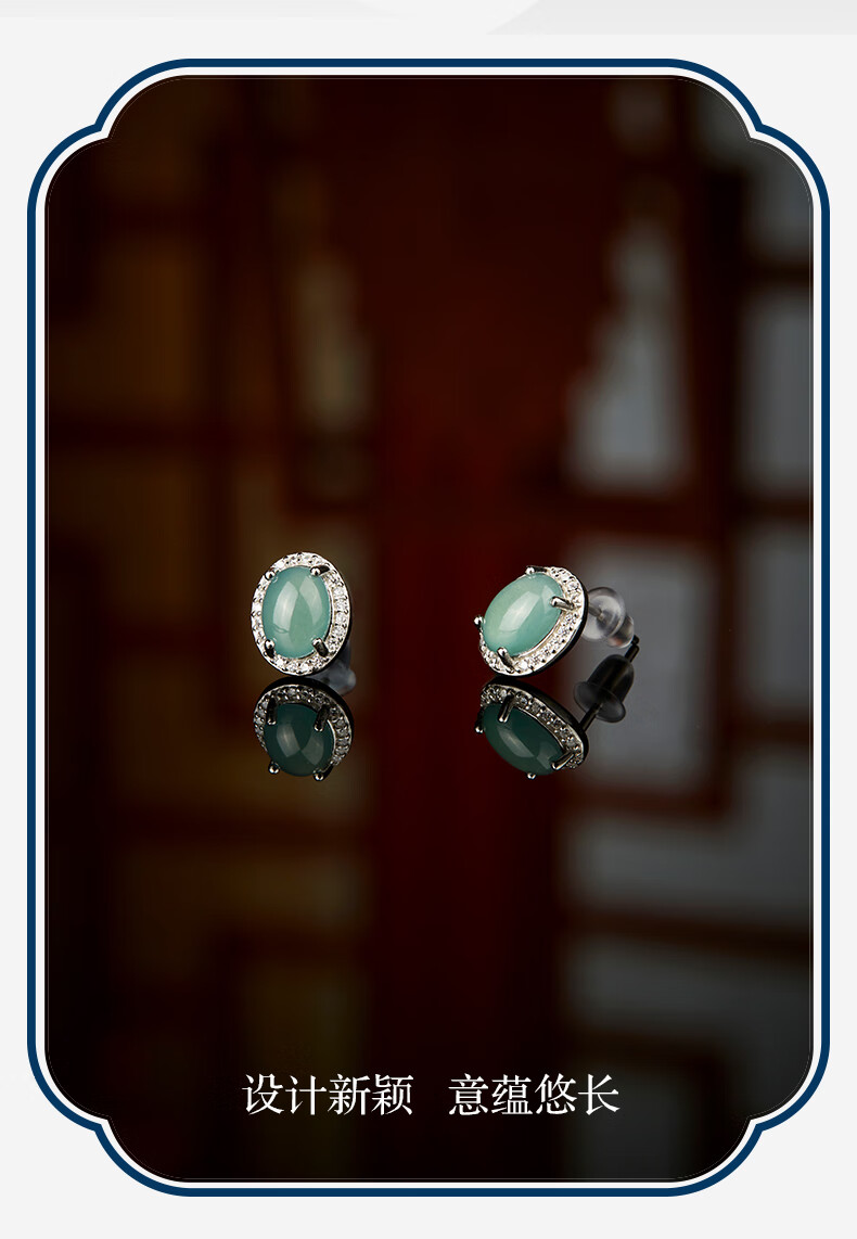 七彩云南保价11.11翡翠蓝水蛋面耳饰银镶耳钉送妈妈送女友节日礼物附证书 蓝水蛋面款