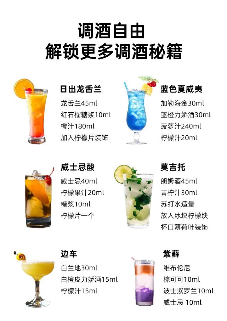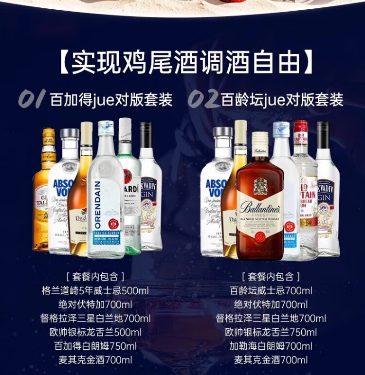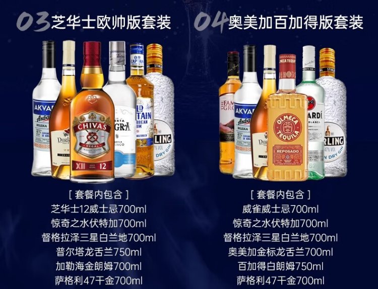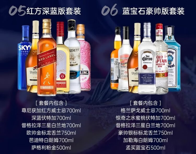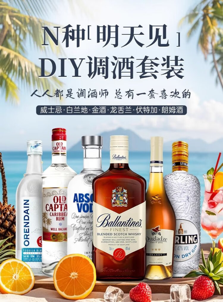欧帅调酒套装 调酒基酒套装全套 蓝宝石金酒伏特加朗姆龙舌兰进口洋酒 绝对版明天见组套(送调酒工具)