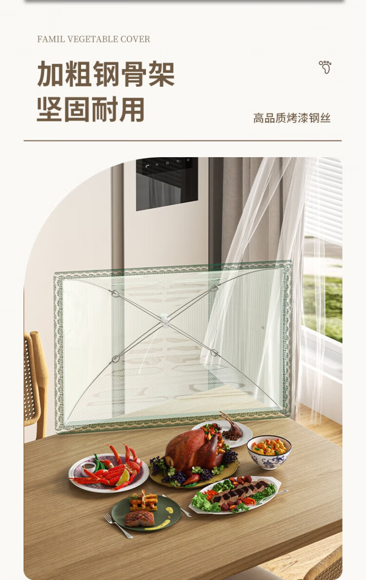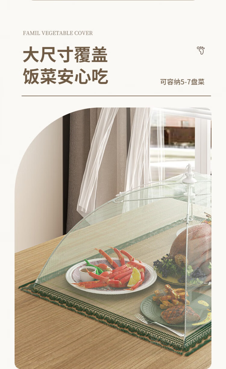 Chengyang Германия импортировала высококачественную крышку для овощей 2025 года, новая модель для домашнего обеденного стола, складная сетчатая крышка для предотвращения мух и остатков еды, круглая 80 см/зеленая/приблизительно 8-12 блюд