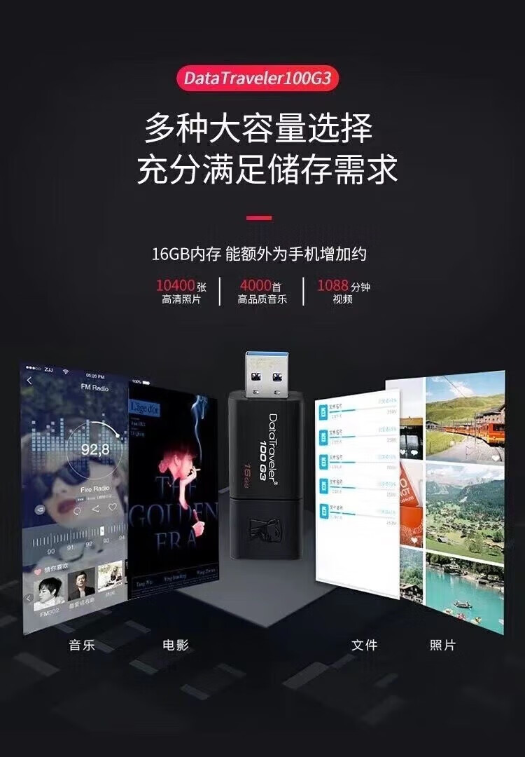 兼容金士顿2.0优盘16g32g64g128gb手机电脑两用车载学生定制U盘 黑色32G