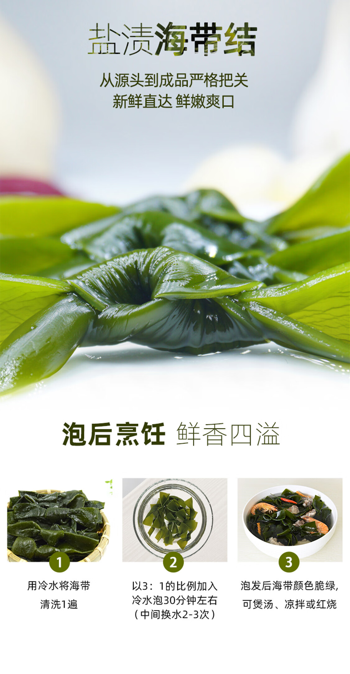 福建霞浦盐渍海带结新鲜特厚昆布无沙高泡发低盐火锅炒菜商用批发 盐渍海带结1包500g