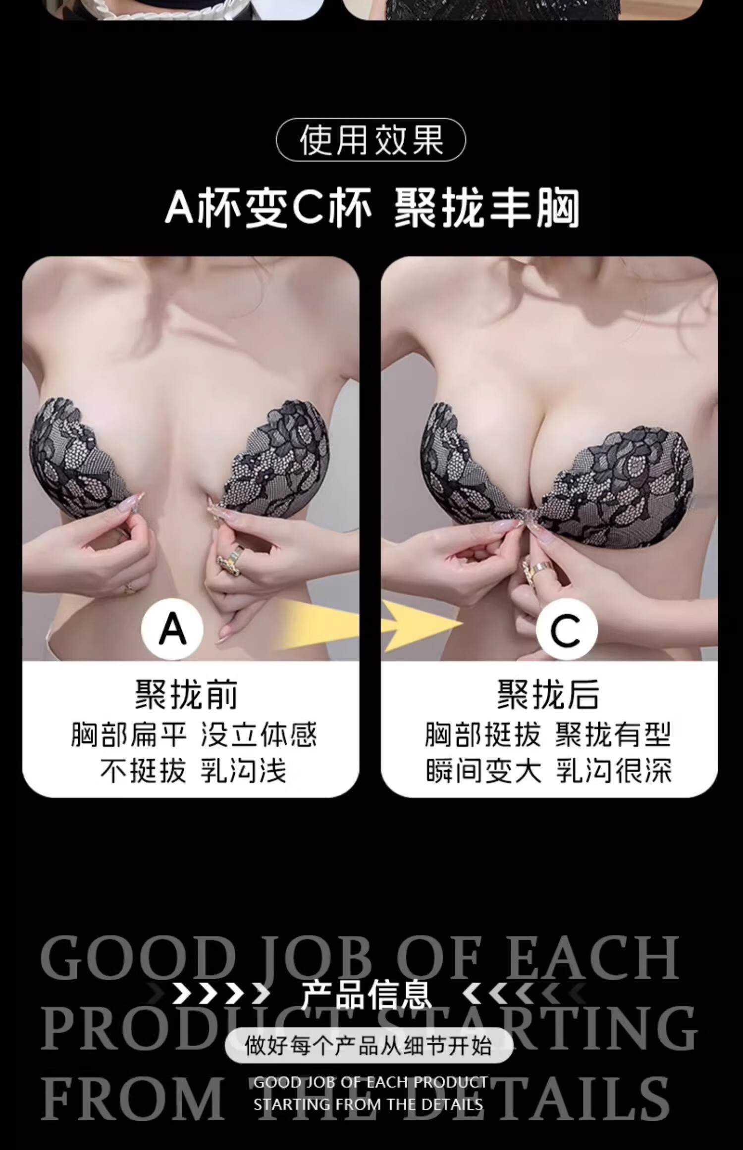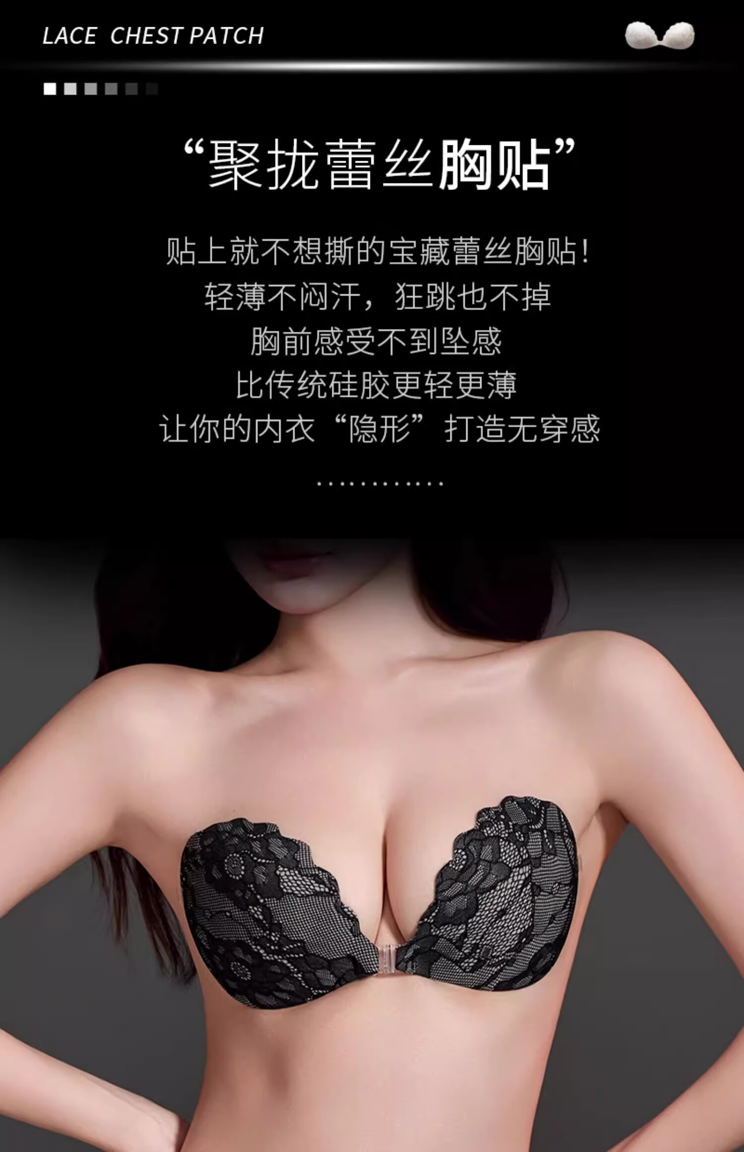 Ni Light Breast Paste Women's Push Up Sexy Invisible Pure Desire Black Lace Free Underwear Small Breast Show Big Silicone Paste Sexy Black Lace*1 Pair Suitable for S (70A/70B/75A/80A)
