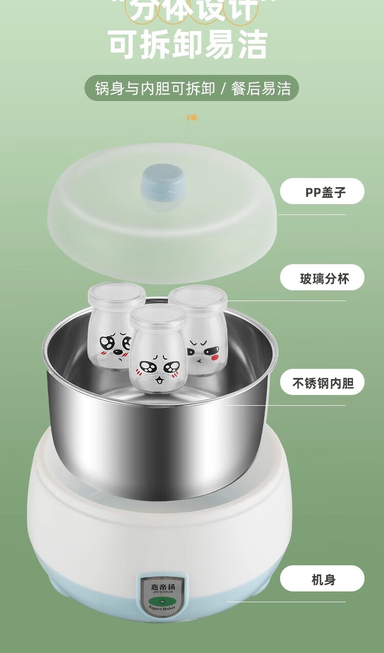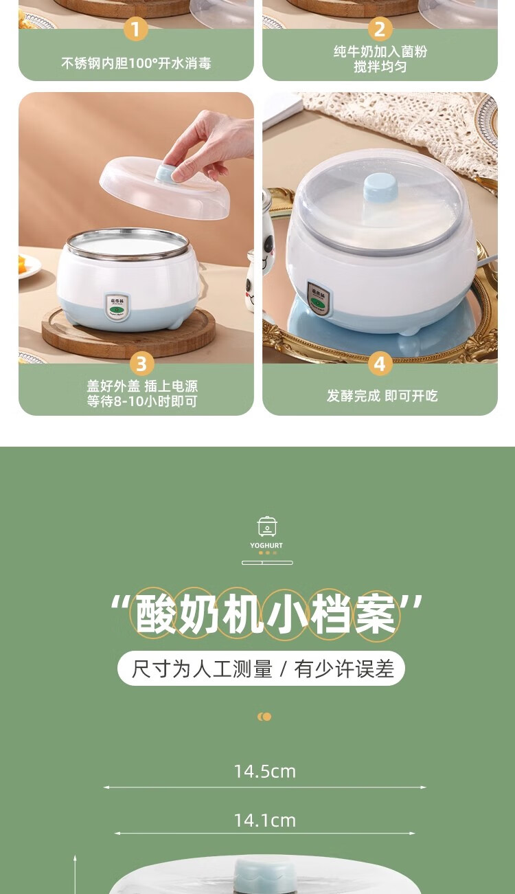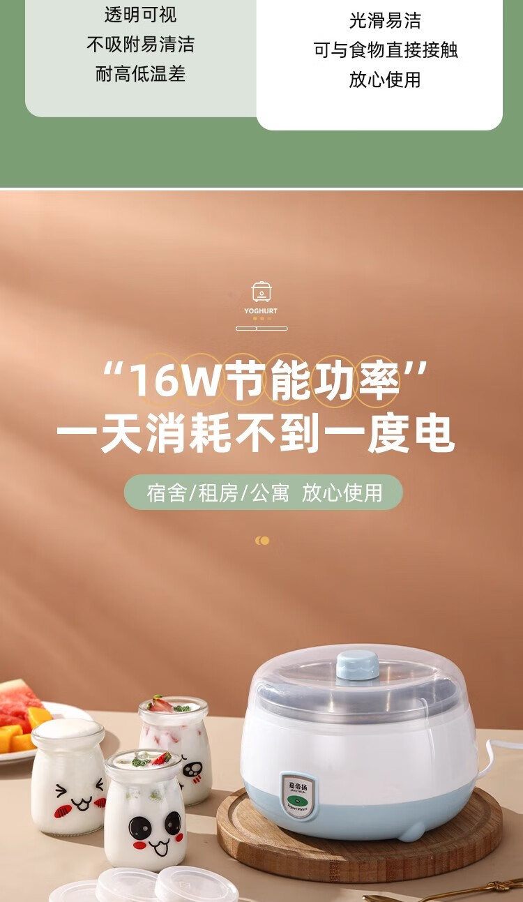 Household yogurt machine multifunctional fully automatic homemade small fermented glass cup natto rice wine fried yogurt machine sunny blue 1L standard sterile powder without cup