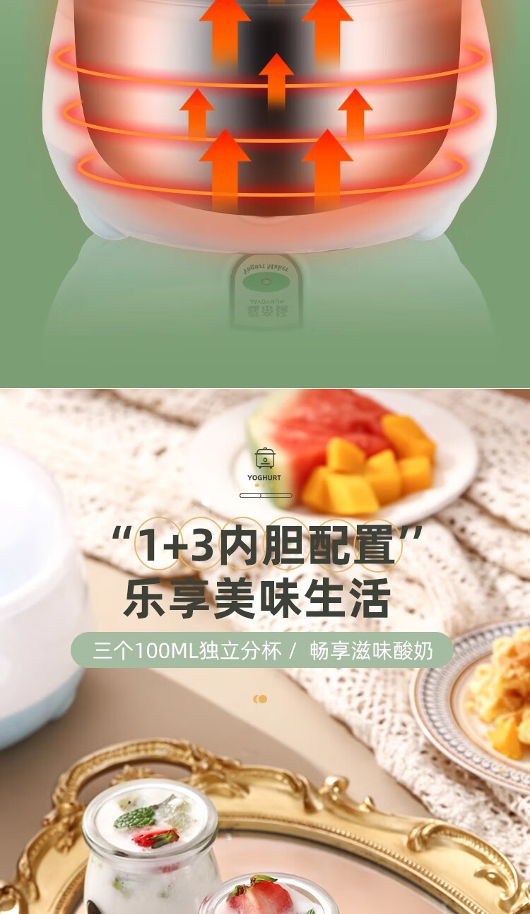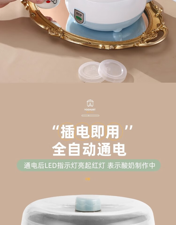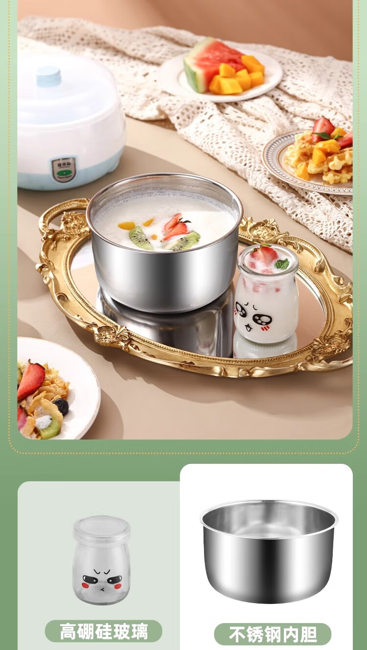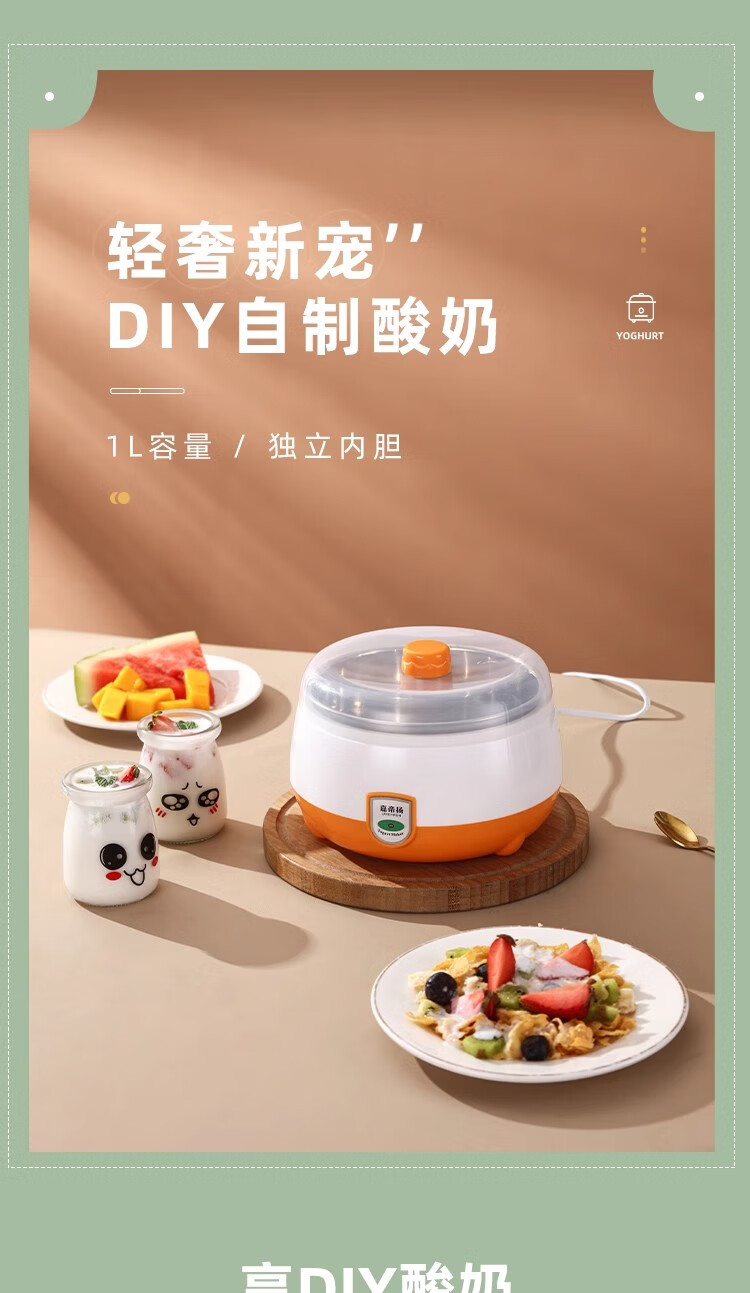 Household yogurt machine multifunctional fully automatic homemade small fermented glass cup natto rice wine fried yogurt machine sunny blue 1L standard sterile powder without cup