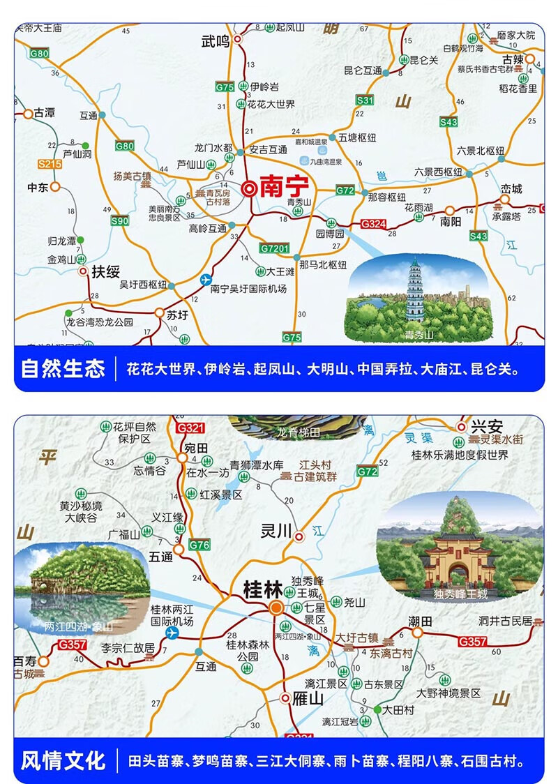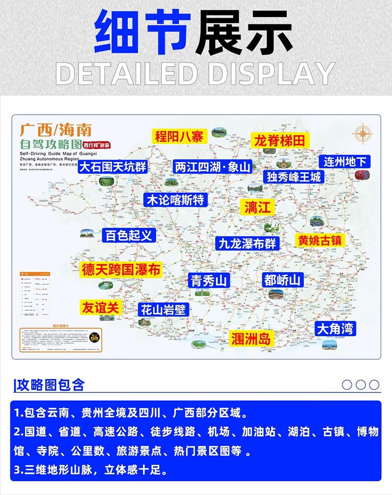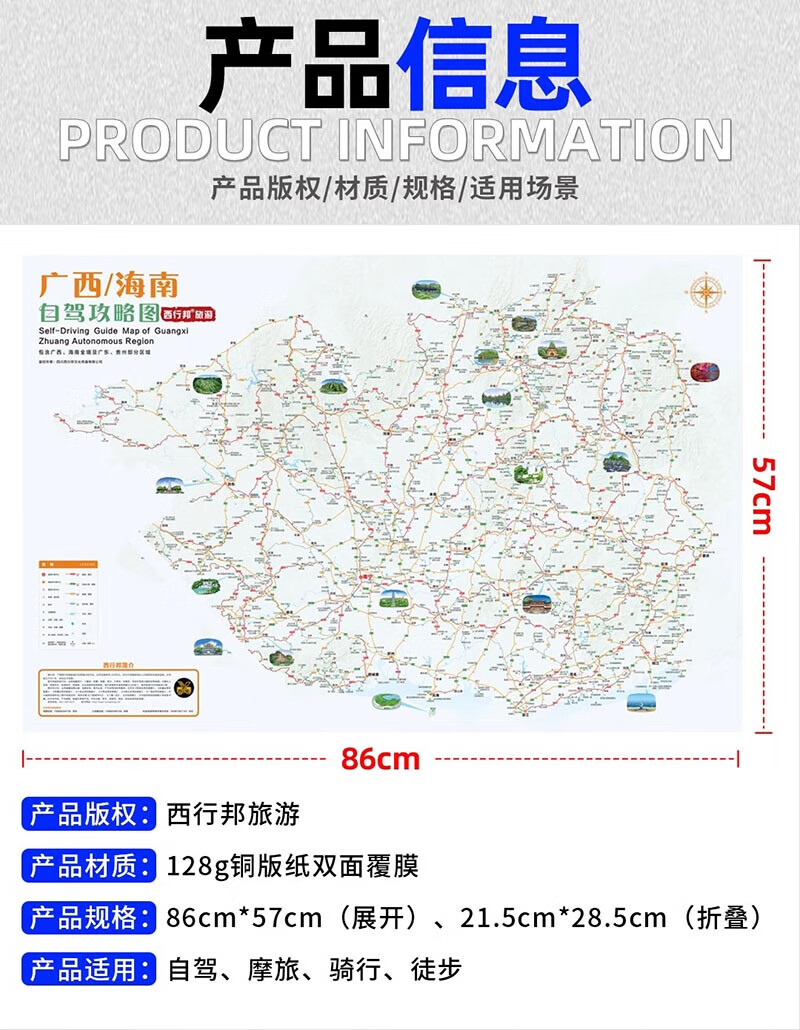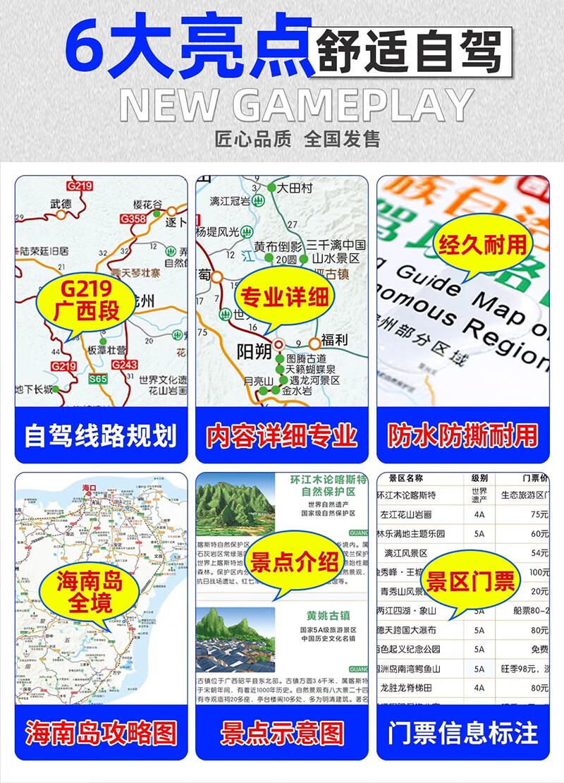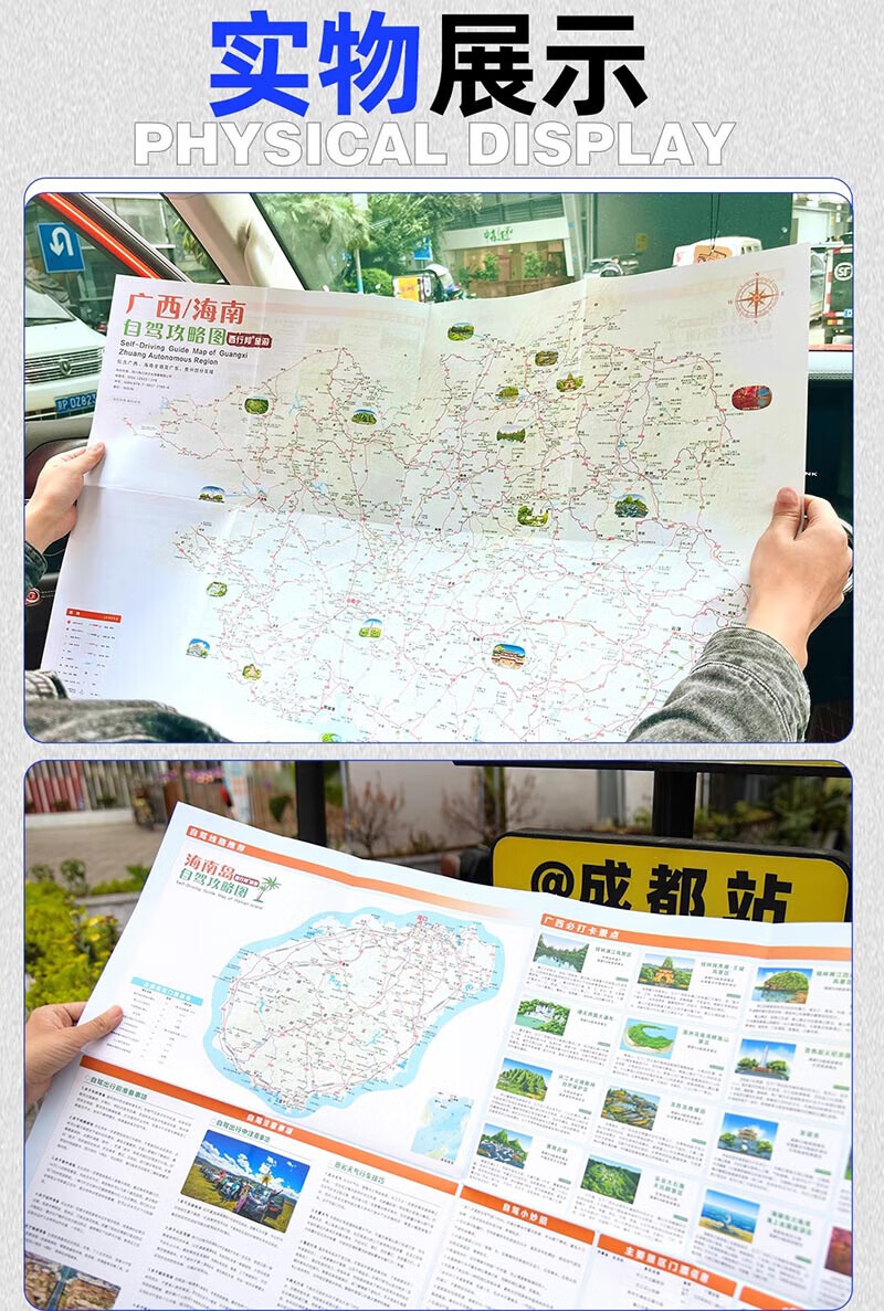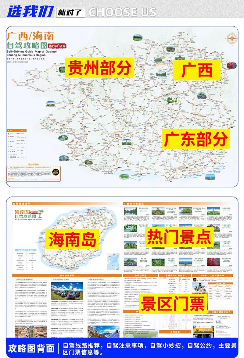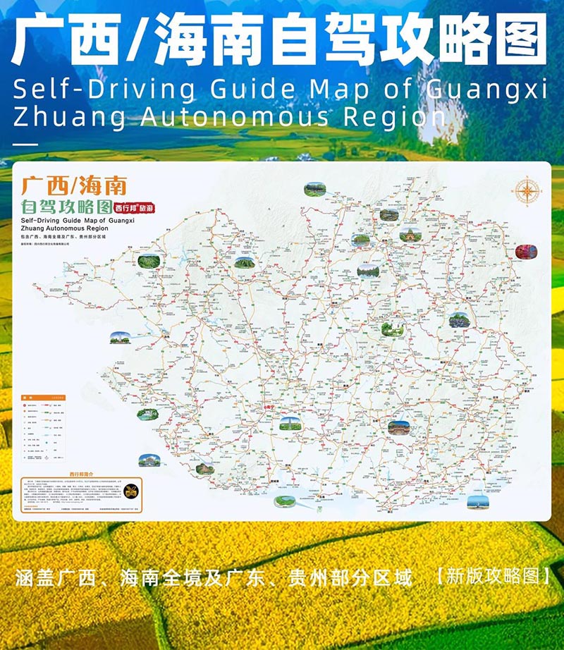 2025版广西海南全境自驾攻略图广东贵州部分区域漓江涠洲岛海南岛自驾游线路双面防水