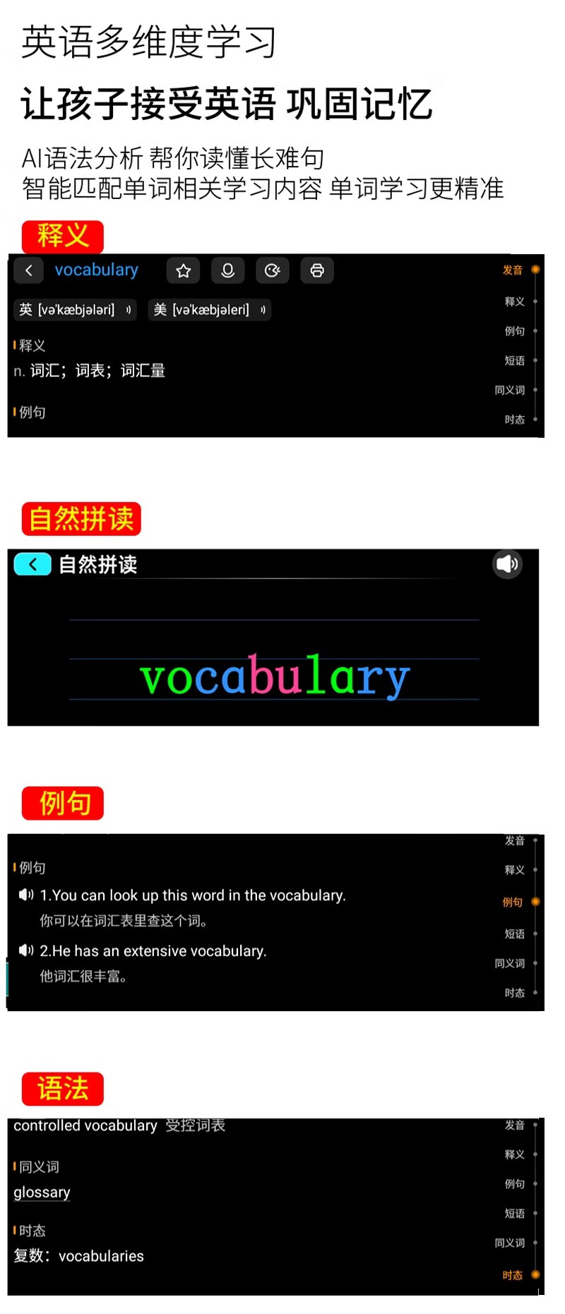 Stylo de dictionnaire Xiao Ai Classmate Lecture de points anglais Xiao Chu Gao Stylo de traduction à balayage multifonctionnel Stylo de mot synchronisé Machine d'écoute Flagship Pro Edition 8G + 259G Écran de 6 pouces nouveau produit complet