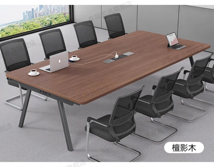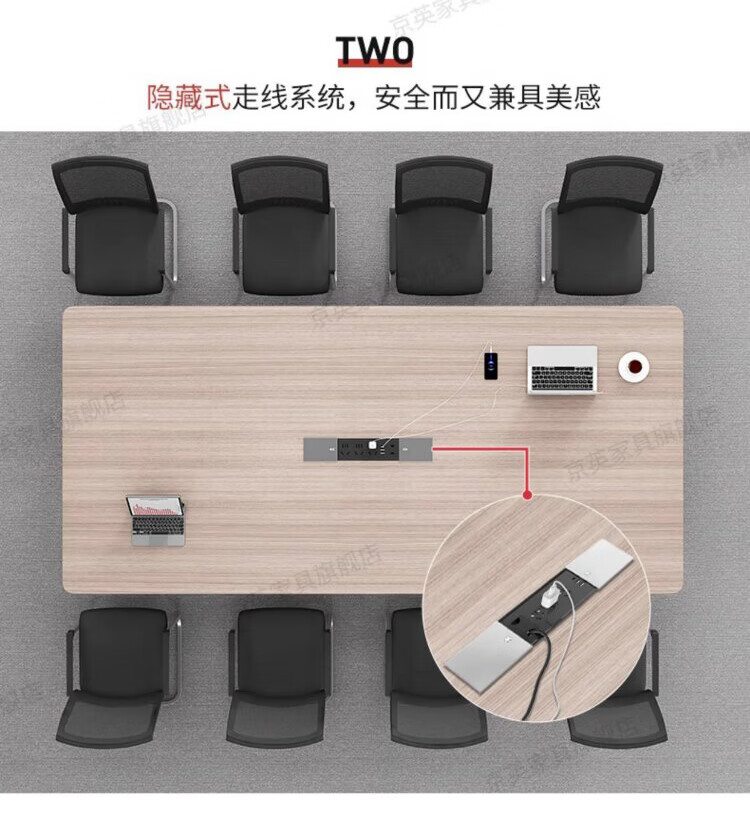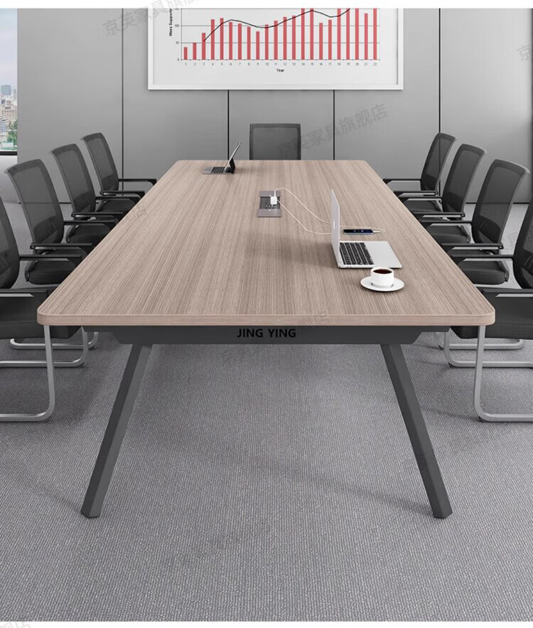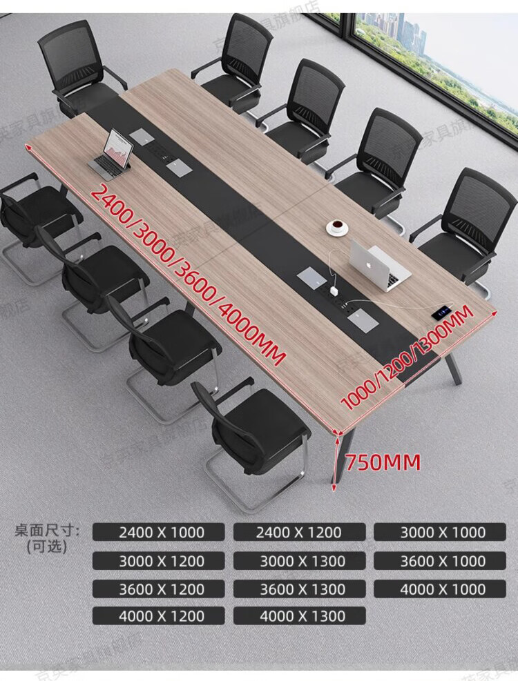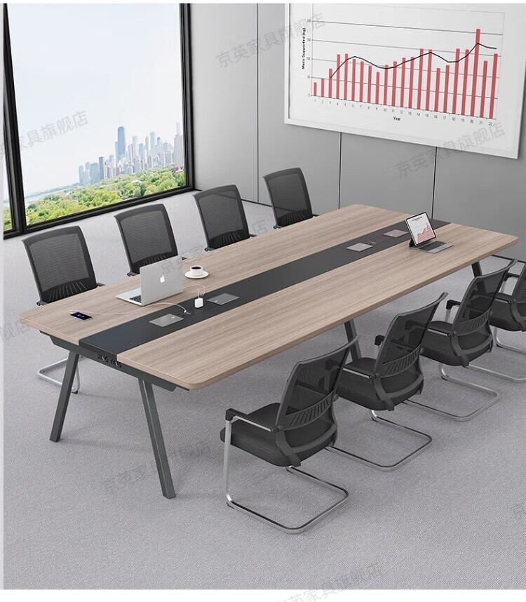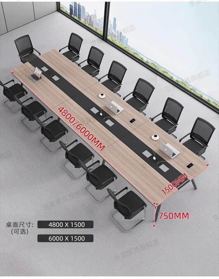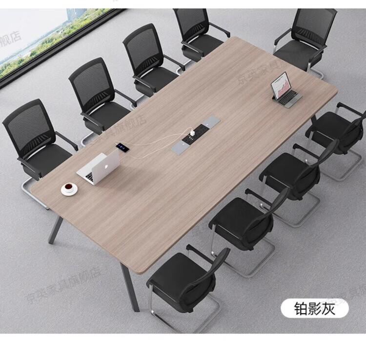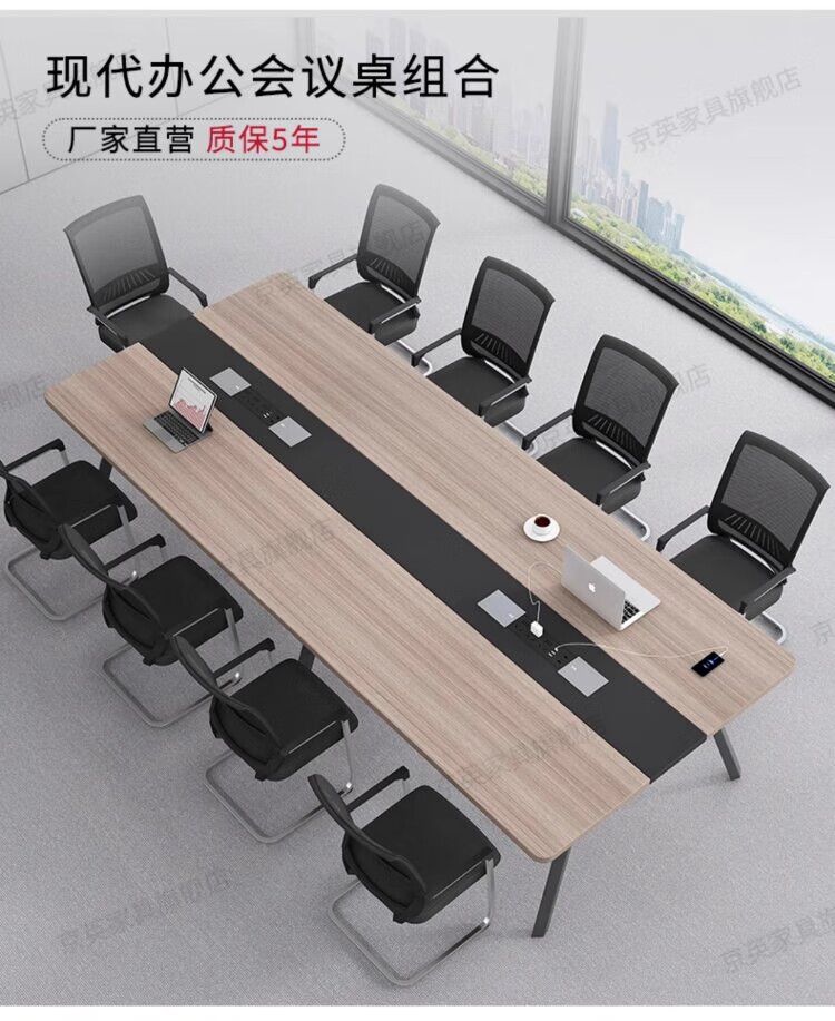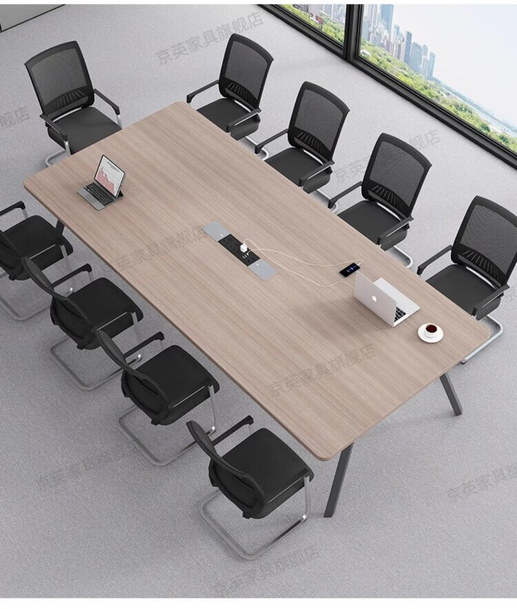 京英实木会议桌长条桌工作台长方形大桌子办公桌洽谈桌会议室桌椅组合 长1.6米*宽1米【升级实木桌面+多媒体线盒】
