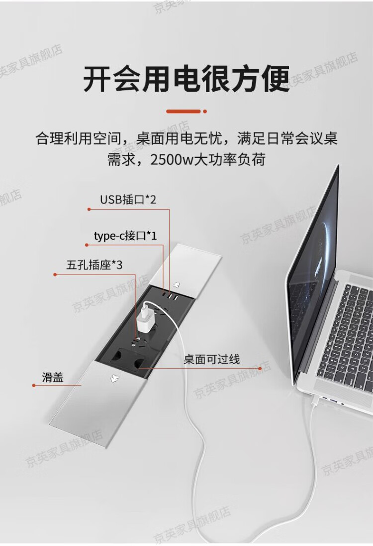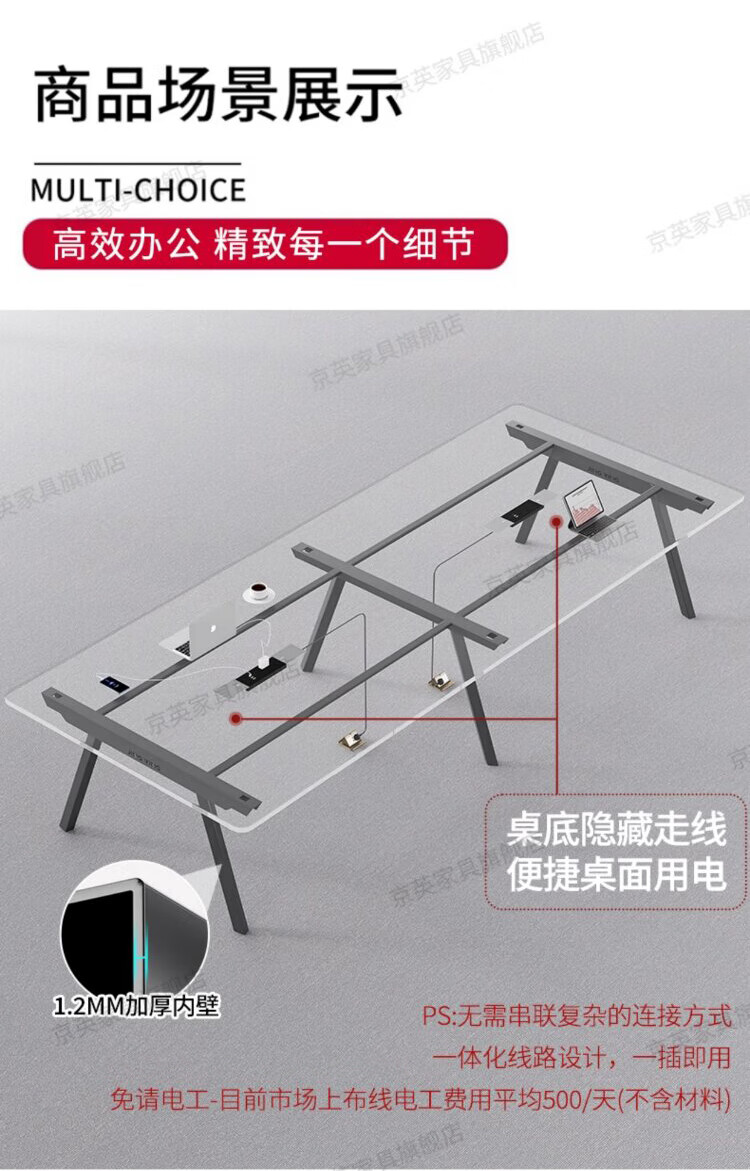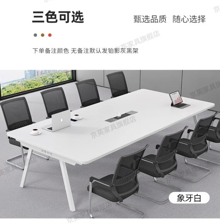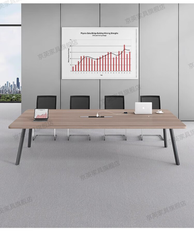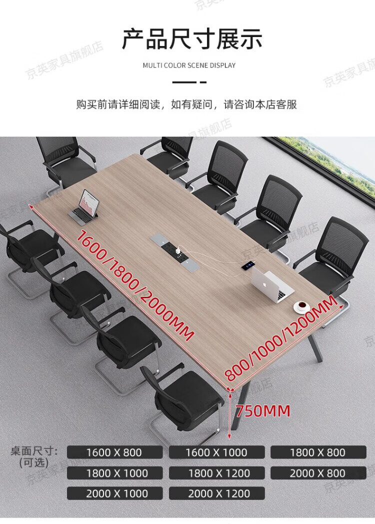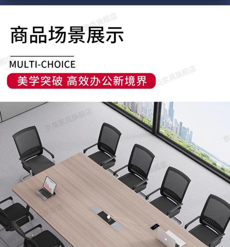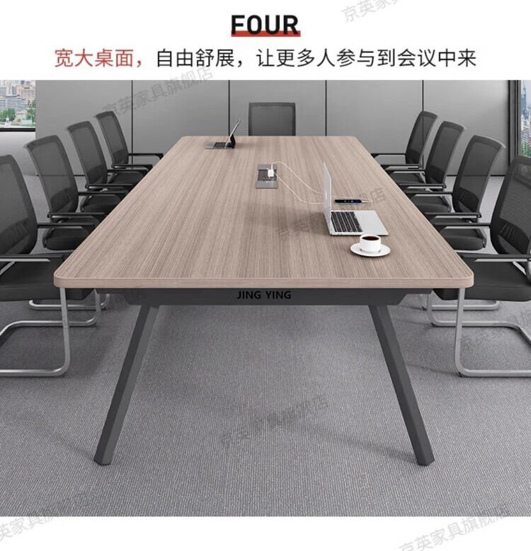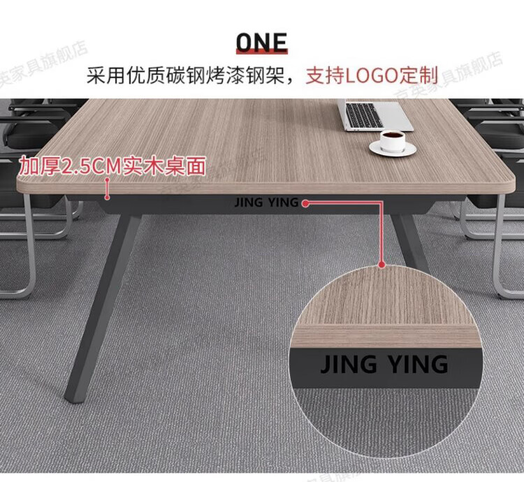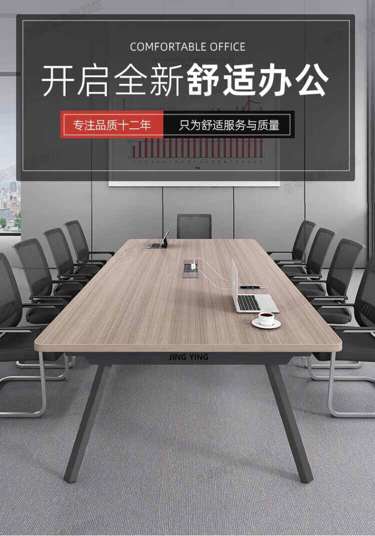 京英实木会议桌长条桌工作台长方形大桌子办公桌洽谈桌会议室桌椅组合 长1.6米*宽1米【升级实木桌面+多媒体线盒】