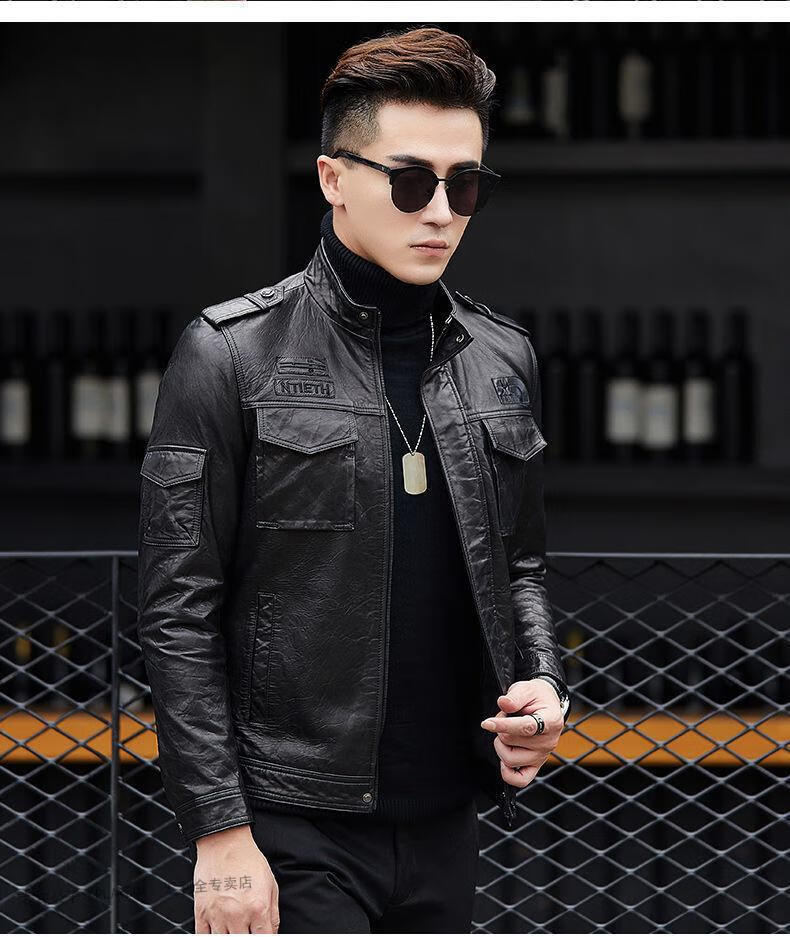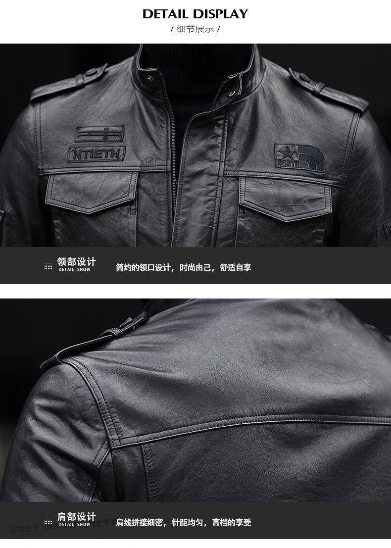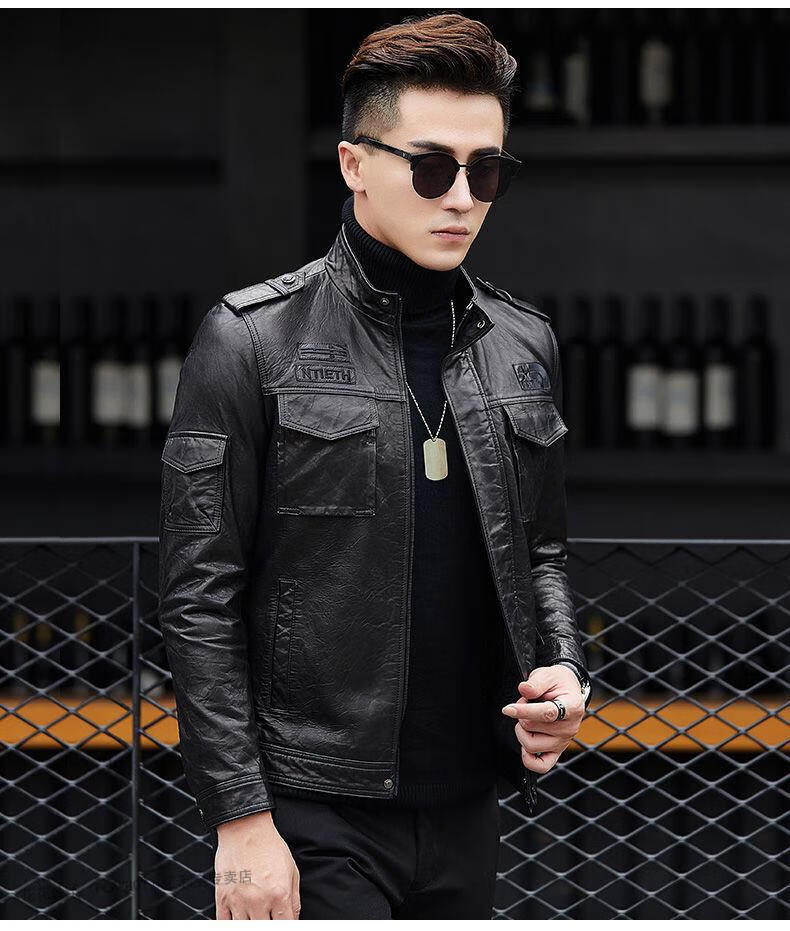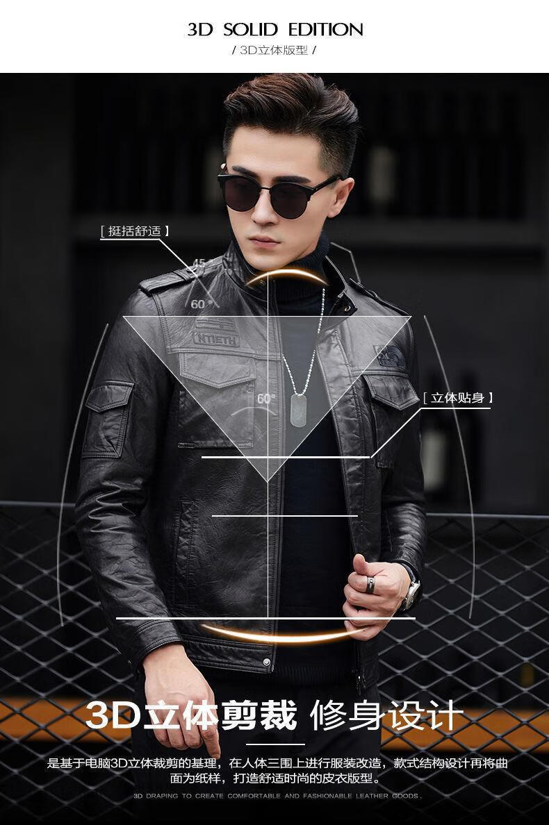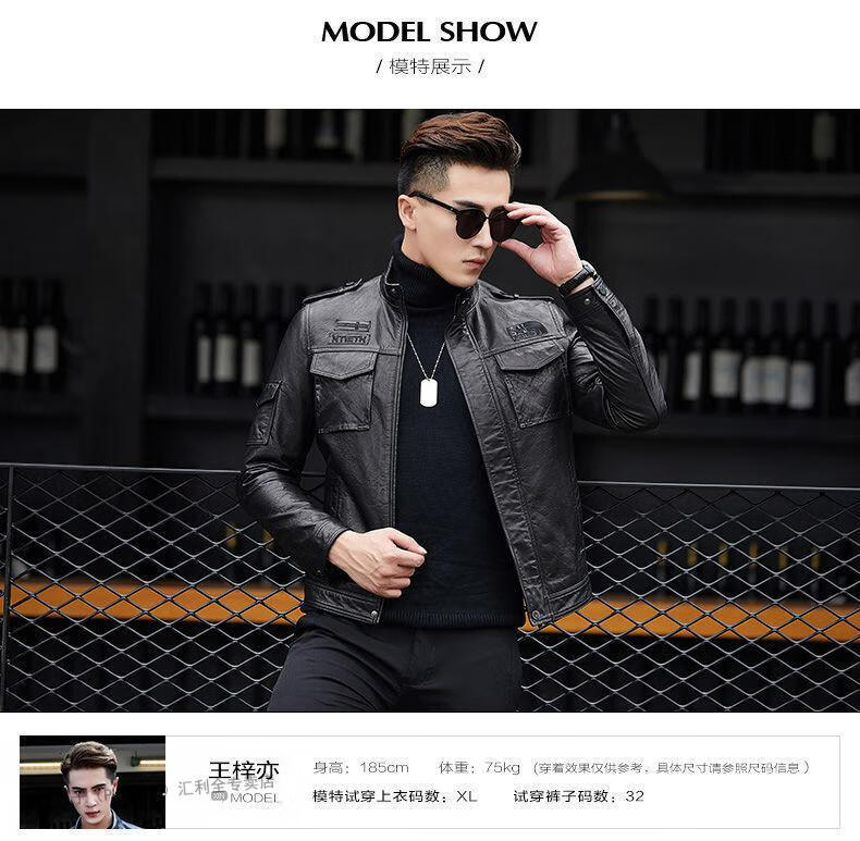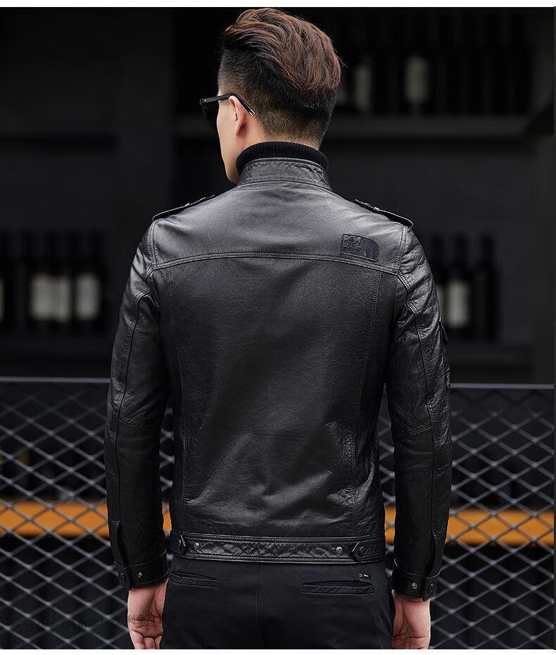 花花公子(PLAYBOY)2025秋冬新款真皮质感皮衣男机车短款修身韩版立领皮夹克休闲外套 黑色- 加绒 L 170码-115-125斤
