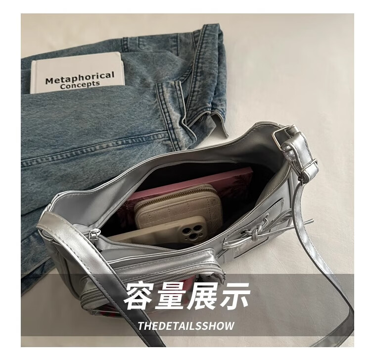 韫舜痛包小众设计感小食量单肩斜挎女包 小食量单肩斜挎痛包【银色】 30*20*10cm
