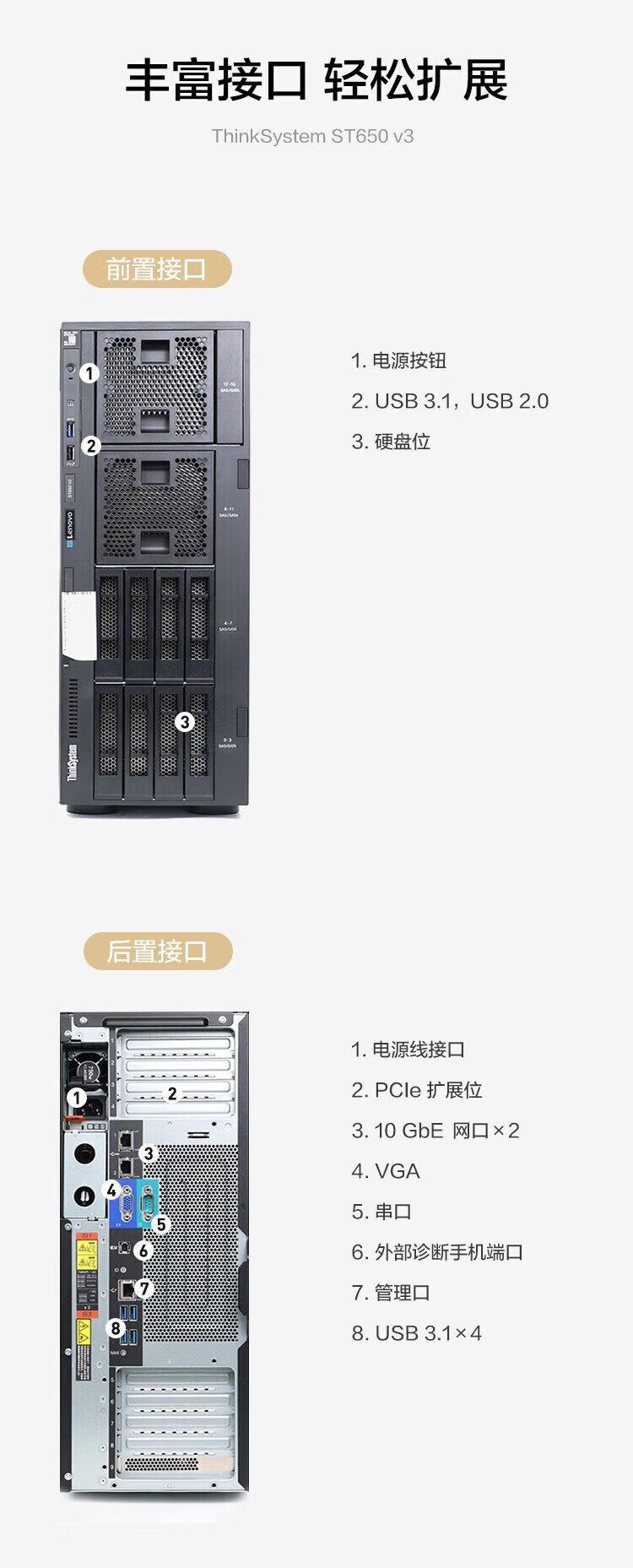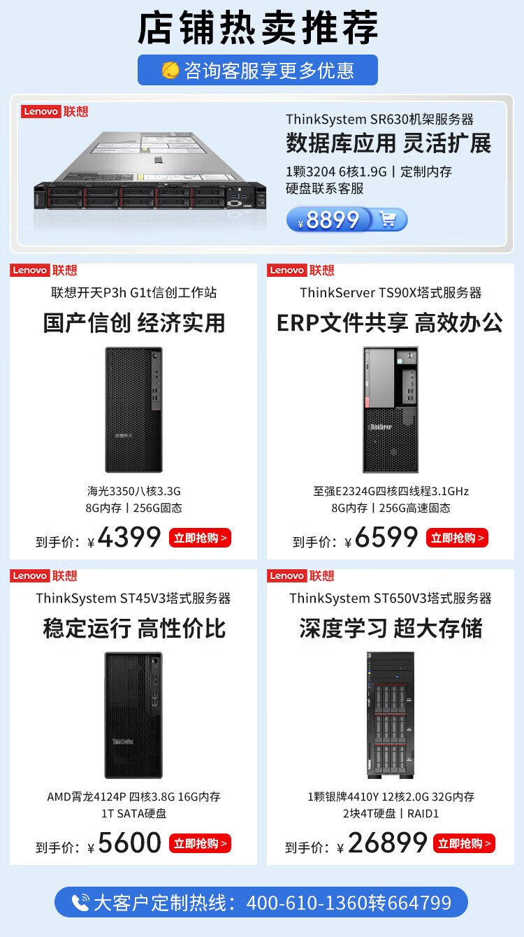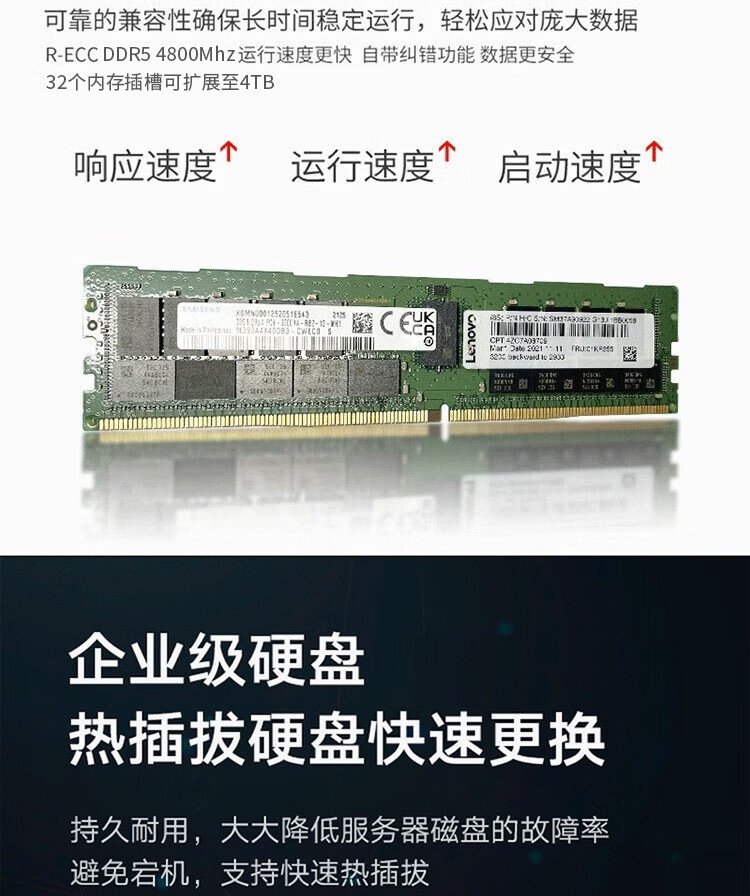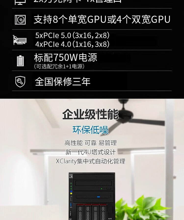 Lenovo (Lenovo) ThinkSystem ST650V2 ST650V3 tower server host GPU computing virtualization deepseek local deployment all-in-one computer ST650V3 2 4410Y 24 cores丨2.0G 128G丨960G solid state + 3 blocks 8T丨RTX4090