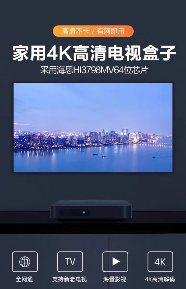 优选华为芯电视盒子高清智能无线WiFi投屏网络机顶盒免费看电视机顶盒 【蓝牙高清版】+永久免费会员