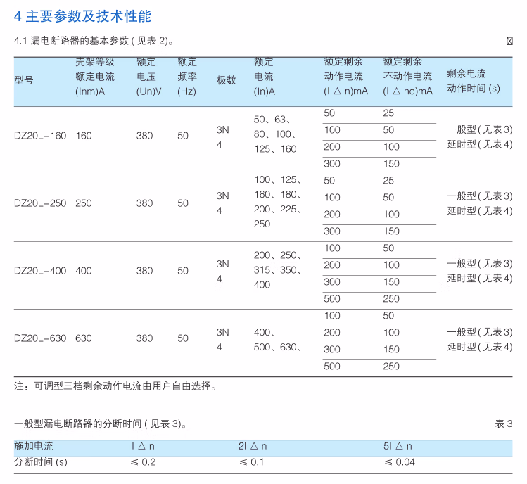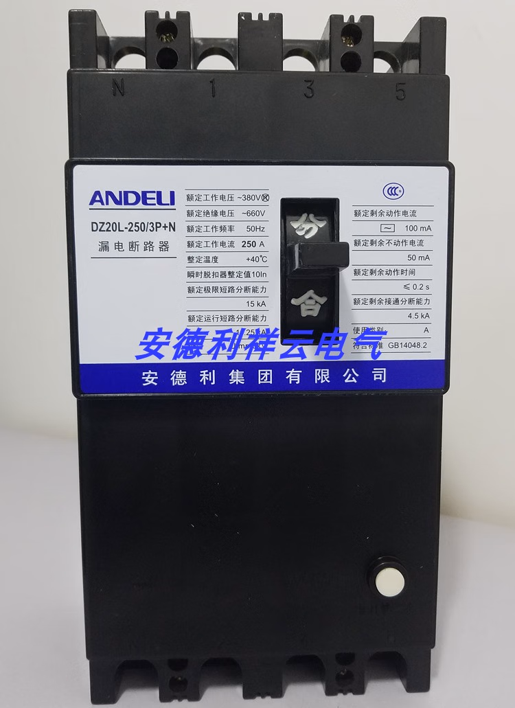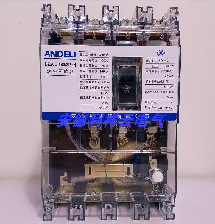 ANDELI leakage circuit breaker DZ20L plastic case leakage protection household air protection switch 3P+N 100A