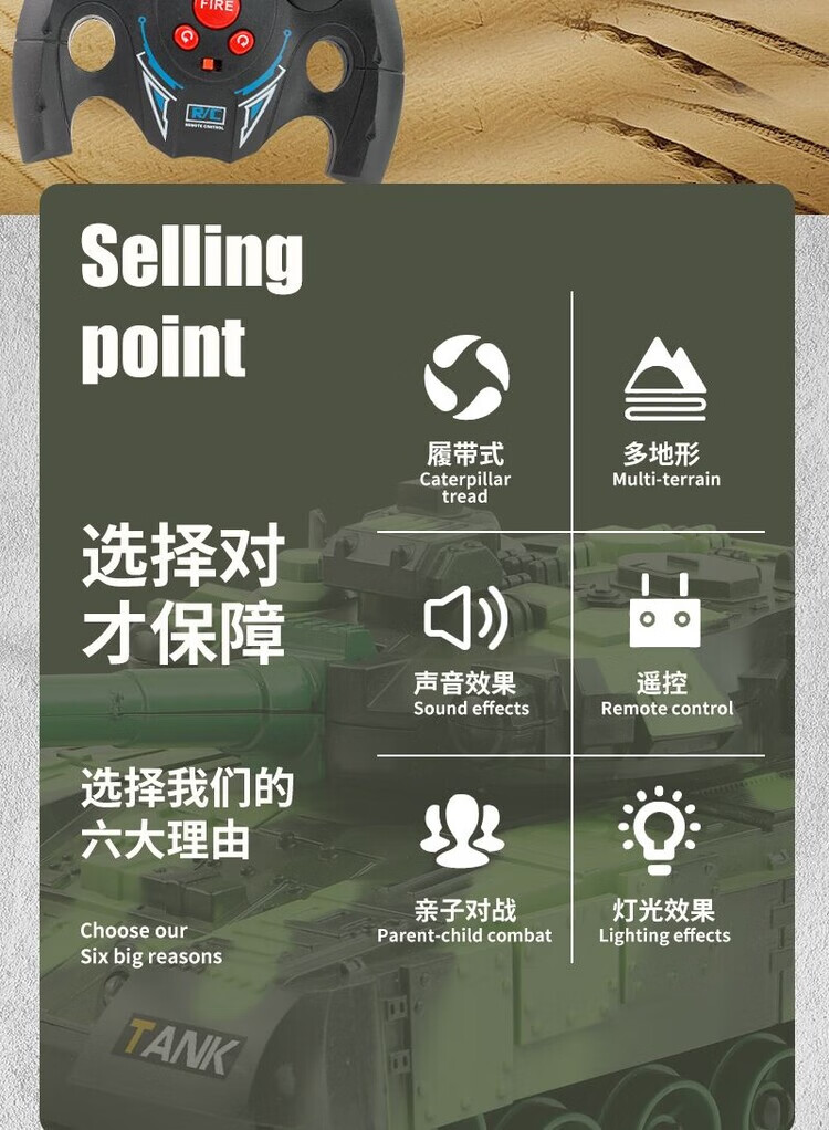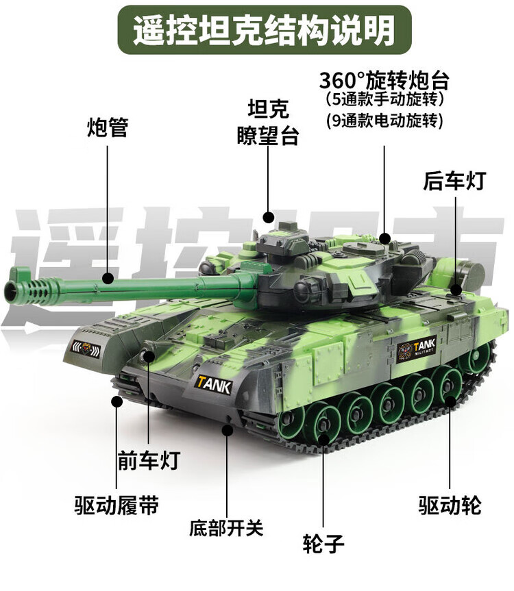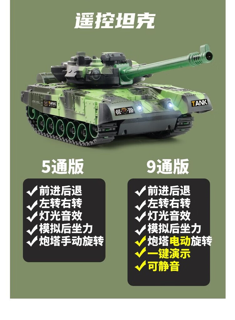 梵科赛儿童遥控车坦克玩具遥控汽车军事模型军绿色电动装甲车履带式男孩 军绿履带行驶【5通】灯光 续航版【一组充电电池+充电线】