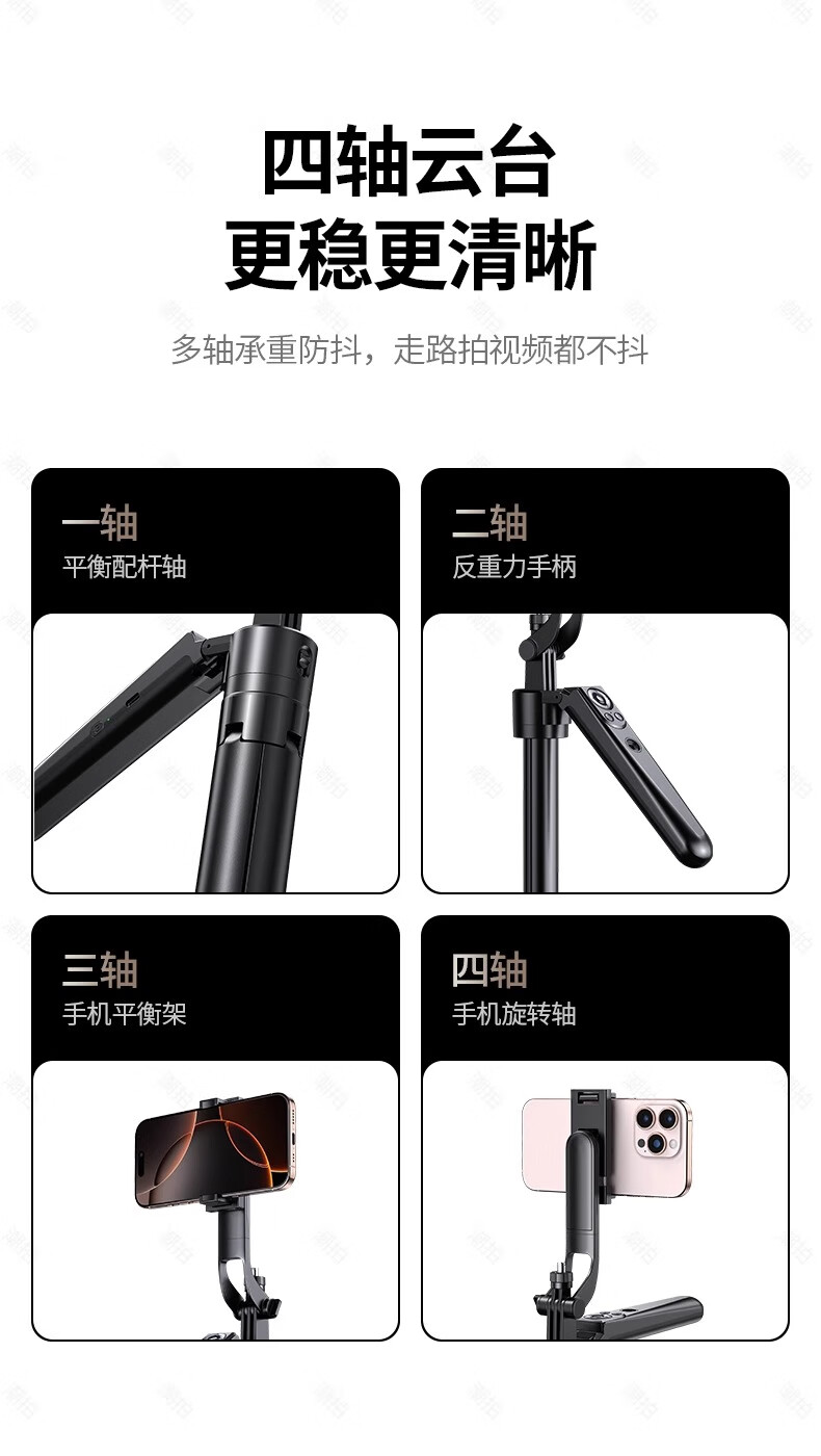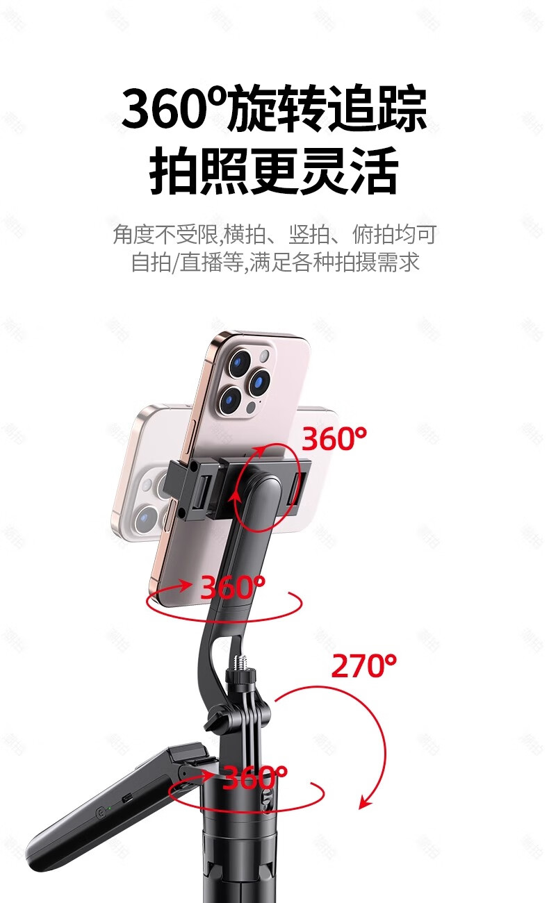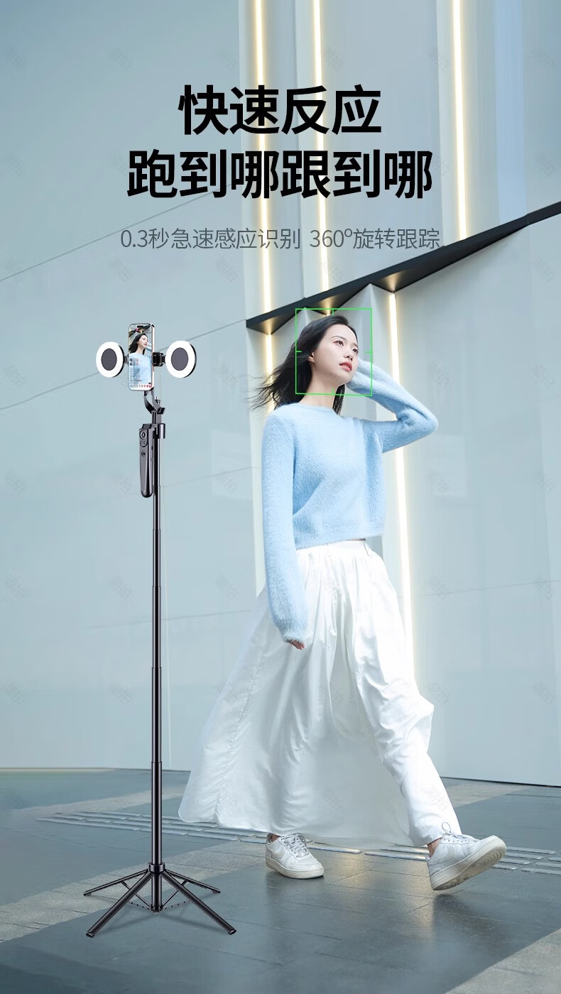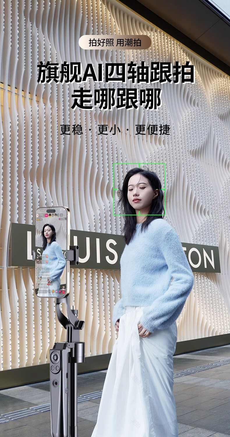 潮拍【智能AI跟拍】云台跟拍神器自拍杆360度旋转全自动人脸追踪防抖便携式手机拍摄直播支架三四脚架 【尊享版】AI智能人脸跟拍+蓝牙遥控 【1.8米】赠送收纳袋丨免APP丨无延迟丨防抖四轴