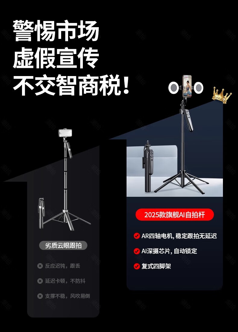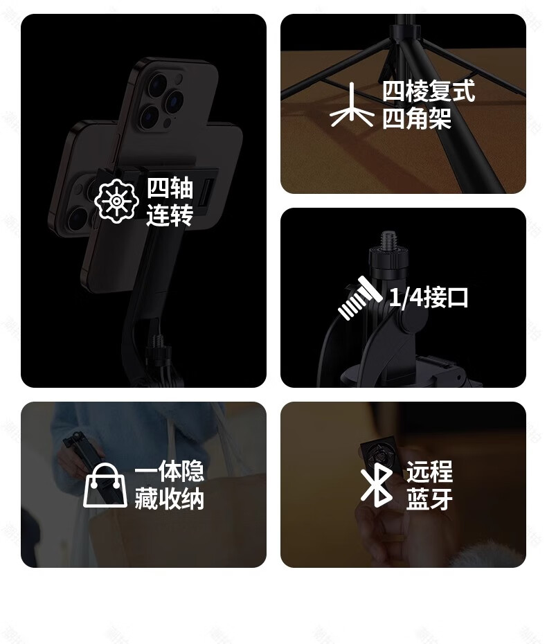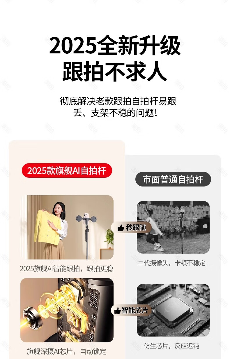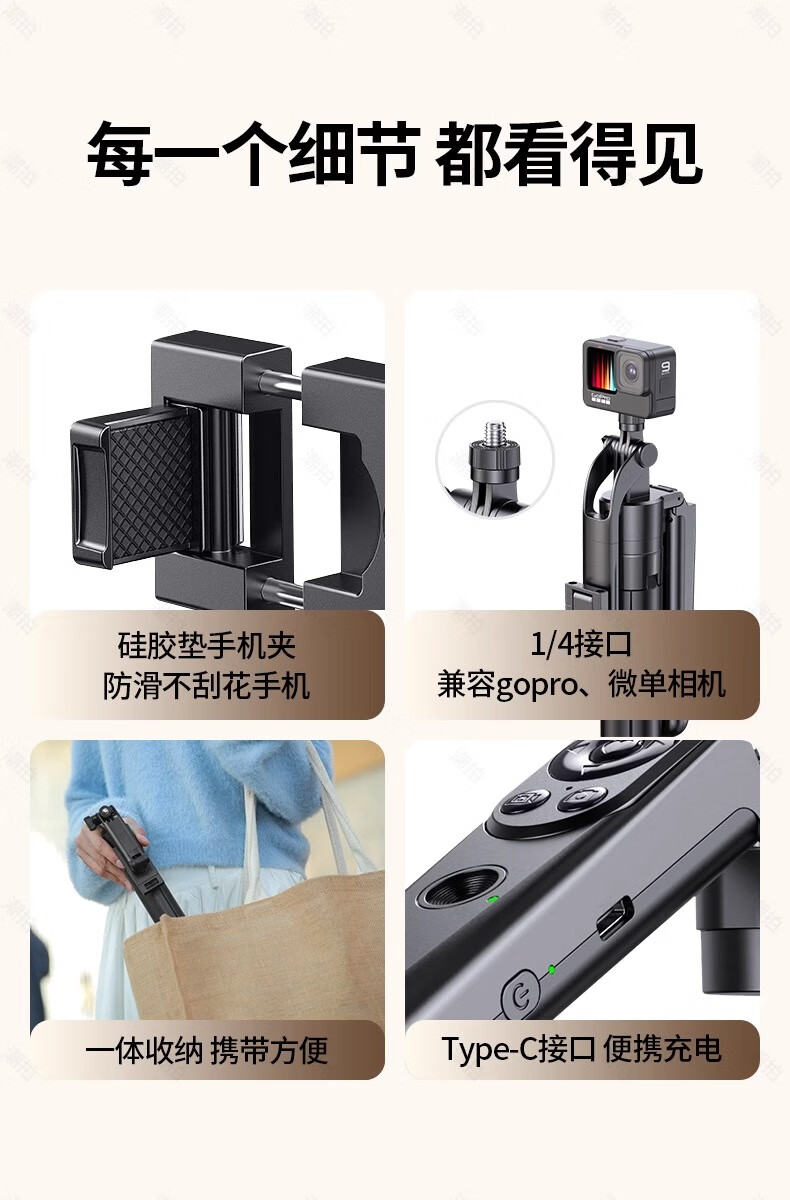 潮拍【智能AI跟拍】云台跟拍神器自拍杆360度旋转全自动人脸追踪防抖便携式手机拍摄直播支架三四脚架 【尊享版】AI智能人脸跟拍+蓝牙遥控 【1.8米】赠送收纳袋丨免APP丨无延迟丨防抖四轴