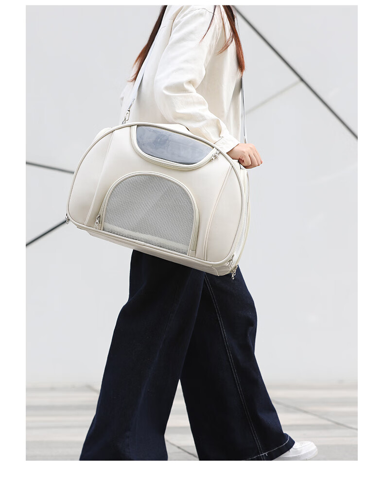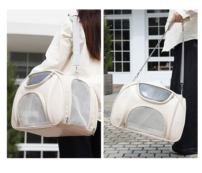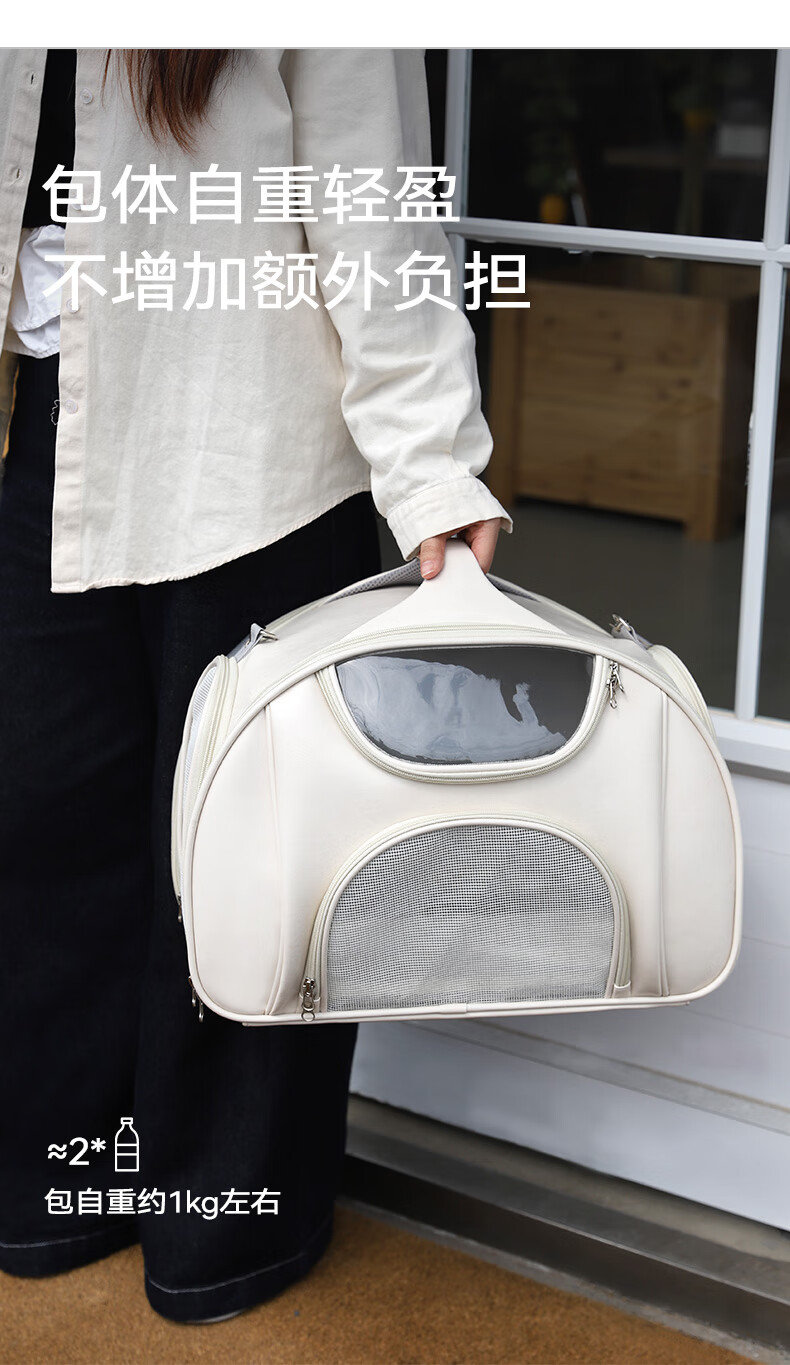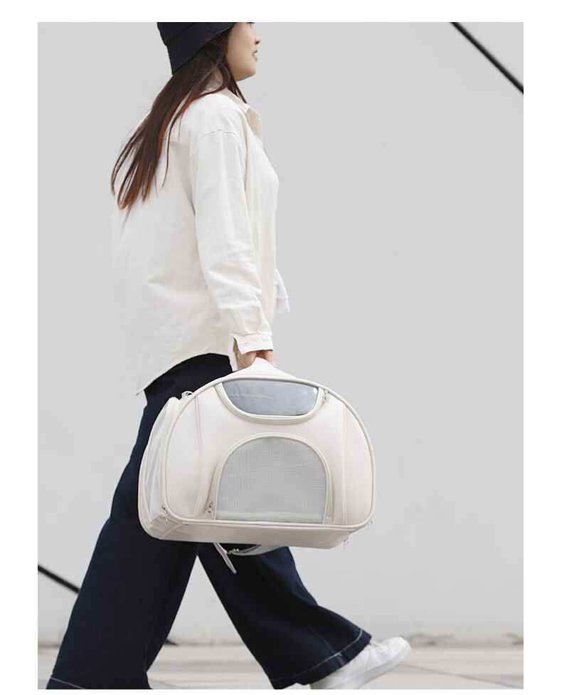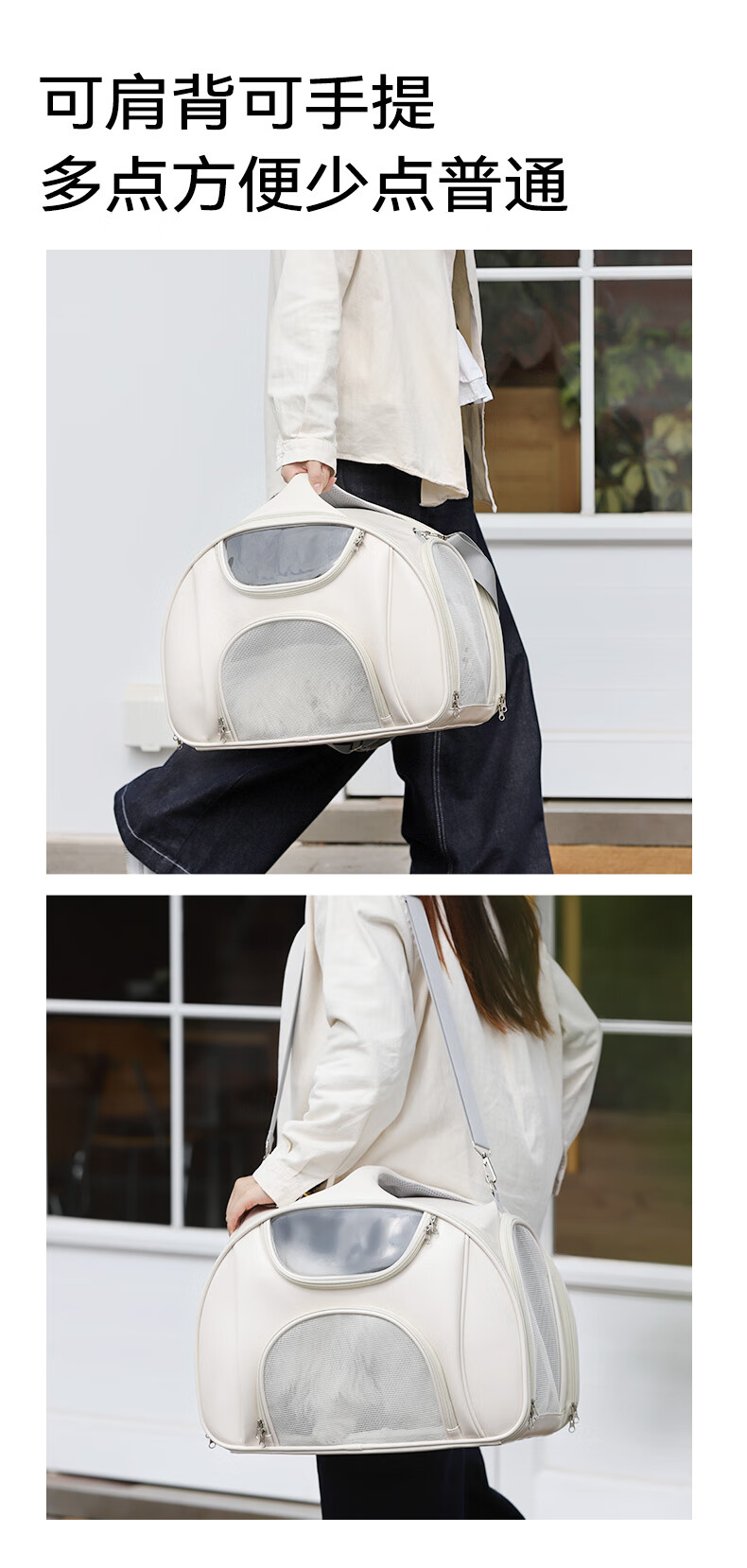 洽苒日本宠物外出包便携猫猫狗狗背包大容量轻便宠物兔子小狗出门 透气单肩拎包(米色) 【可斜挎/单肩/手提】 【推荐20斤内猫/10斤内狗】