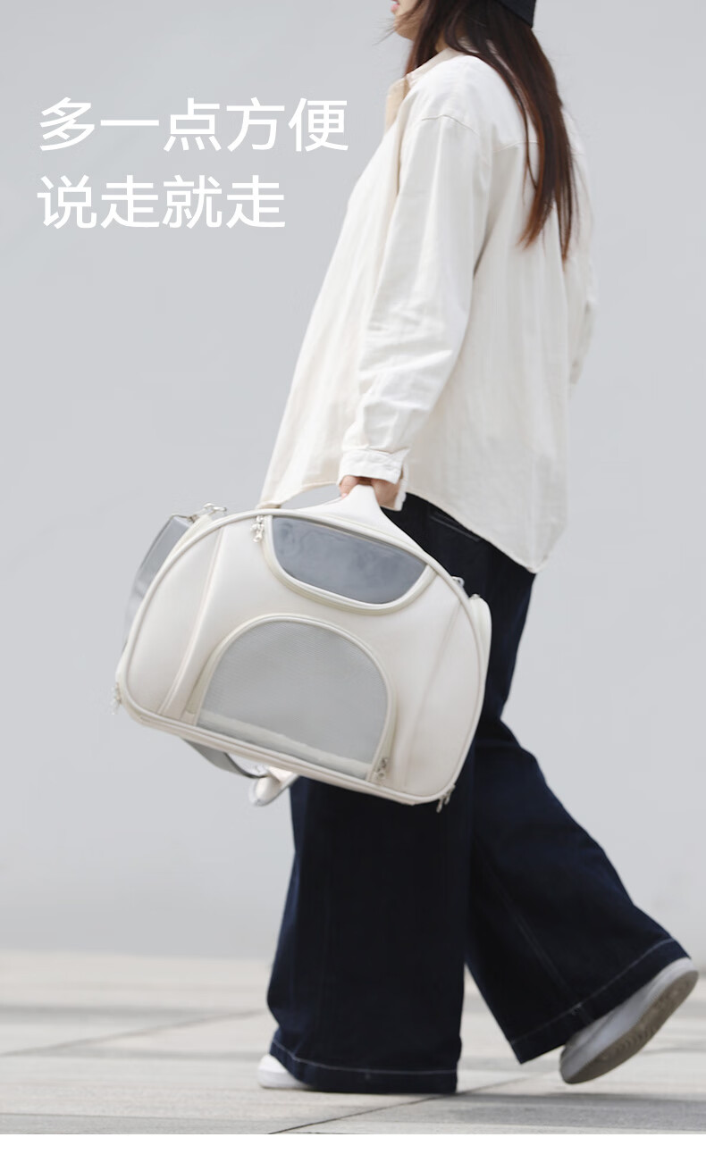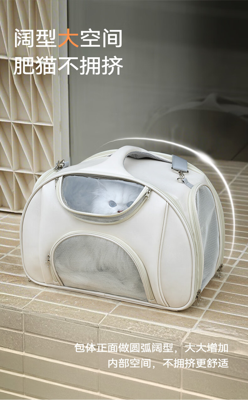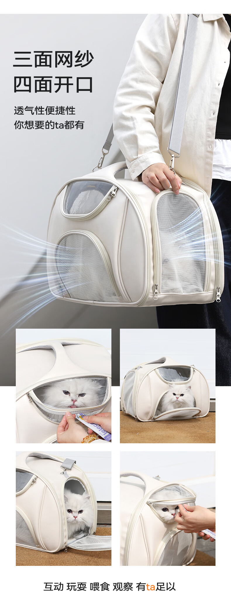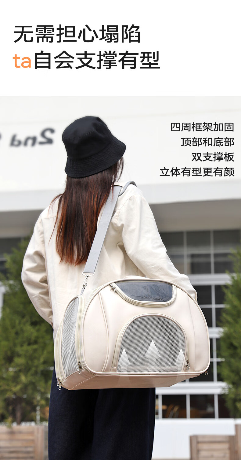 洽苒日本宠物外出包便携猫猫狗狗背包大容量轻便宠物兔子小狗出门 透气单肩拎包(米色) 【可斜挎/单肩/手提】 【推荐20斤内猫/10斤内狗】
