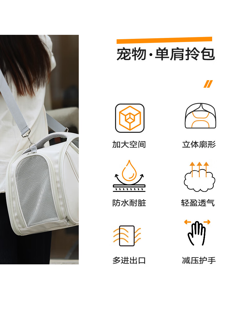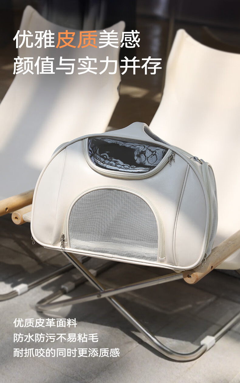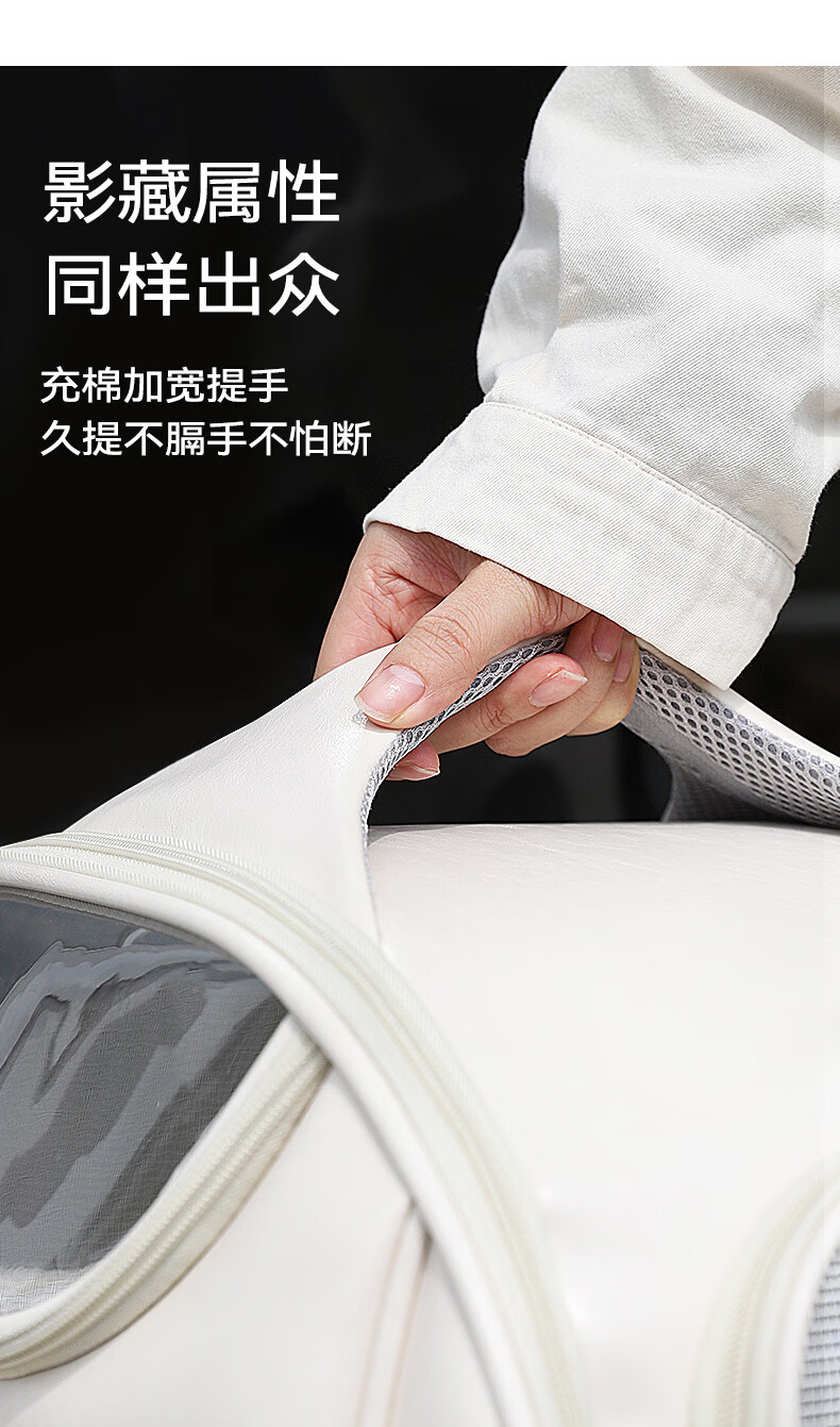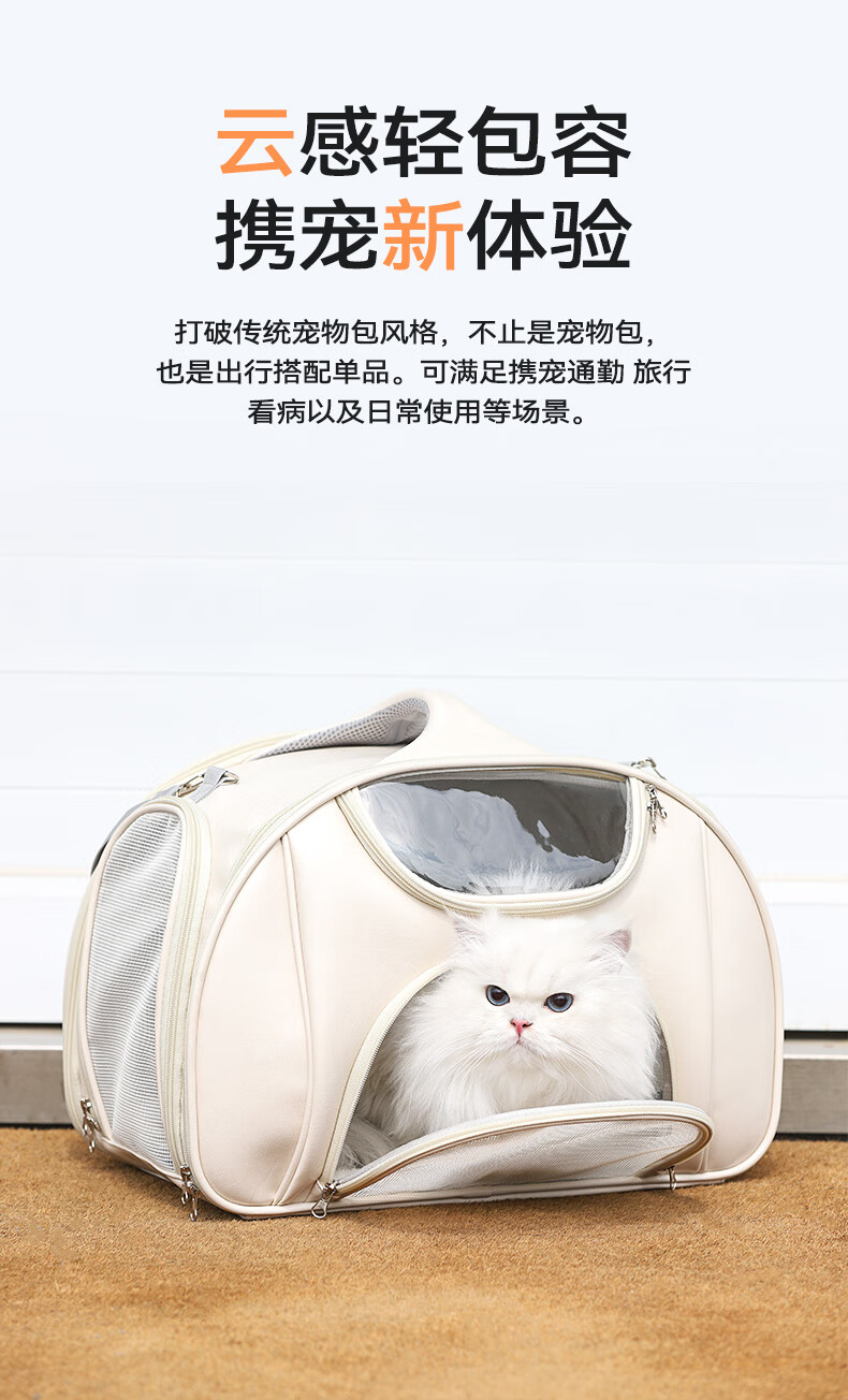 洽苒日本宠物外出包便携猫猫狗狗背包大容量轻便宠物兔子小狗出门 透气单肩拎包(米色) 【可斜挎/单肩/手提】 【推荐20斤内猫/10斤内狗】