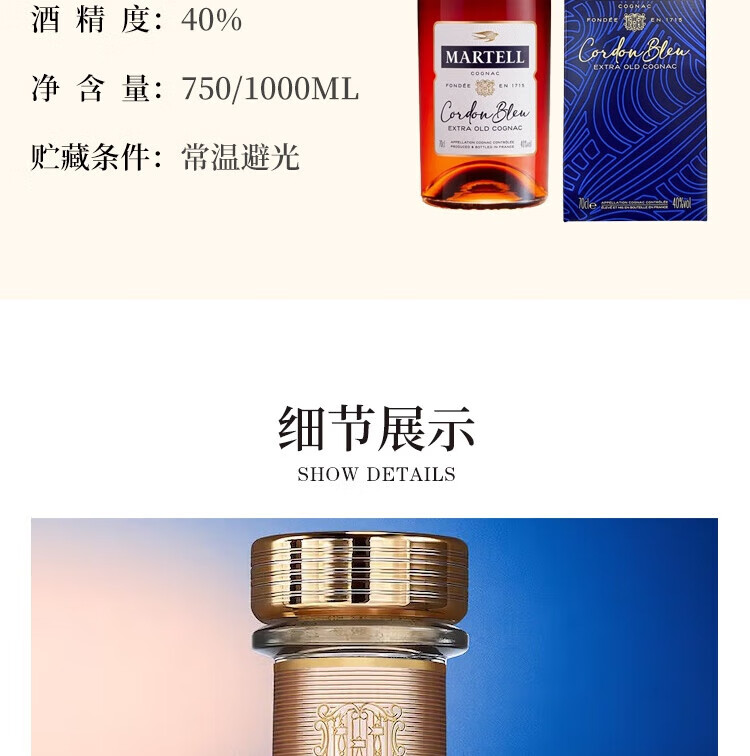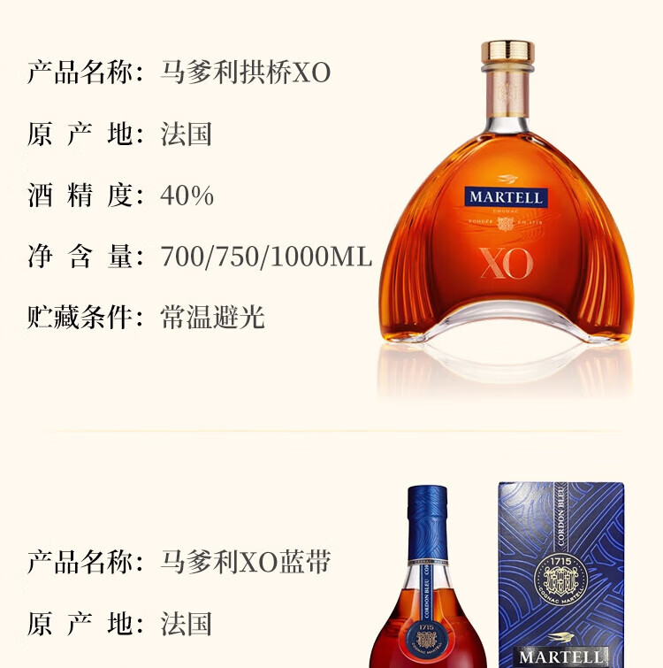 Martell XO Arch Bridge Cordon Bleu vino extranjero brandy importado coñac regalo Martell Cordon Bleu 700mL con caja