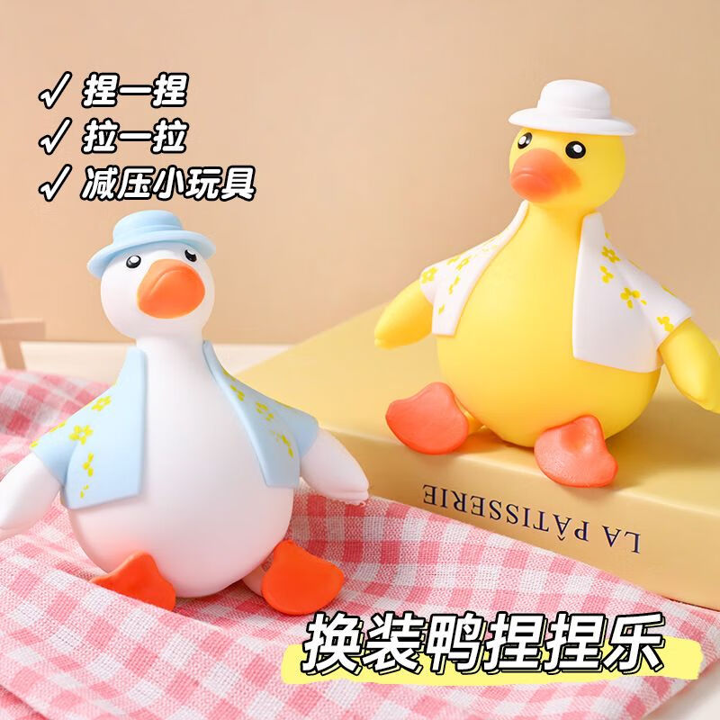 贾恩斯捏捏乐鸭子解压神器冲鸭沙雕鸭儿童成人玩具儿童节小礼物减压有趣 换装捏捏鸭2只【白色+黄色】