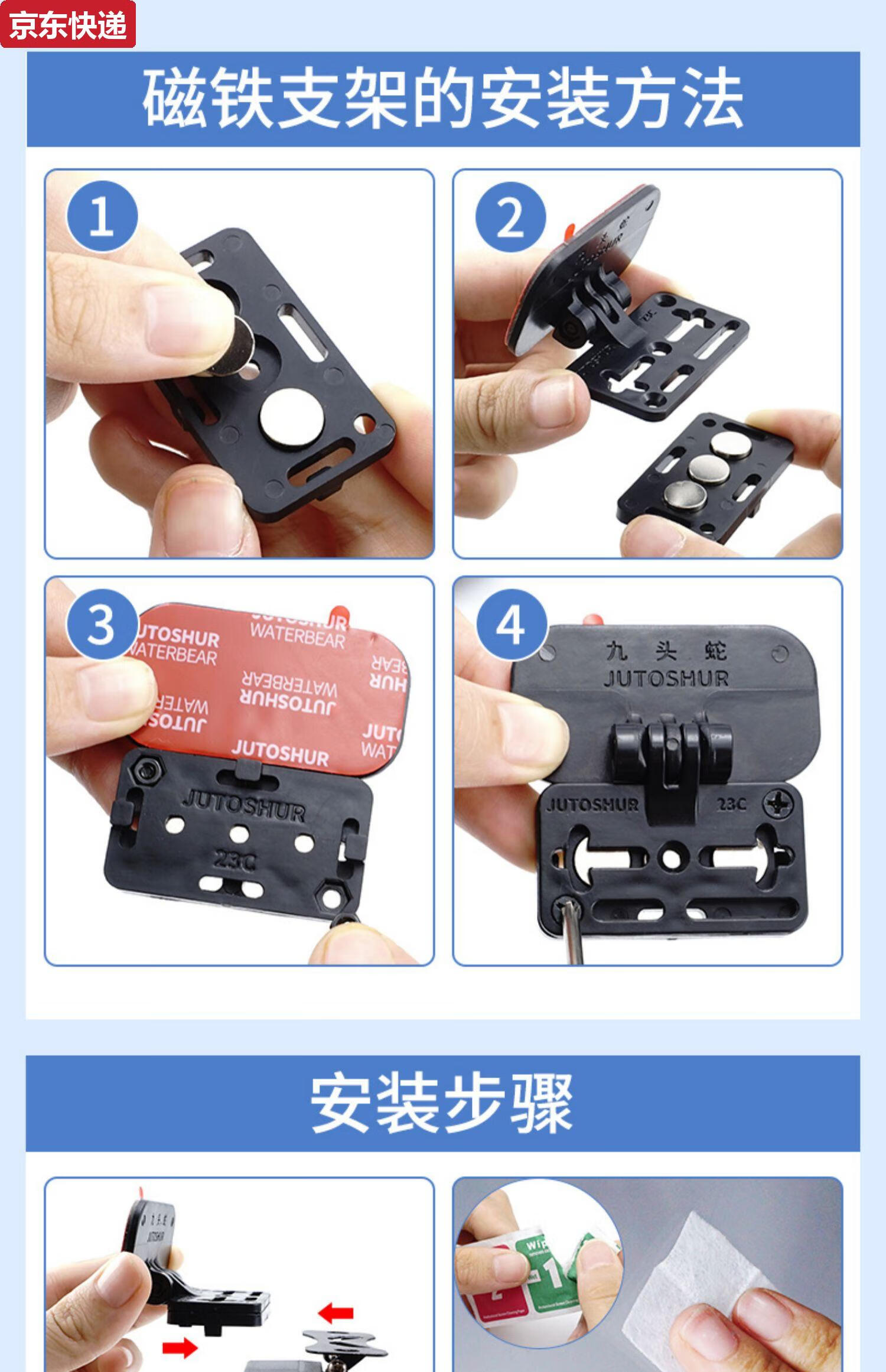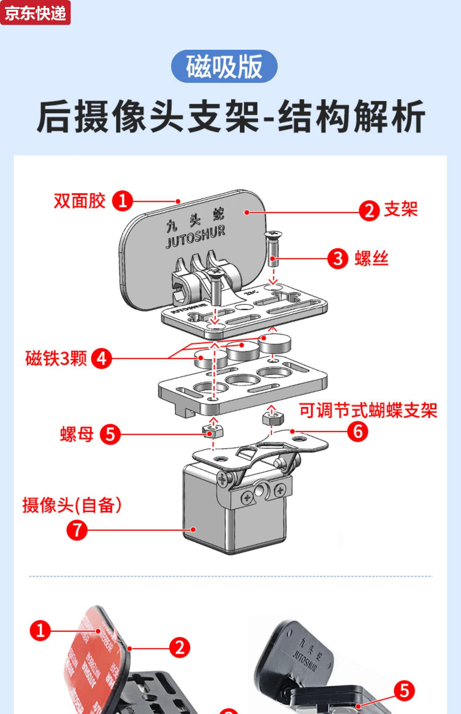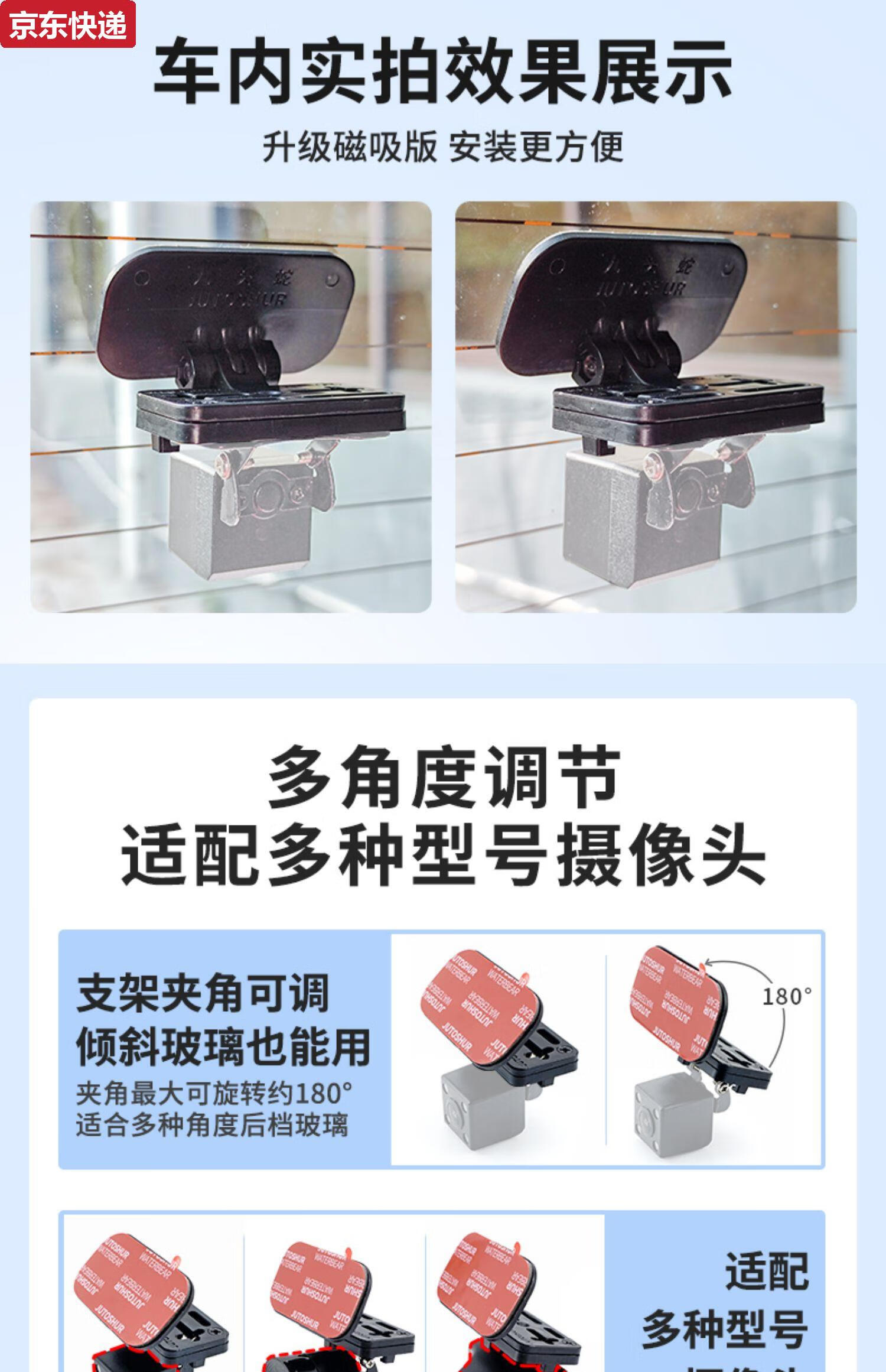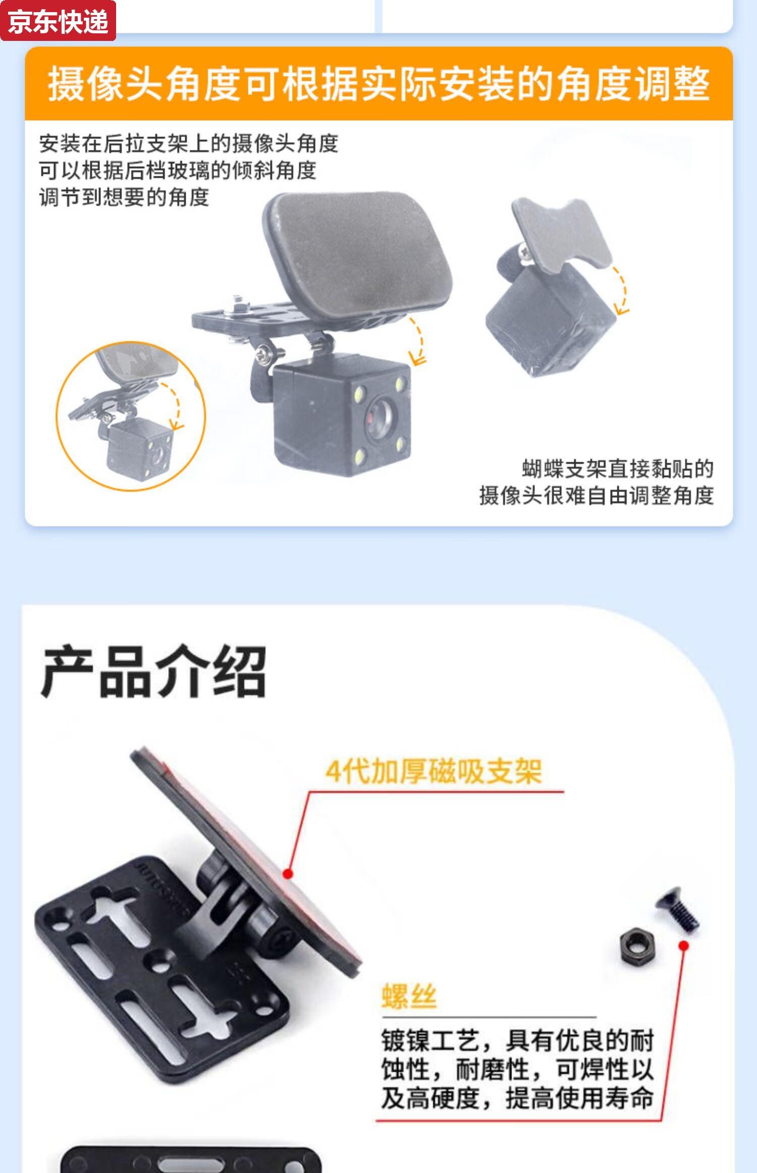 奇立彩倒车摄像头通用磁吸两用固定粘贴可调汽车记录仪后摄像头专用支架 efault