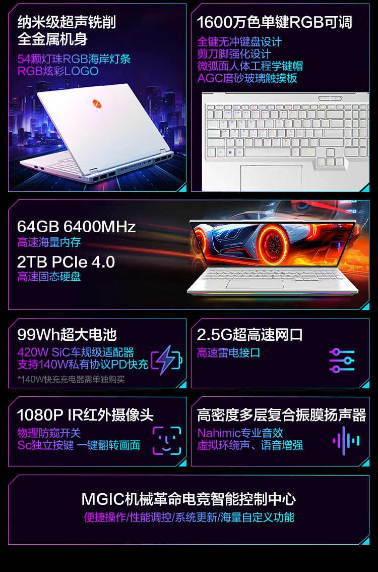 机械革命耀世16ultra/15Pro 苍龙16xpro满血5060/5070ti/5080/5090高性能办公游戏笔记本电脑MHD 水冷旗舰耀世16Ultra U9 275HX 白 5080 【畅玩3A】64G+2T