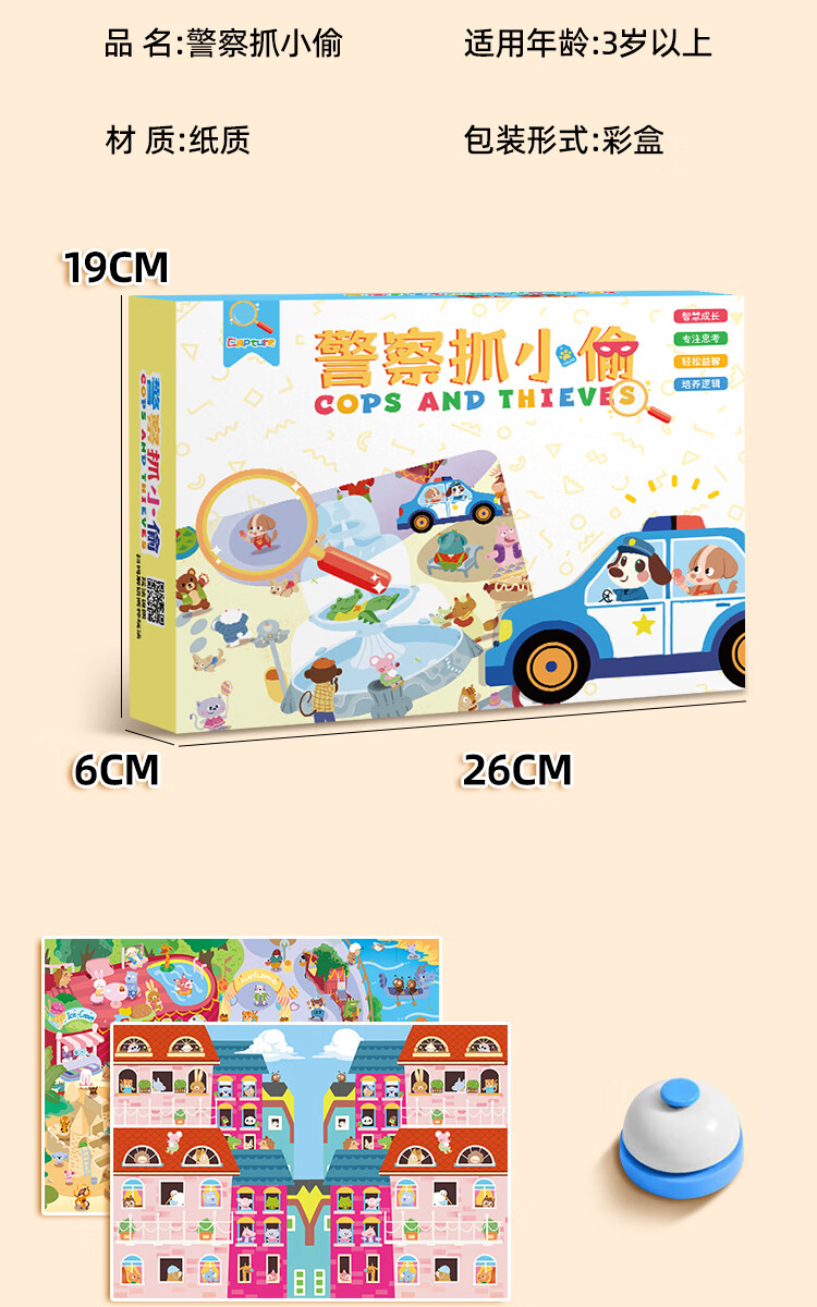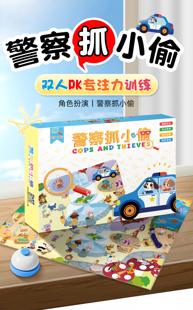警察抓小偷益智玩具亲子互动注意专注力儿童双人对战桌游思维训练 警察抓小偷桌游【全套+抢答铃】